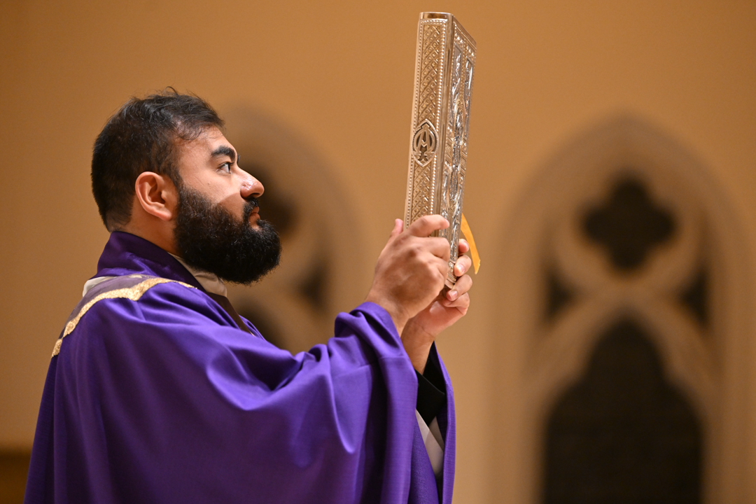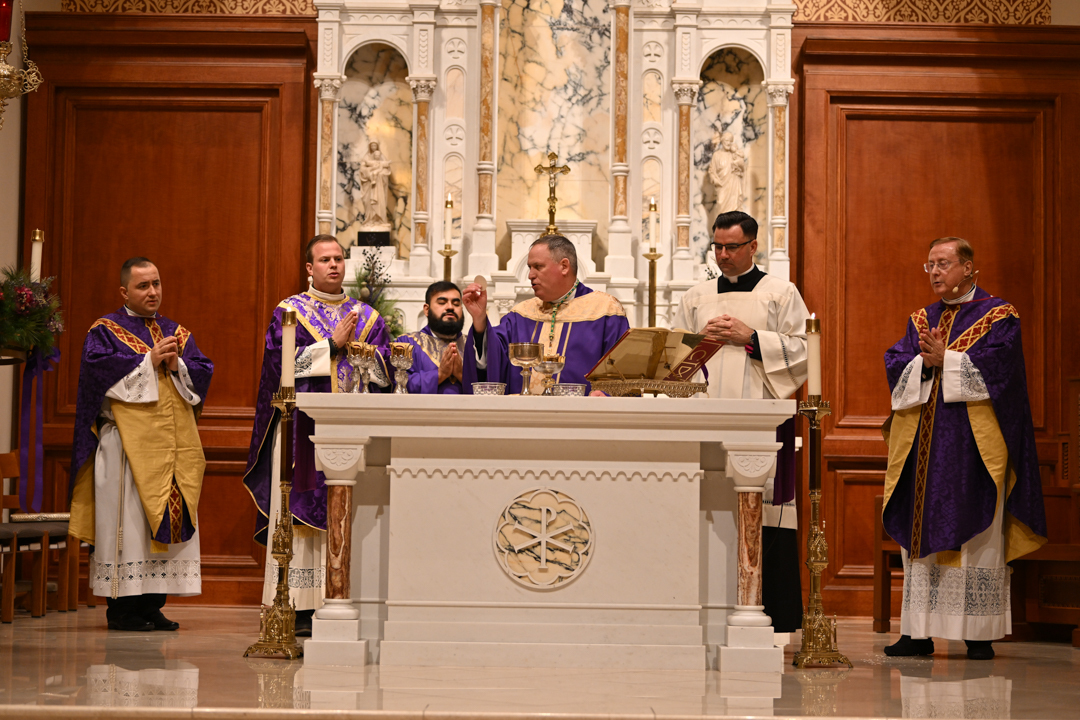 Father Alex Nevitt, administrator of St. Bonaventure Parish in Paterson; Father Yojaneider Garcia, director of the Office of Catechesis and Faith Formation for the Paterson Diocese, who lives at St. Vincent’s; and Father Jose M. Zuniga, St. Vincent’s parochial vicar, concelebrated the Mass with Bishop Sweeney. Father Jared Brogan, director of the diocesan Worship Office, was master of ceremonies with Carlos A. Vargas, a diocesan seminarian.