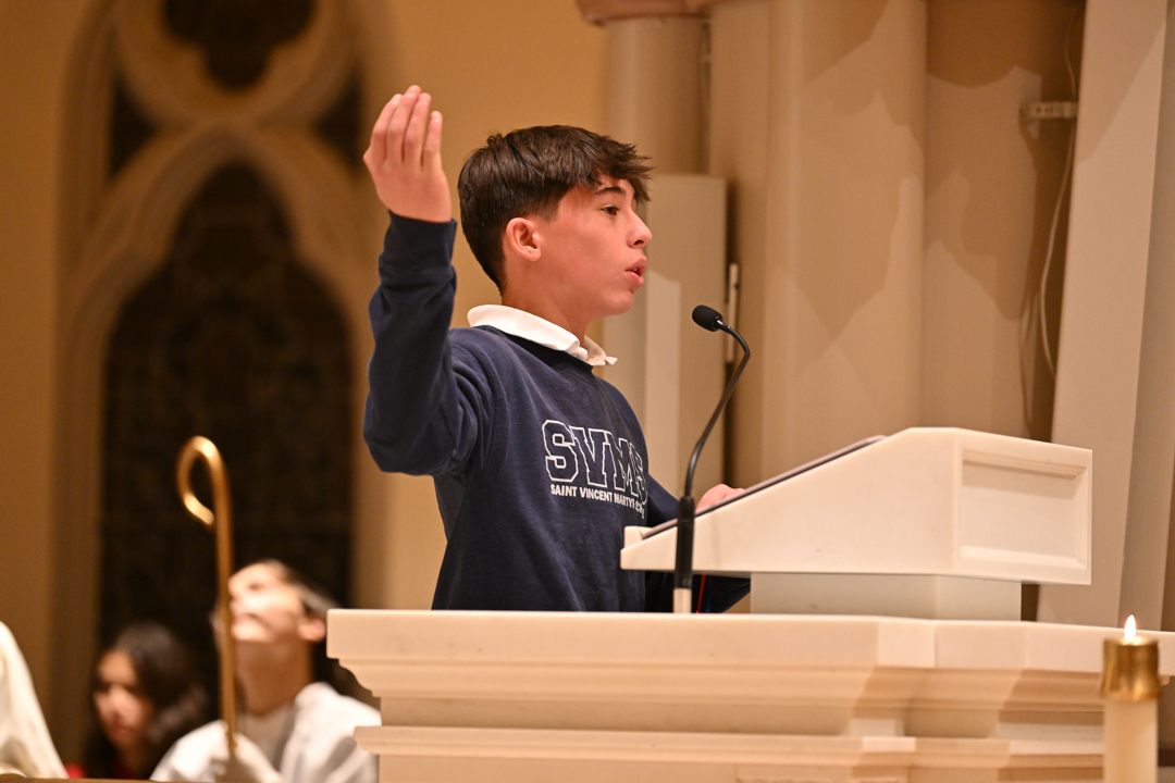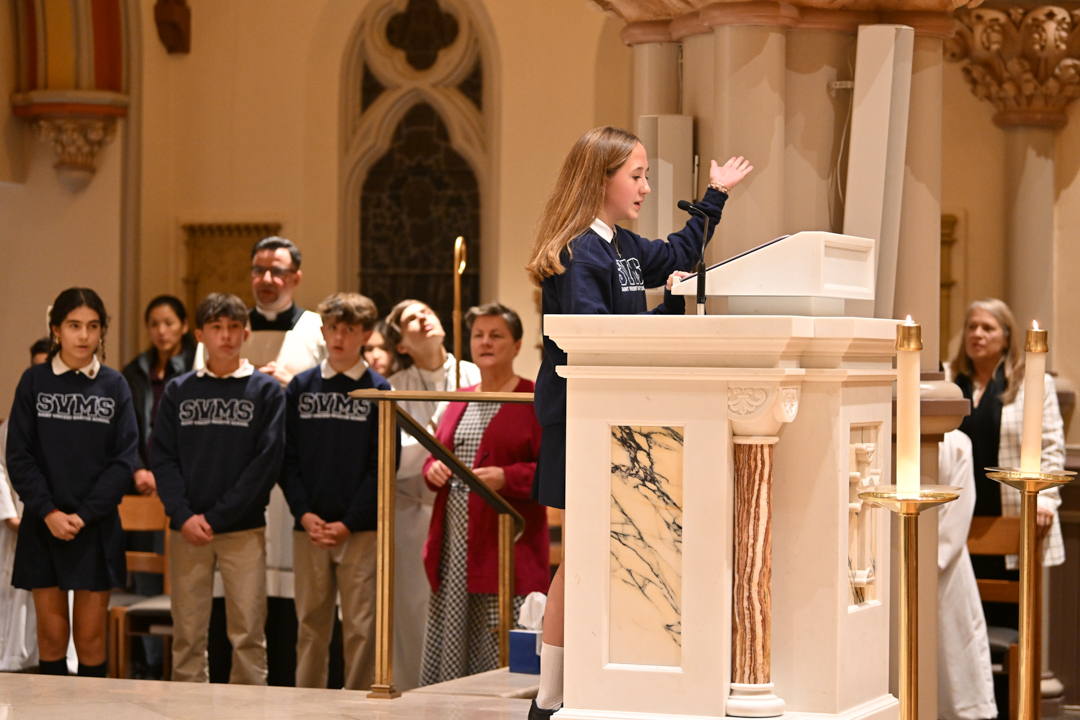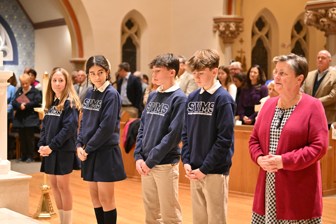 Mass participants included Sister of Charity Noreen Holly, the principal of the parish school; students; and the Knights of Columbus honor guard.