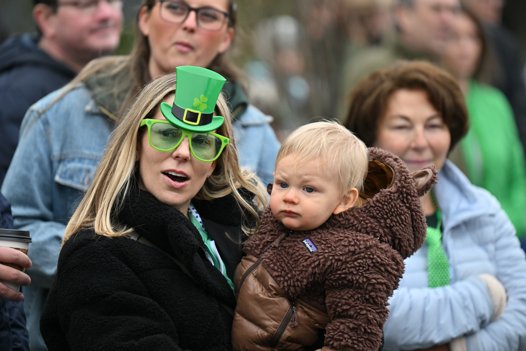 Descendants of the early Irish immigrants to the Dublin area more than a century ago and many others who consider themselves Irish by blood or by heart attended the 9:30 a.m. Mass. Bishop Sweeney is the son of Irish immigrants. The popular parade stepped off at noon.
