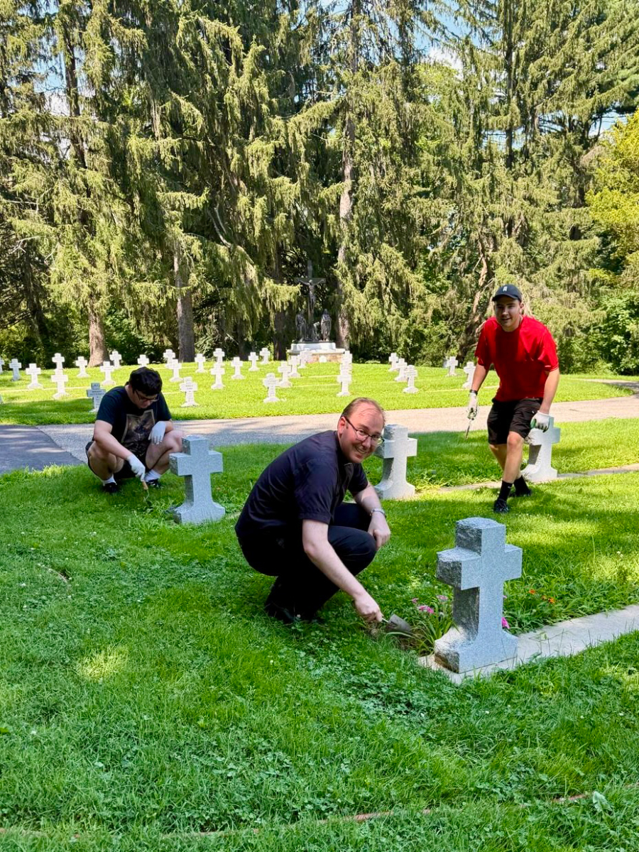 During the week, they gardened, tended to the graves, and spent time with Sisters of Christian Charity at their North American Province in Mendham, N.J. They also helped clean up Finnegan House, a DPD group home in the Oak Ridge neighborhood of Jefferson, N.J., followed by lunch with the residents.