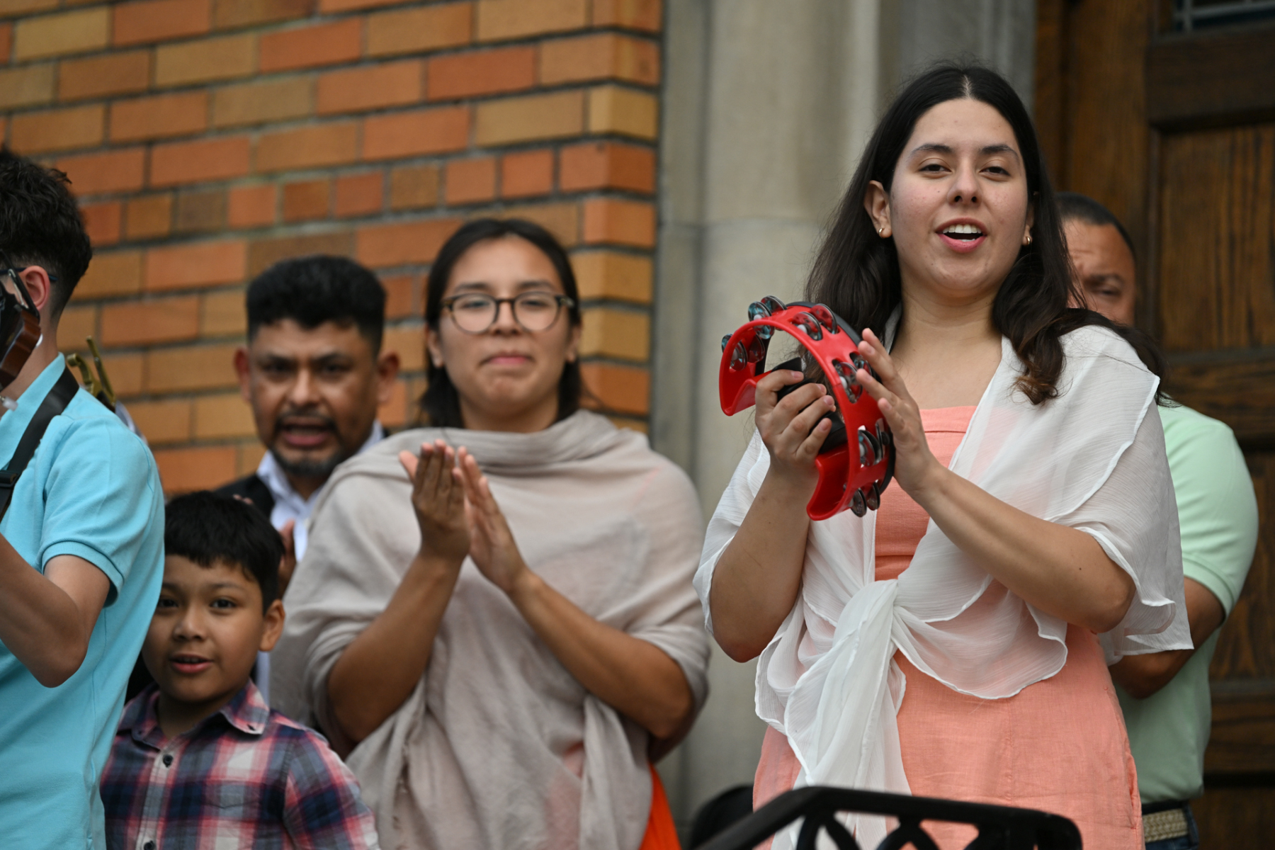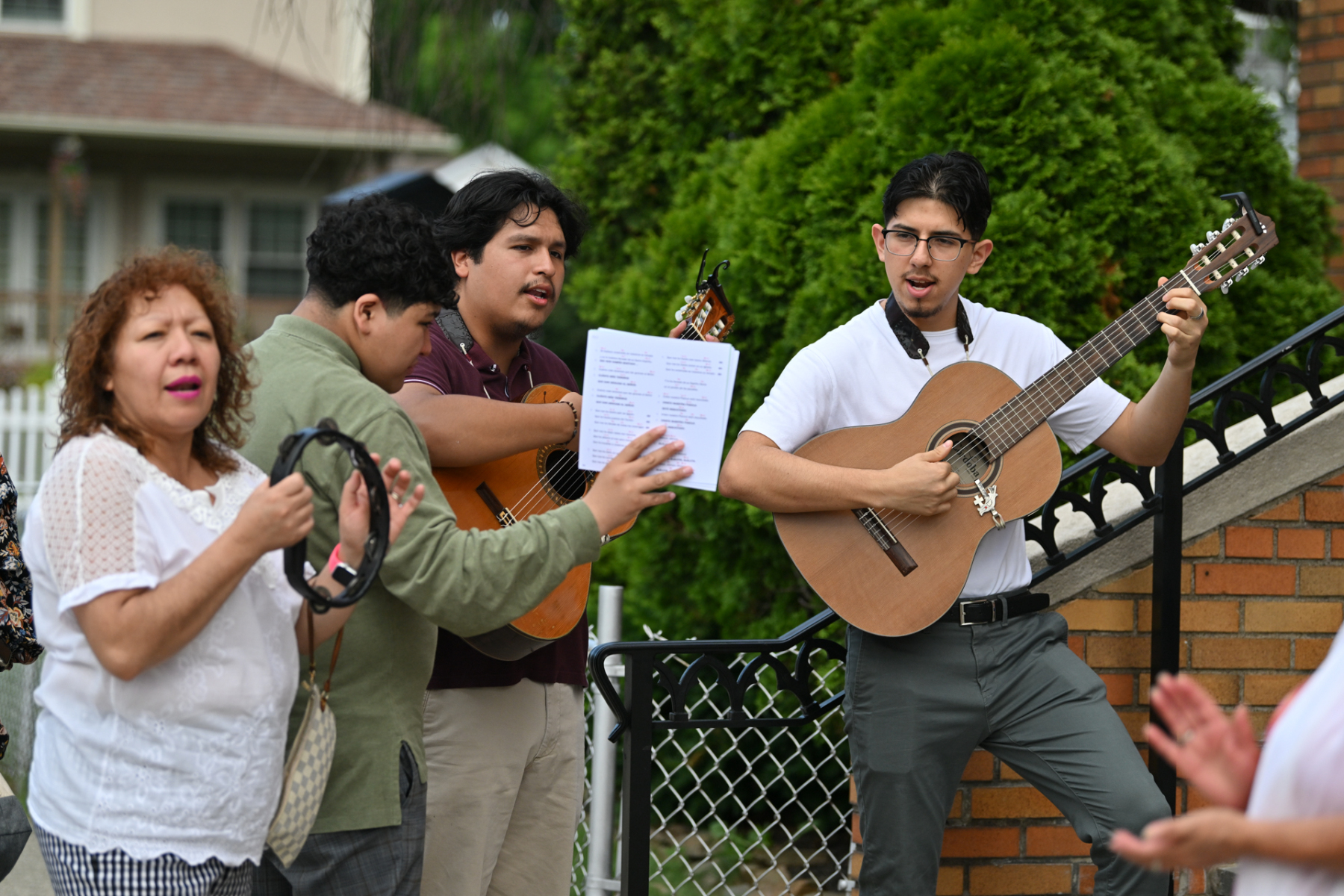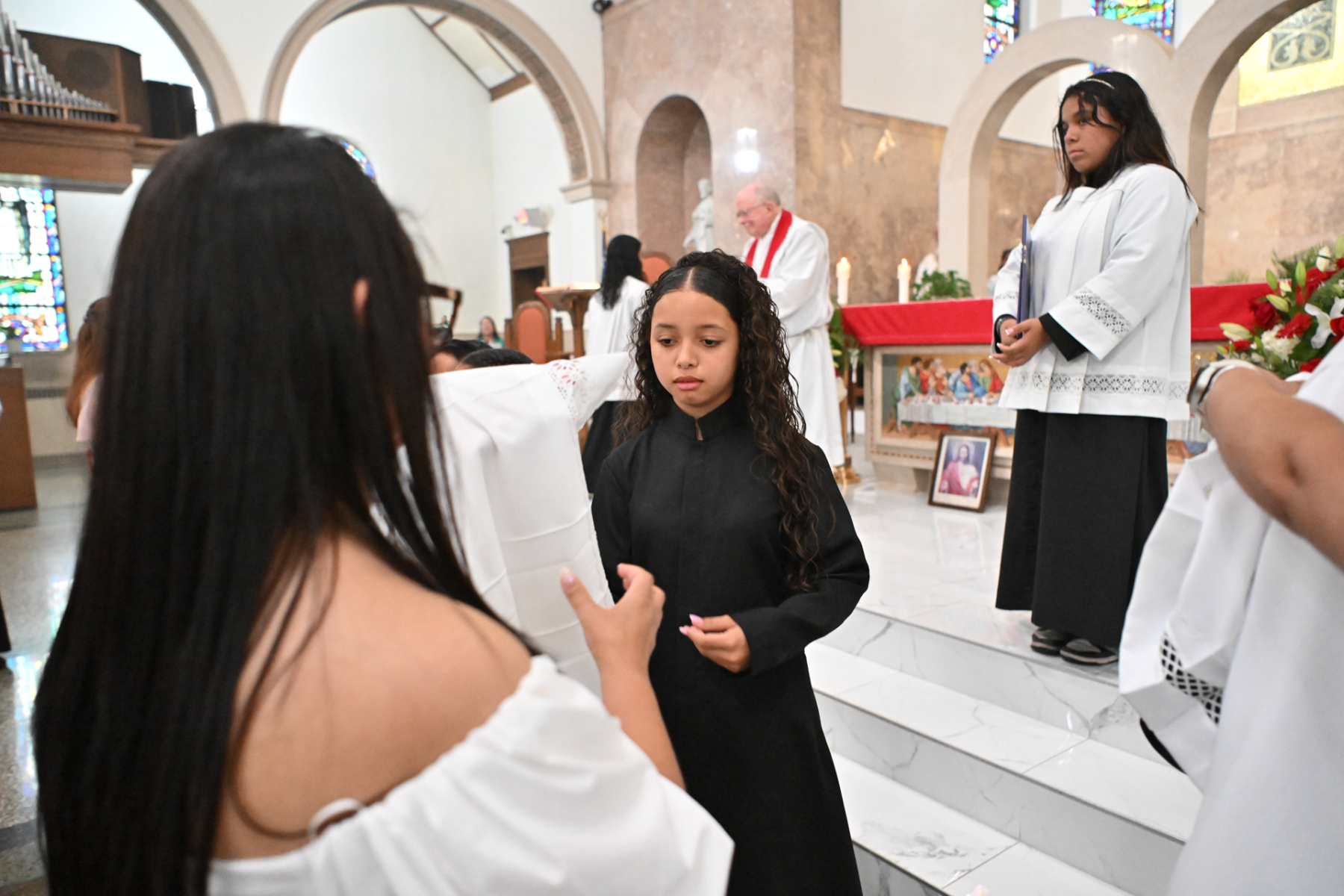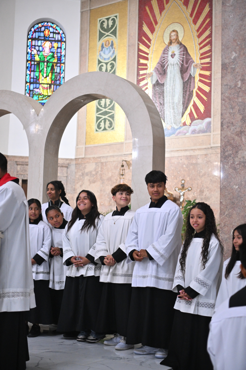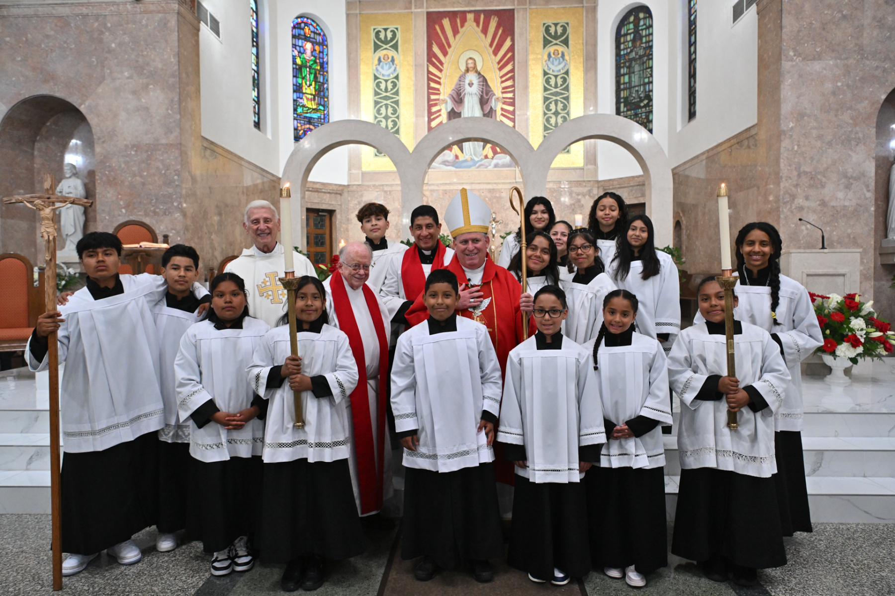 During the Mass, Bishop Sweeney blessed six new altar servers of the parish, who were vested in their cassocks, and administered the sacrament of confirmation on Nicholas Gabriel Negron. Musicians of the parish greeted the bishop with faith-filled music outside the church on his arrival before the 6 p.m. Mass.