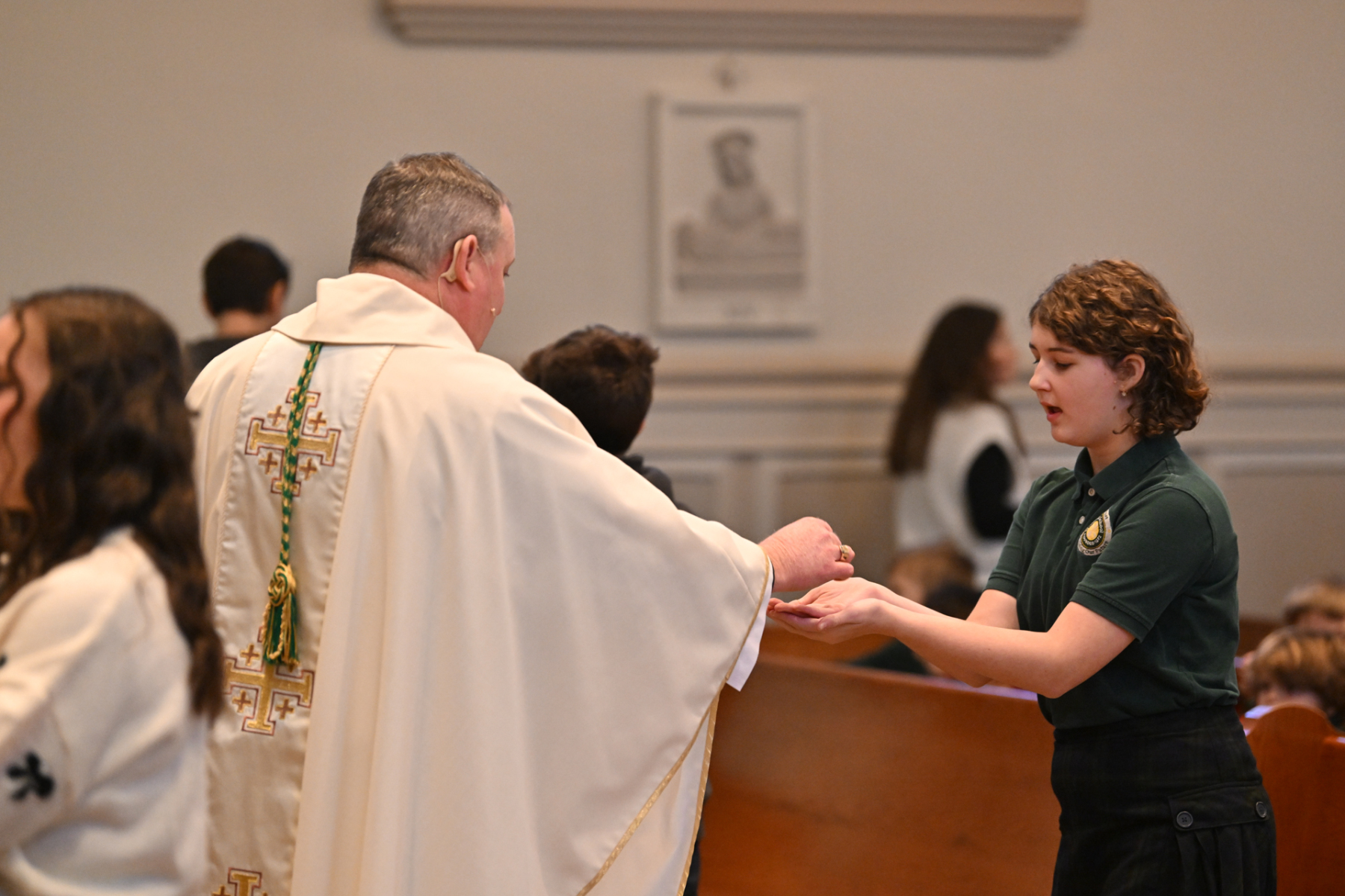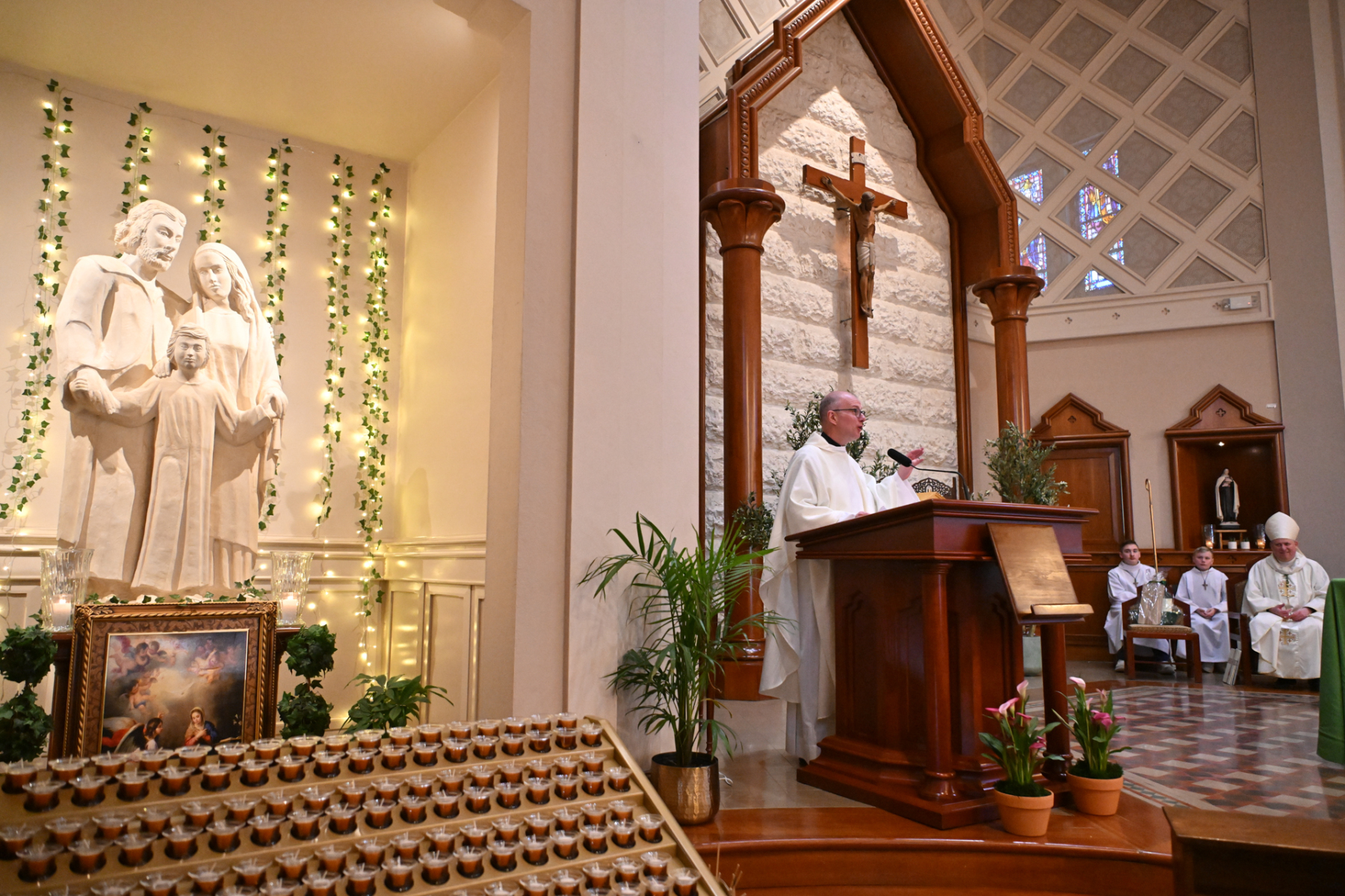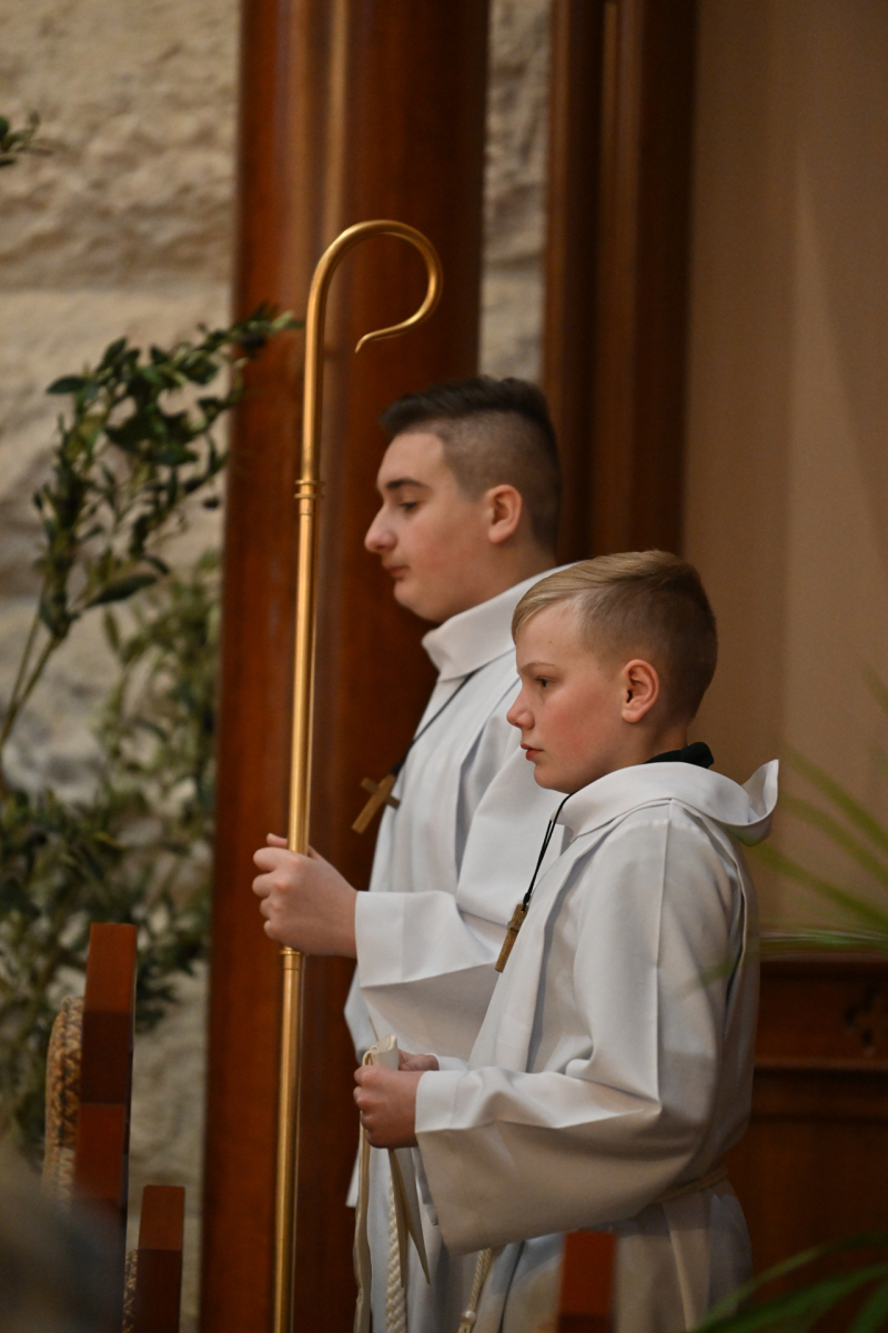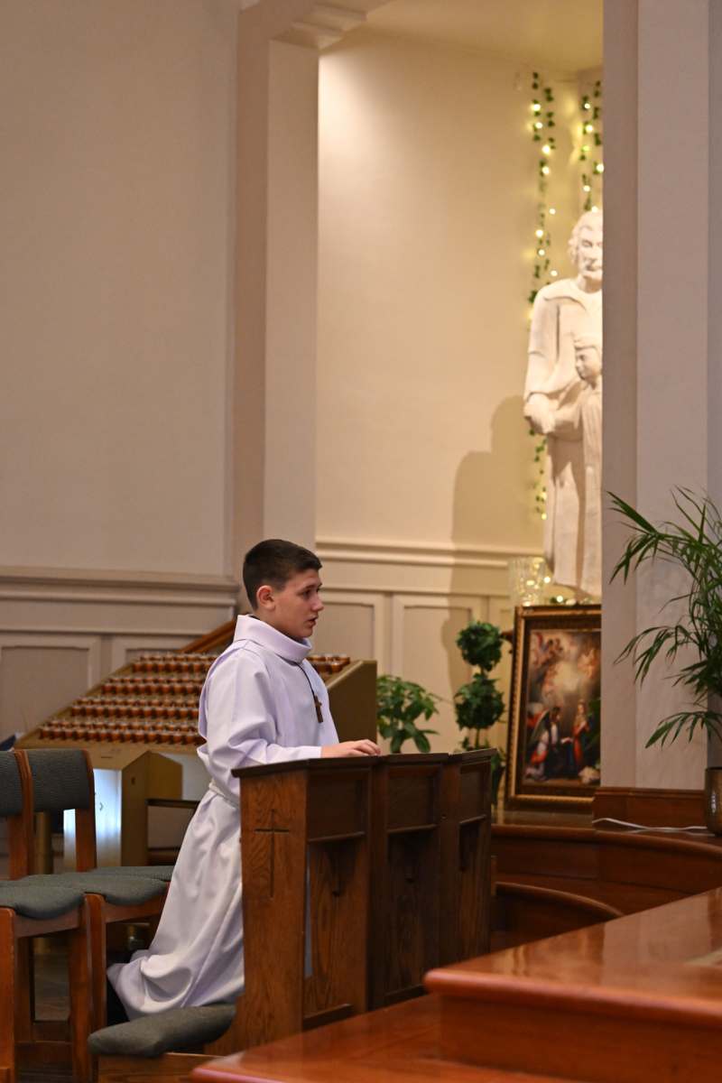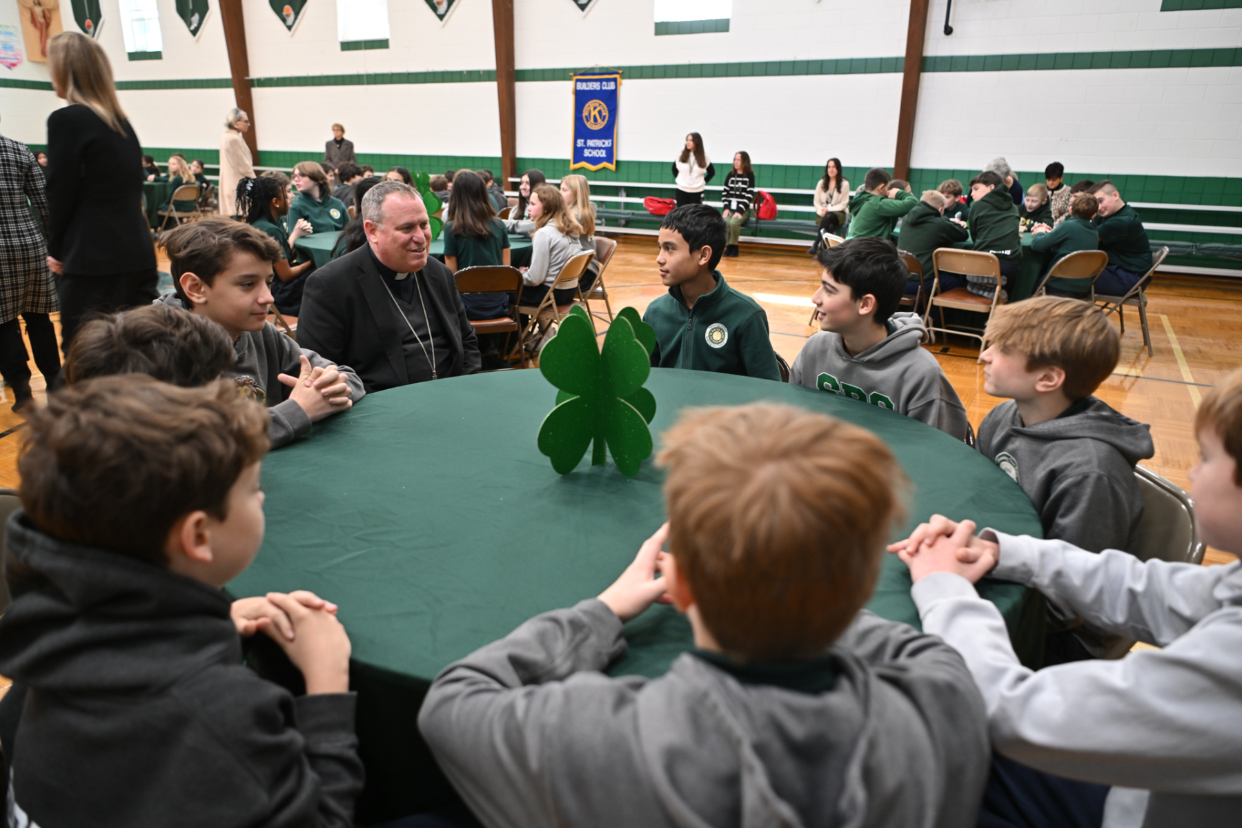 Father Peter Glabik, pastor of St. Patrick Parish, concelebrated the Mass with Bishop Sweeney. The school’s Builders Club, which endeavors to serve the community, participated in the liturgy. Bishop Sweeney shared a homily about vocations, encouraging St. Patrick’s students to listen for God’s call in their lives.