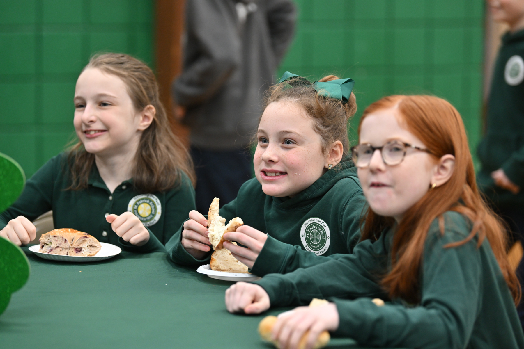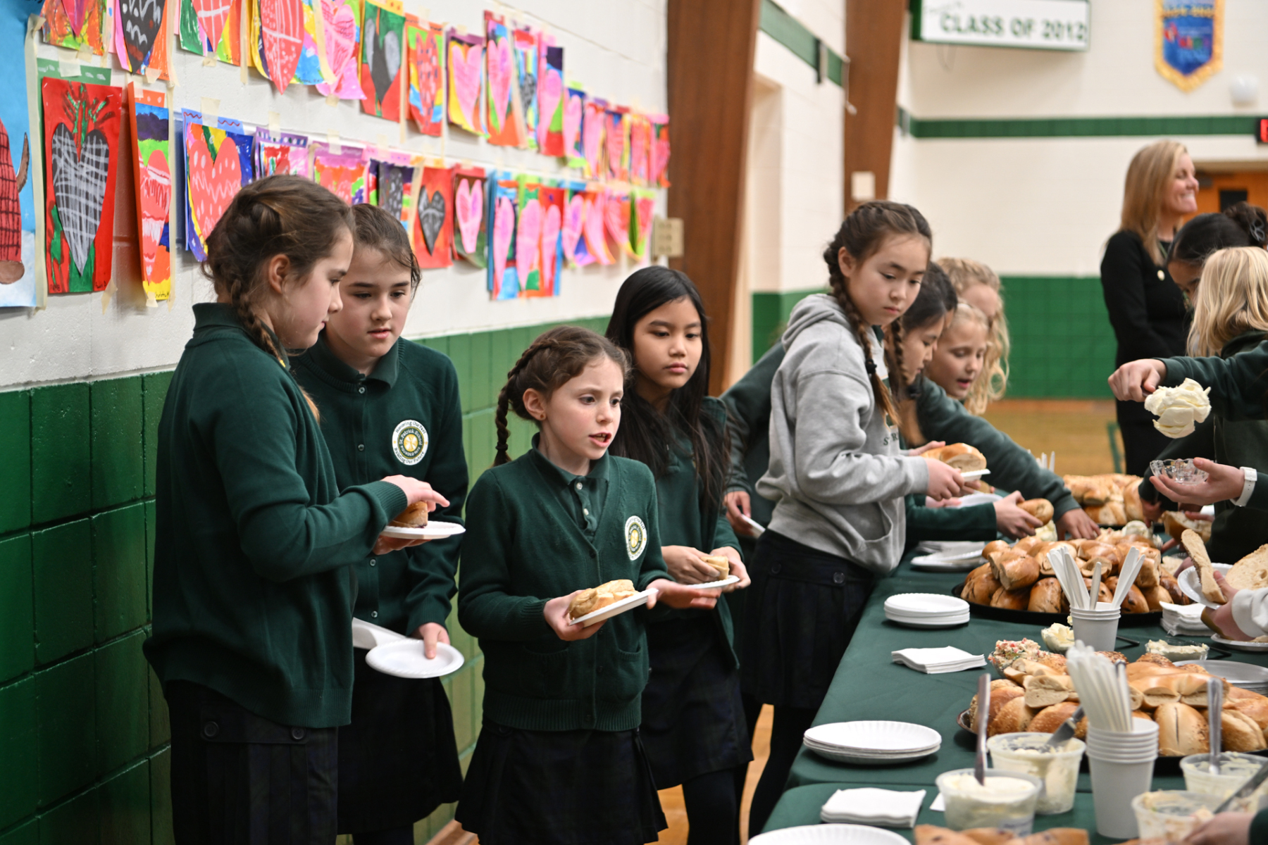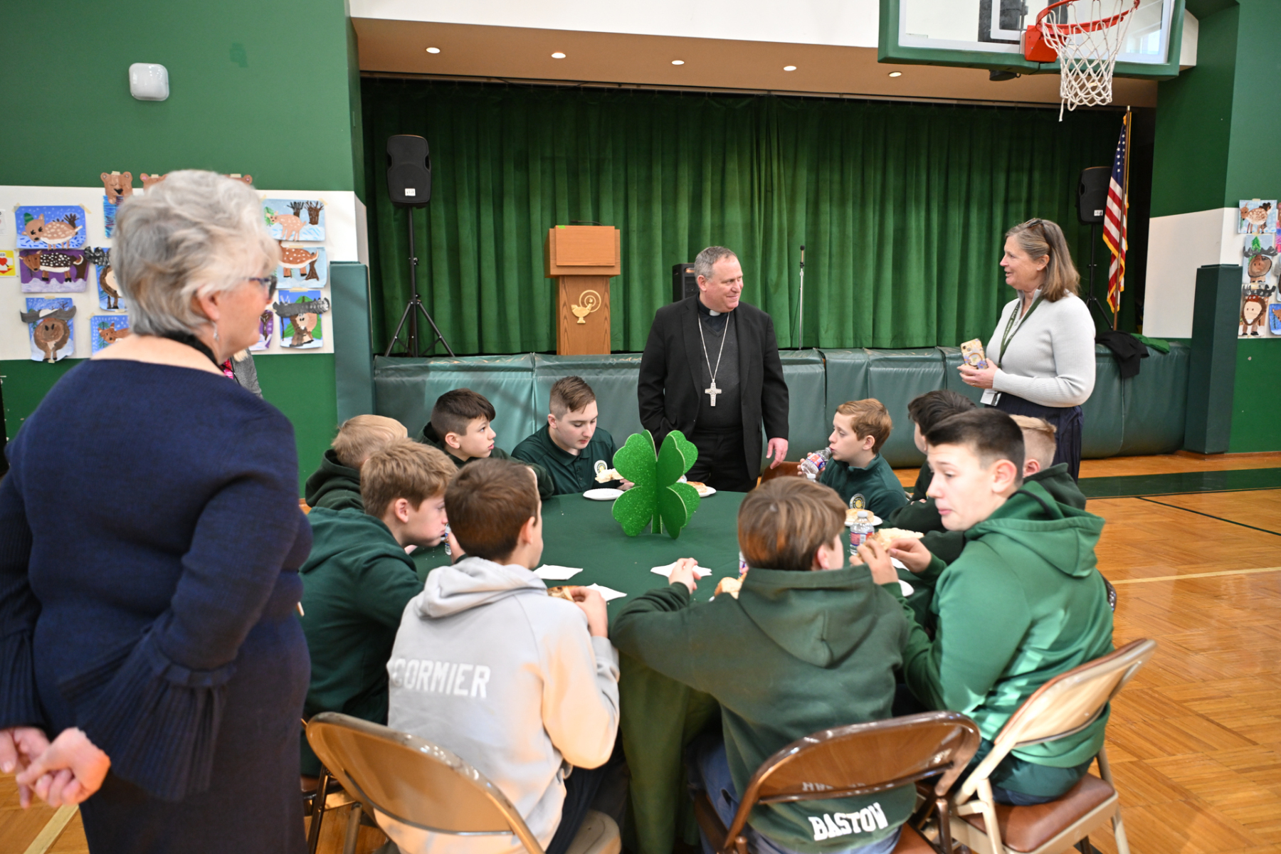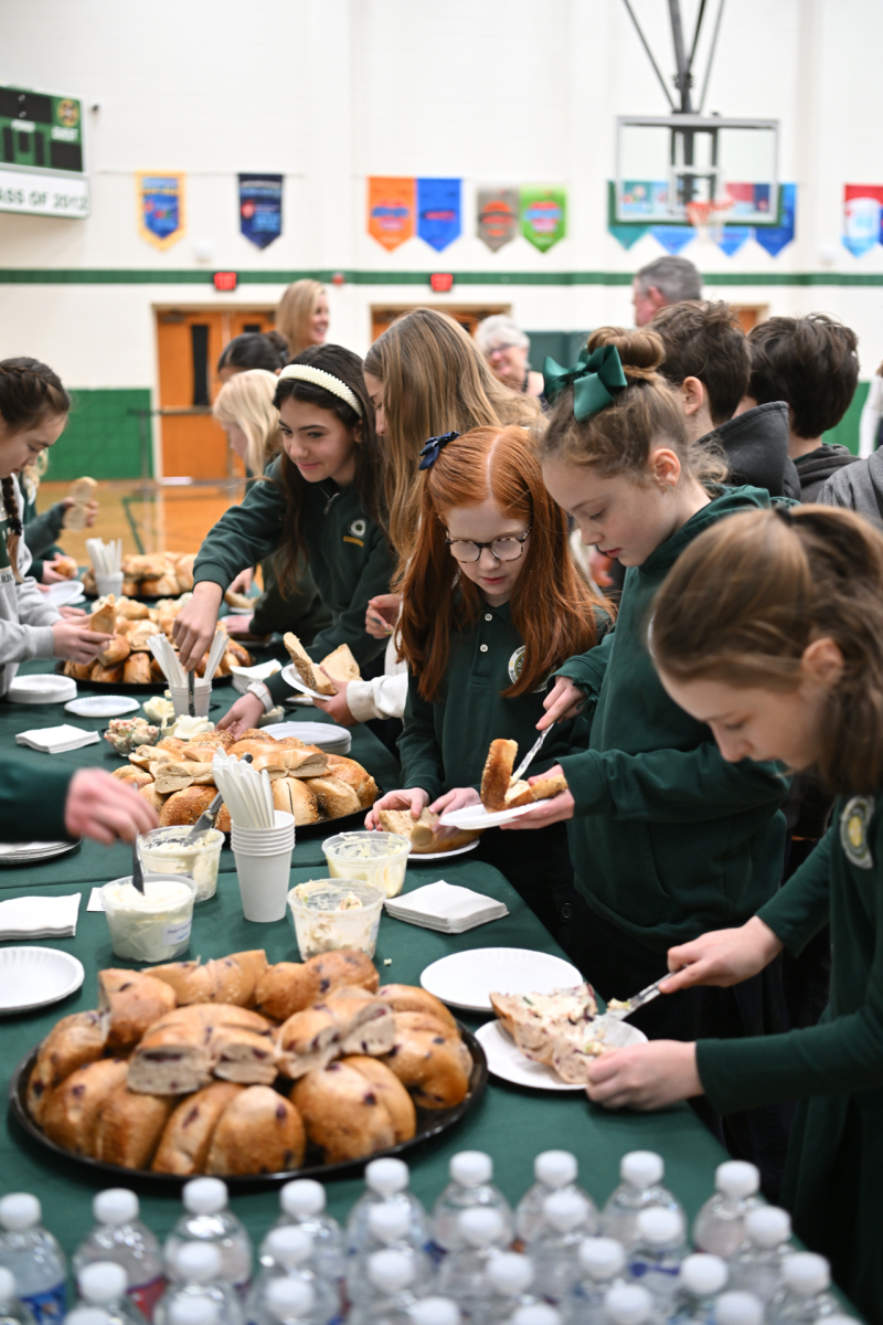 After the Mass, the fourth- to seventh-grade students enjoyed bagels and conversation with Bishop Sweeney.