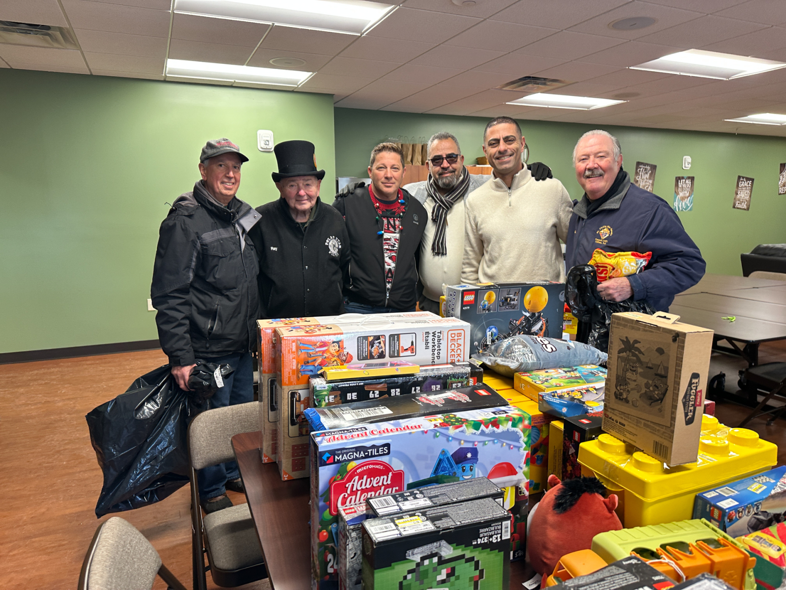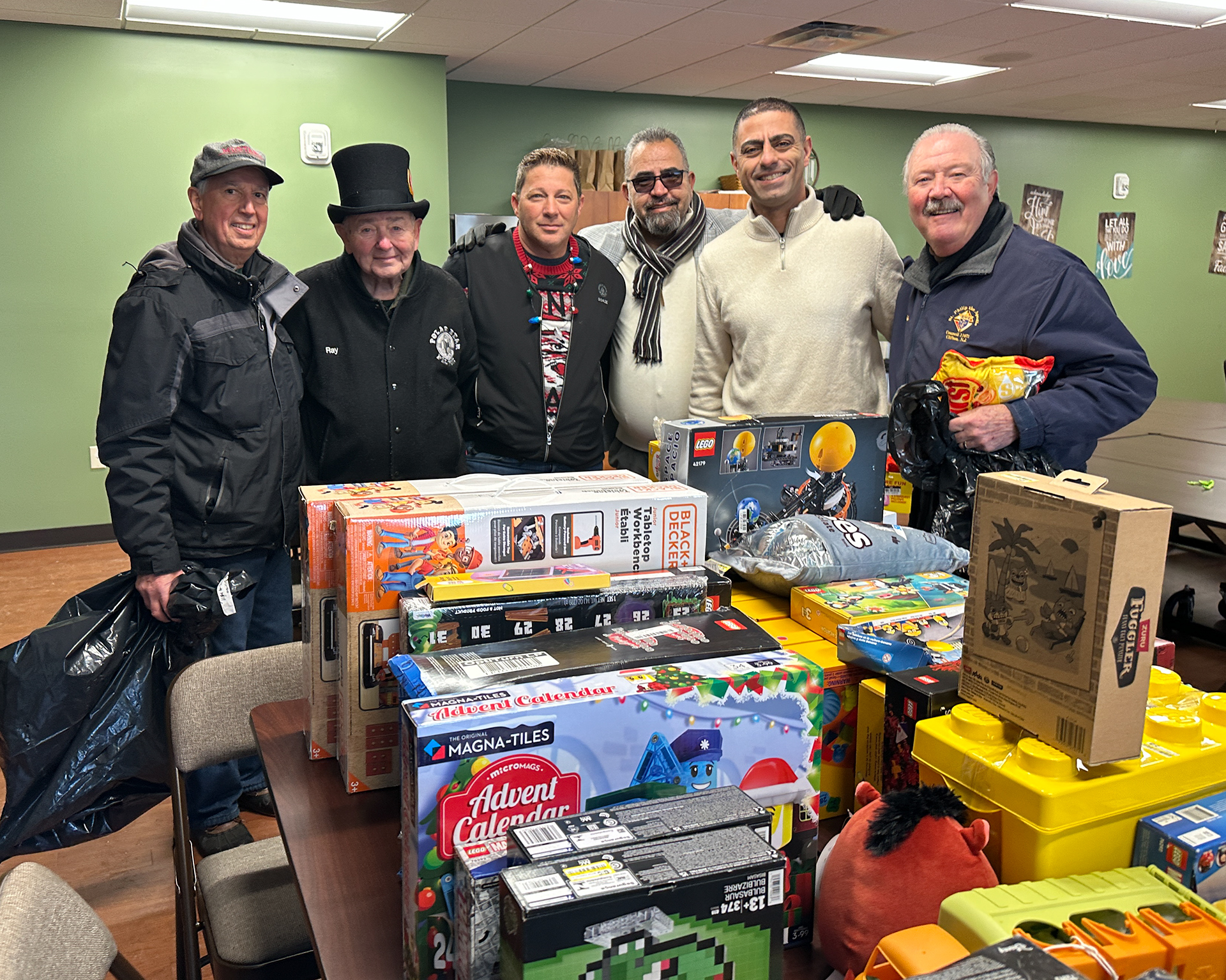 Christmas came early with a toy donation from Tarek Alnatur & ALBI Properties, who delivered hundreds of toys to the Paterson Diocesan Center and neighboring St. Philip Church in Clifton and were greeted by Bishop Kevin J. Sweeney on Dec. 15. Assisting at the drop-off were the St. Philip Knights of Columbus Council 11671 and Raed Odeh, deputy mayor for the City of Paterson. The donation was coordinated by the South Paterson Business Association, which bought toys worth almost $50,000 to Paterson and Clifton houses of worship.