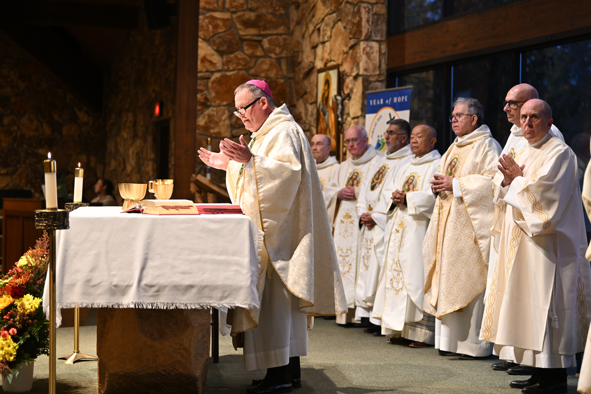 The Missionary Servants of the Most Holy Trinity, who run St. Joseph’s, and friends and supporters of the shrine, joined together for the Annual Dinner of Gratitude that evening. The event began with prayer, followed by a moving Mass in the chapel, celebrated by Bishop Sweeney and concelebrated by the Trinitarian and Paterson Diocesan priests in attendance.