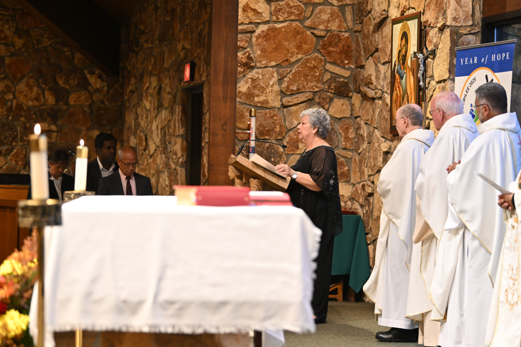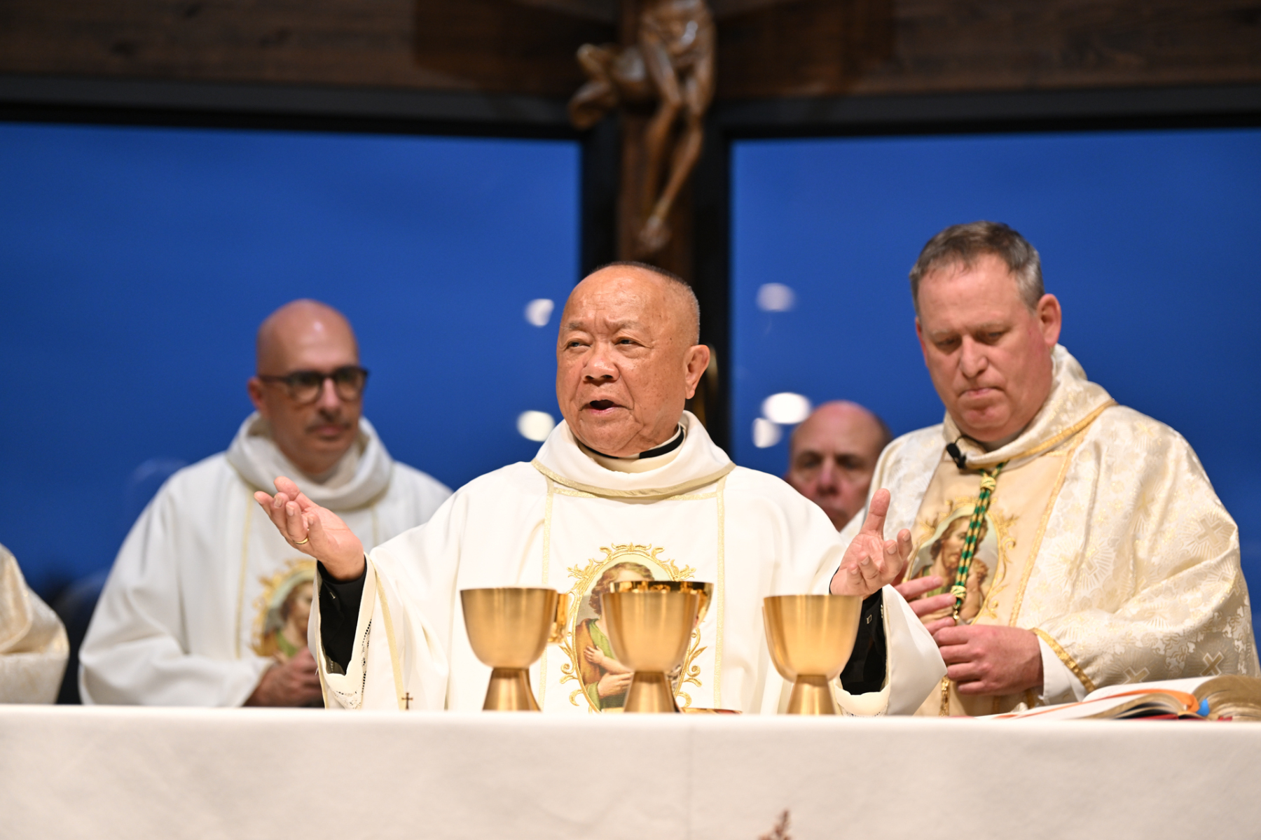 The Missionary Servants of the Most Holy Trinity, who run St. Joseph’s, and friends and supporters of the shrine, joined together for the Annual Dinner of Gratitude that evening. The event began with prayer, followed by a moving Mass in the chapel, celebrated by Bishop Sweeney and concelebrated by the Trinitarian and Paterson Diocesan priests in attendance.