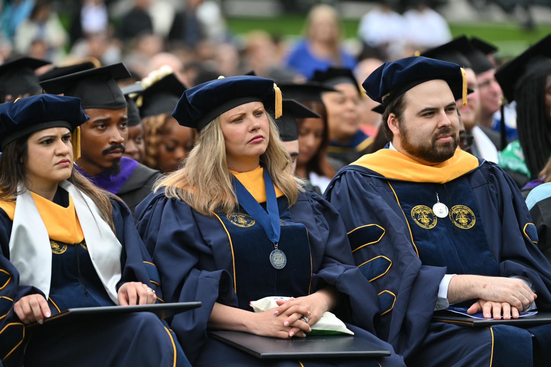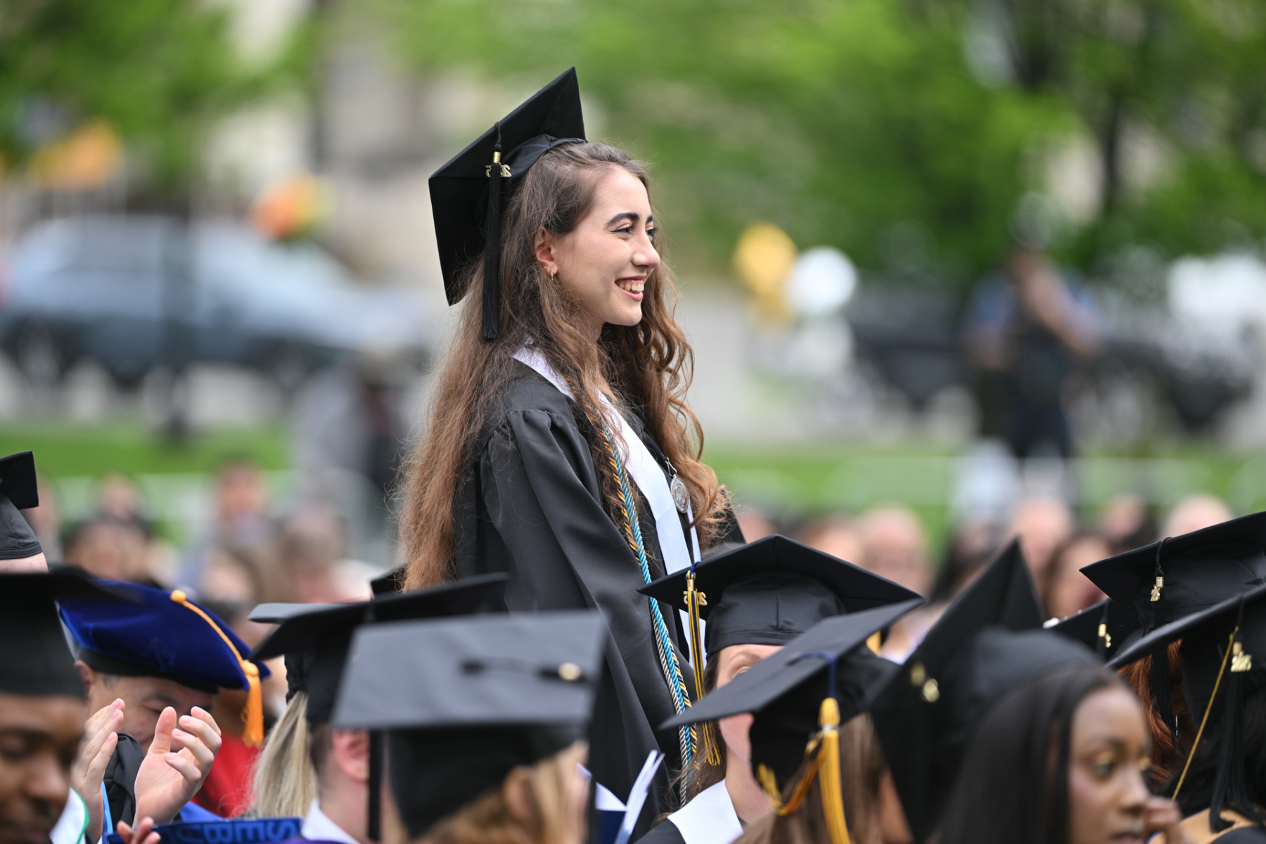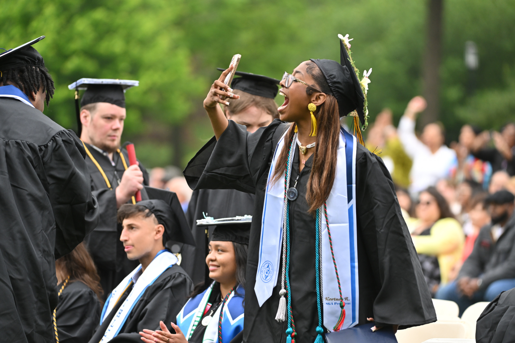 Saint Elizabeth University in the Convent Station neighborhood of Morris Township held its 123rd commencement for the proud graduates of the Class of 2025 who received their academic degrees on May 15. The ceremony occurred on the front lawn of the motherhouse of the Sisters of Charity of St. Elizabeth, who founded and continue to operate the university. Bishop Kevin J. Sweeney and Gary B. Crosby, Ph.D., Saint Elizabeth’s president, were among those who participated in the commencement. Hope Dmuchowski, who earned a bachelor’s degree in psychology in 2001 and a master’s in business management in 2006 at Saint Elizabeth’s, was the commencement speaker. She is senior executive vice president and chief financial officer for First Horizon Corporation.