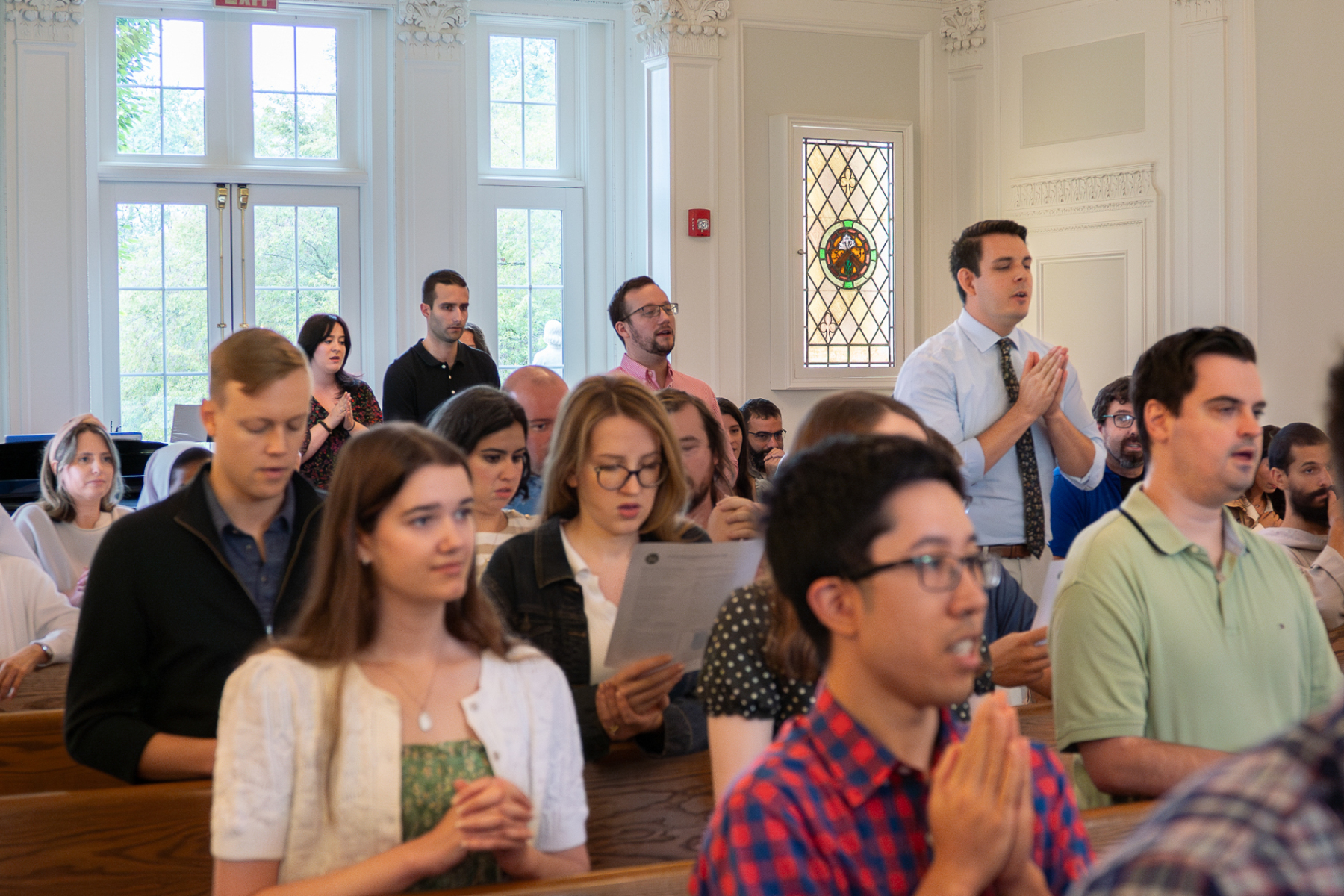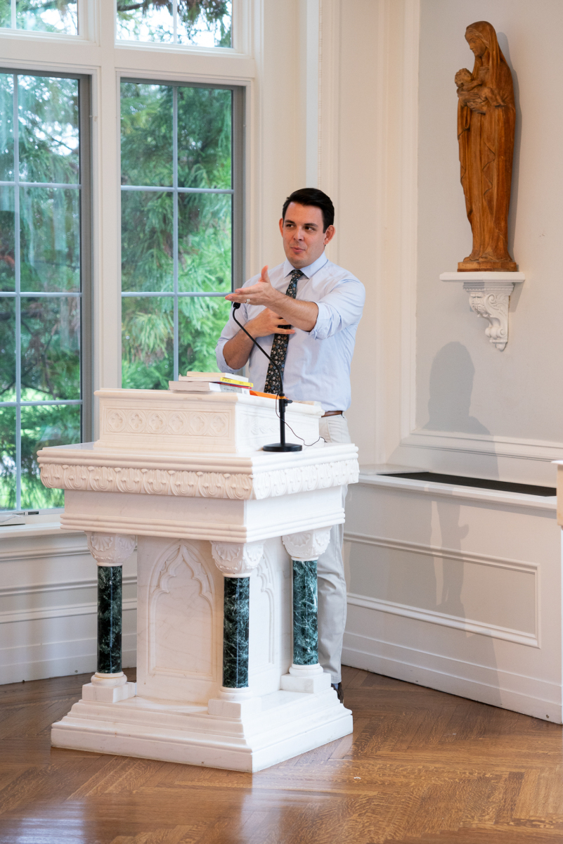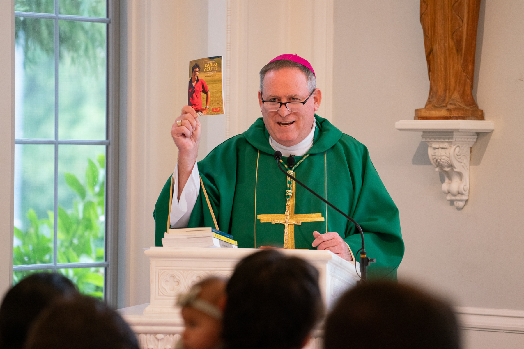 Bishop Kevin J. Sweeney visited St. Paul Inside the Walls in Madison, N.J., on Sept. 7 to celebrate its regularly scheduled 11 a.m. Mass for young adults, which included special prayers for St. Carlo Acutis and St. Pier Giorgio Frassati. Pope Leo XIV canonized these two young men as saints that morning in St. Peter’s Square in Rome. They have become models of the Catholic faith, especially for youth and young adults in the Church.