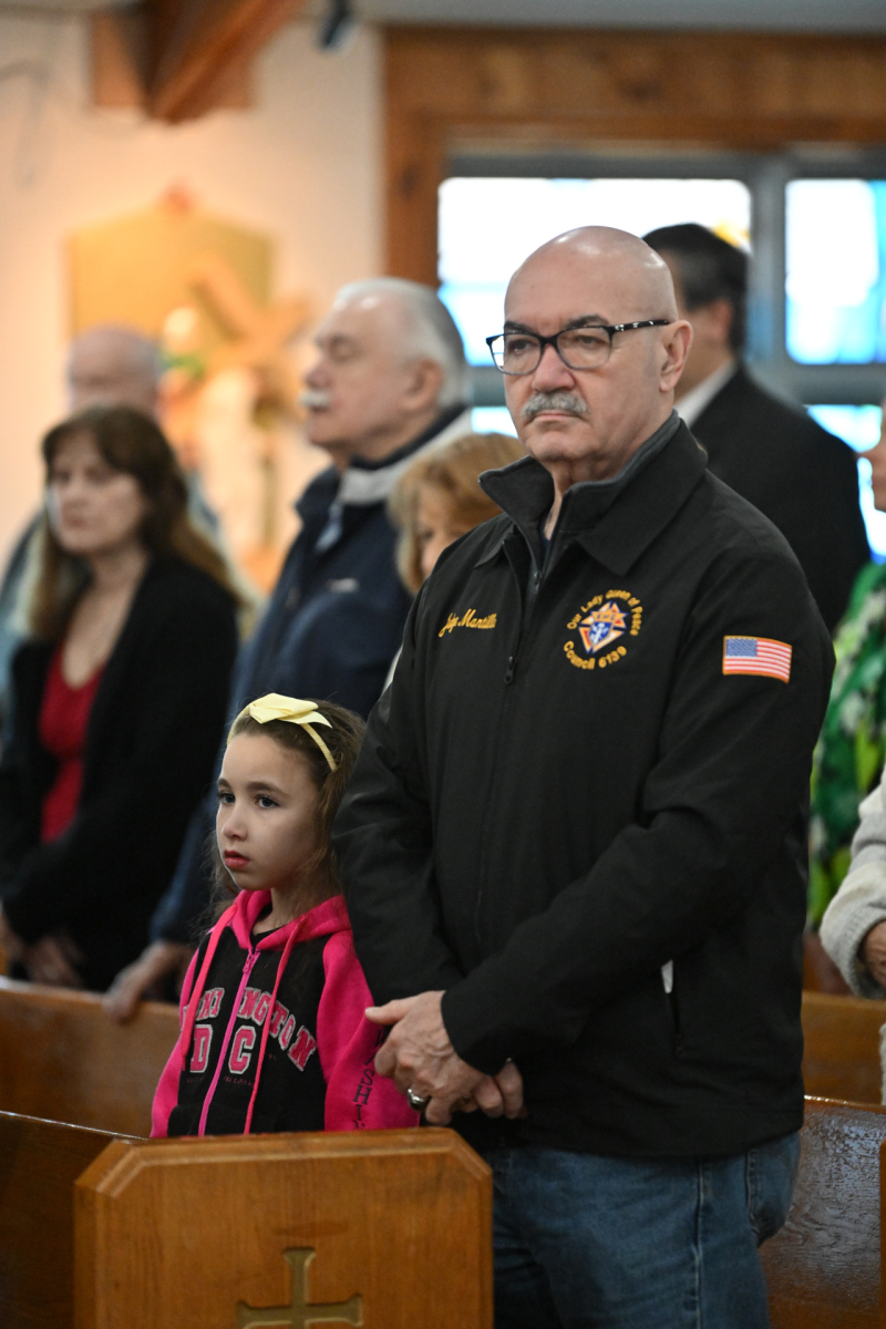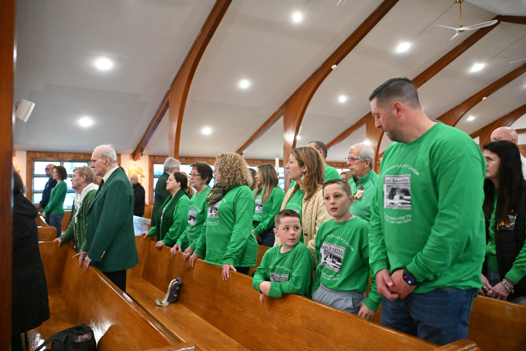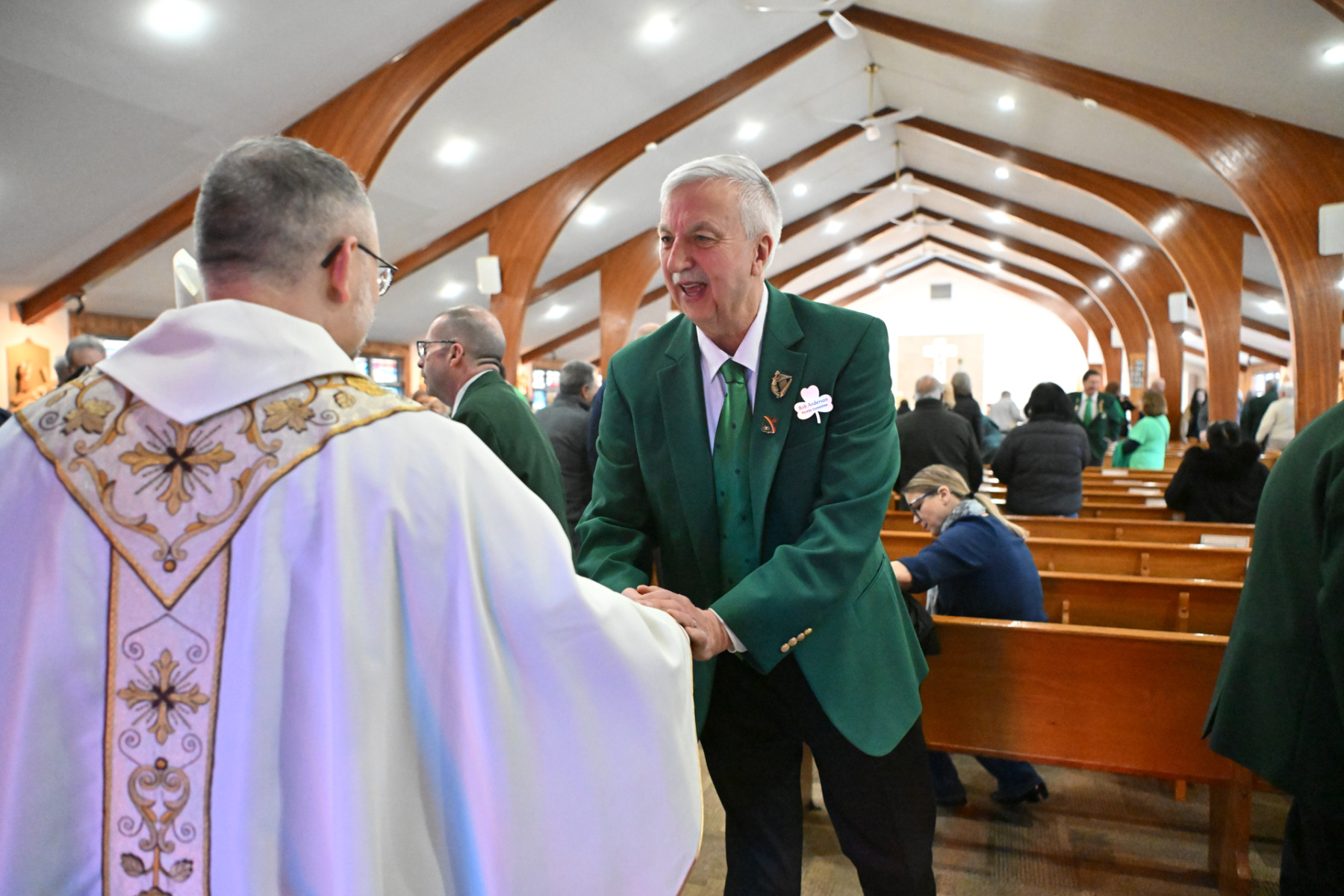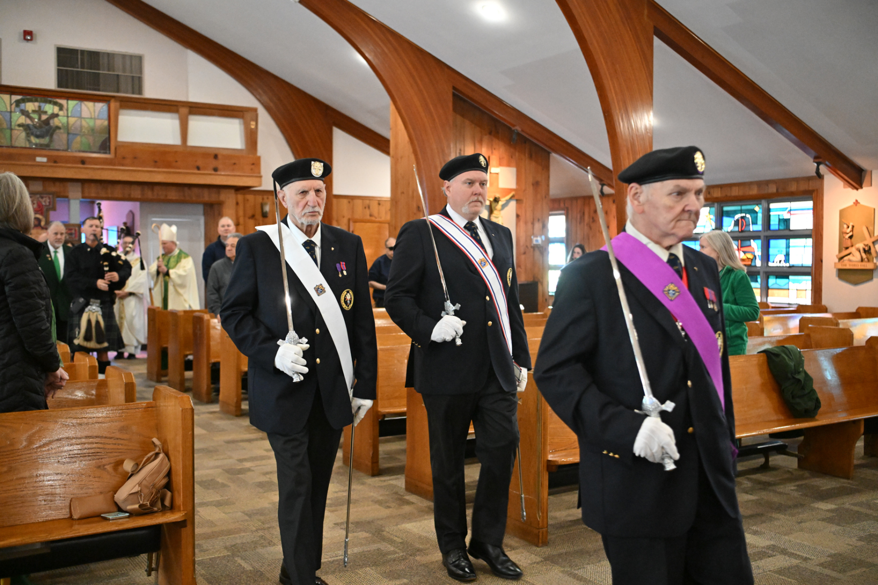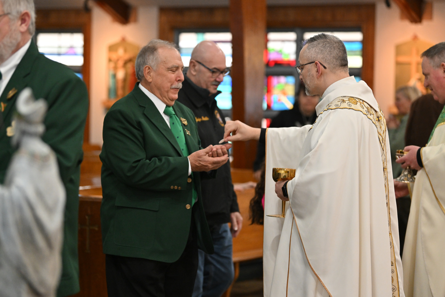 Parade officials and dignitaries, the Knights of Columbus, and a bagpiper were among those who participated in the liturgy, many wearing festive Irish green. This year’s parade honorees were Jim Blomquist, grand marshal; Scott Fitterman, outstanding citizen; and the late Robert Lyons and the late Dennis Law, parade dedications.