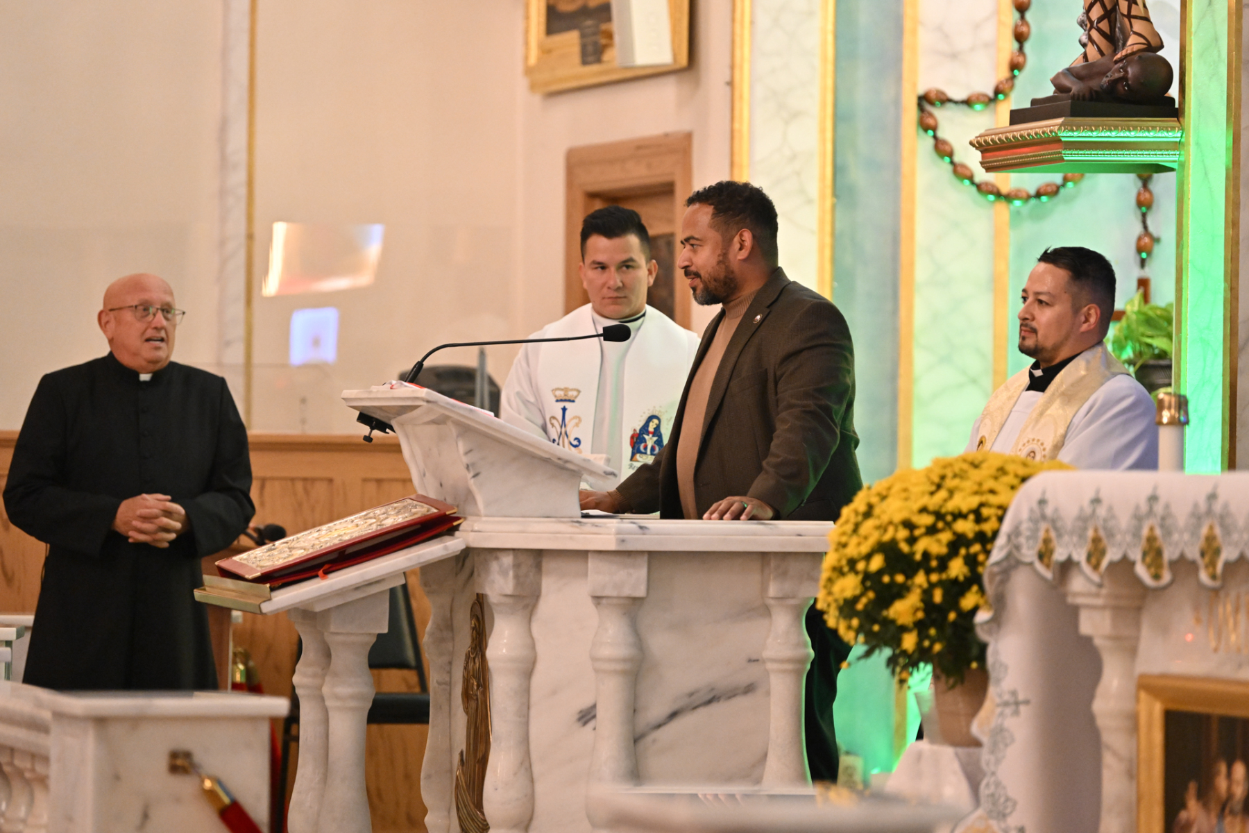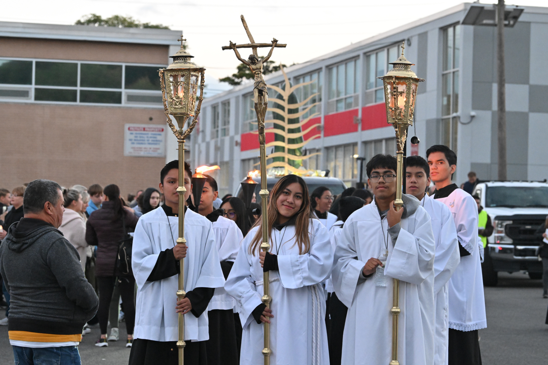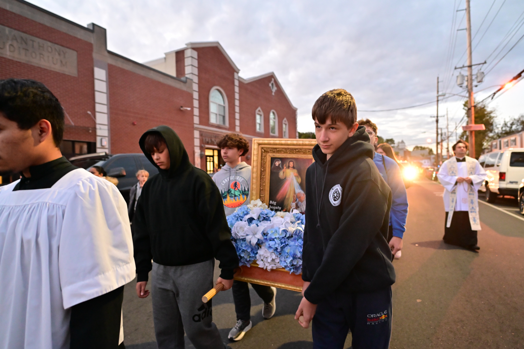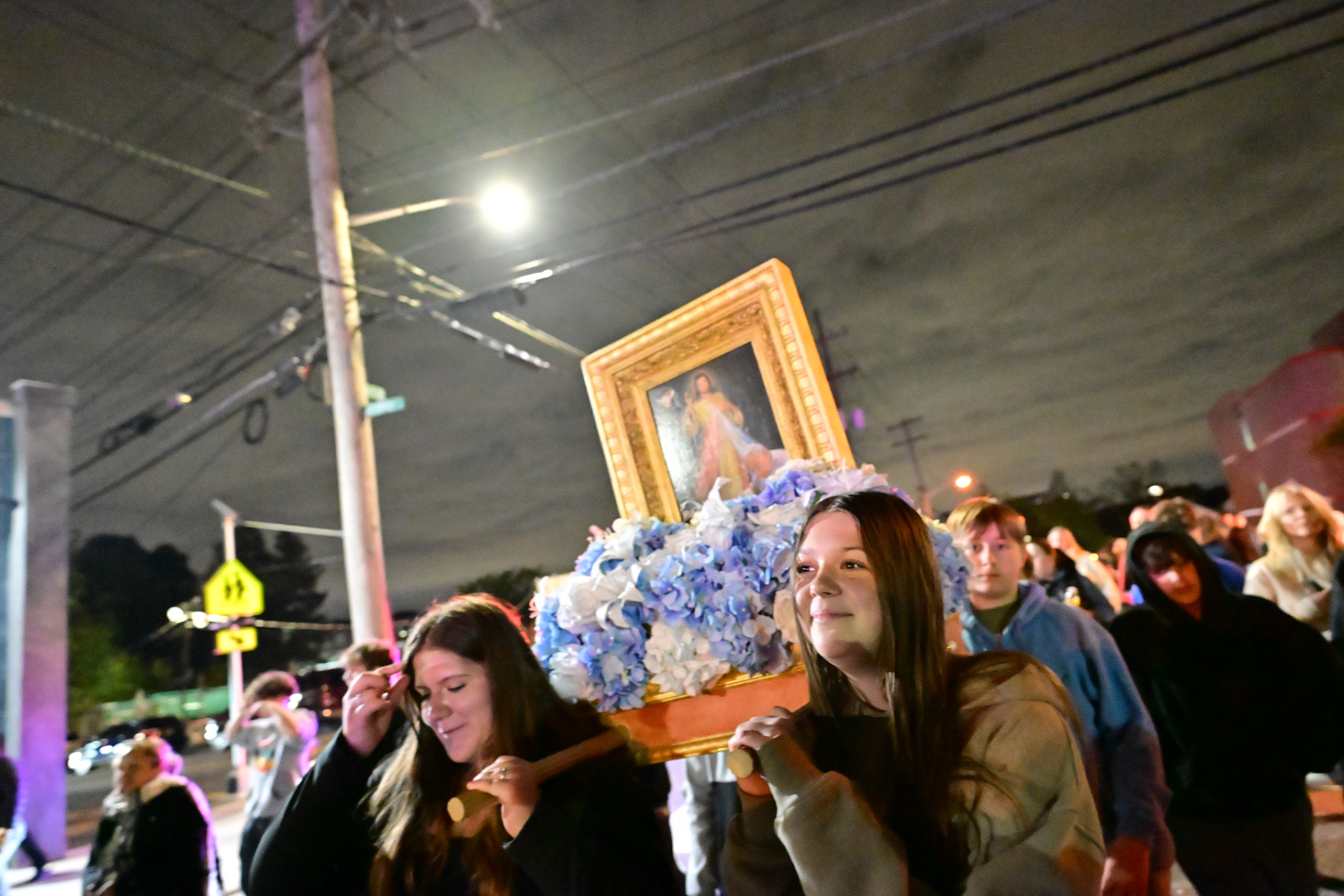 The procession began at St. Anthony of Padua Church. It ended at the Diocesan Shrine of St. John Paul II/Holy Rosary Church with stops at five other Catholic churches in the city. They were Holy Trinity, St. Joseph, St. Mary of the Assumption, Our Lady of Fatima/St. Nicholas and St. Stephen.