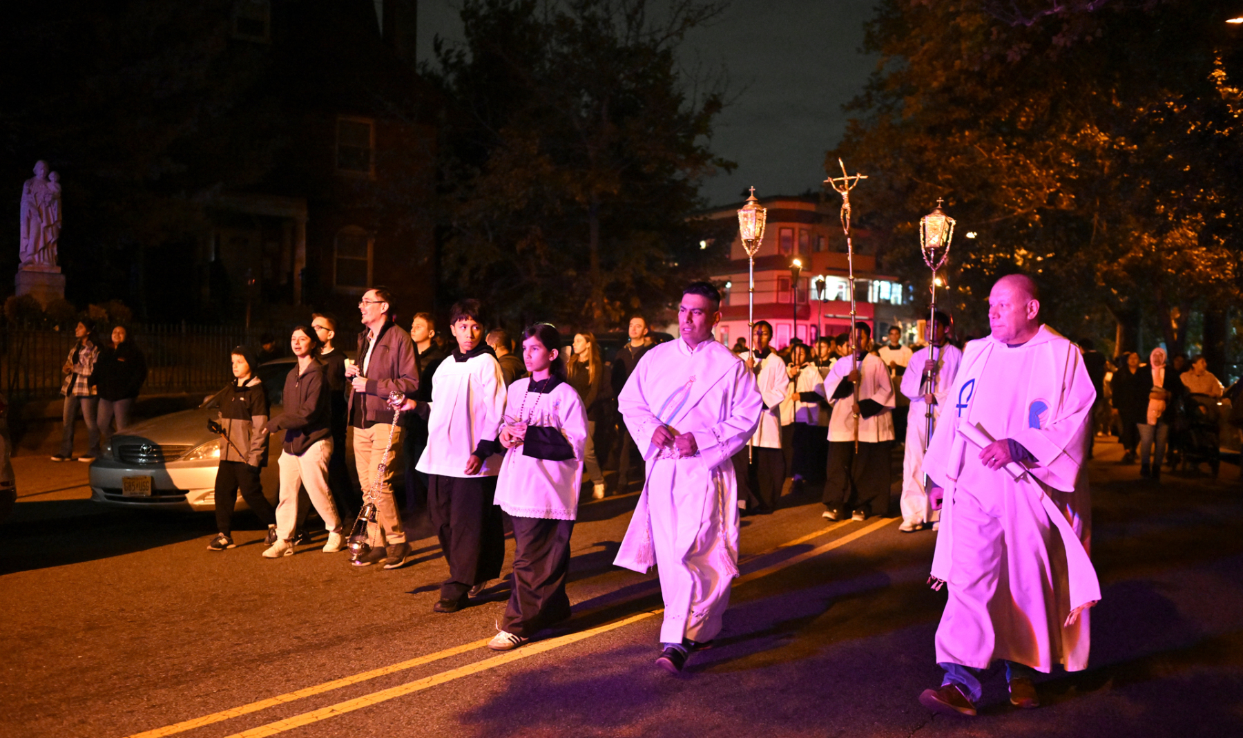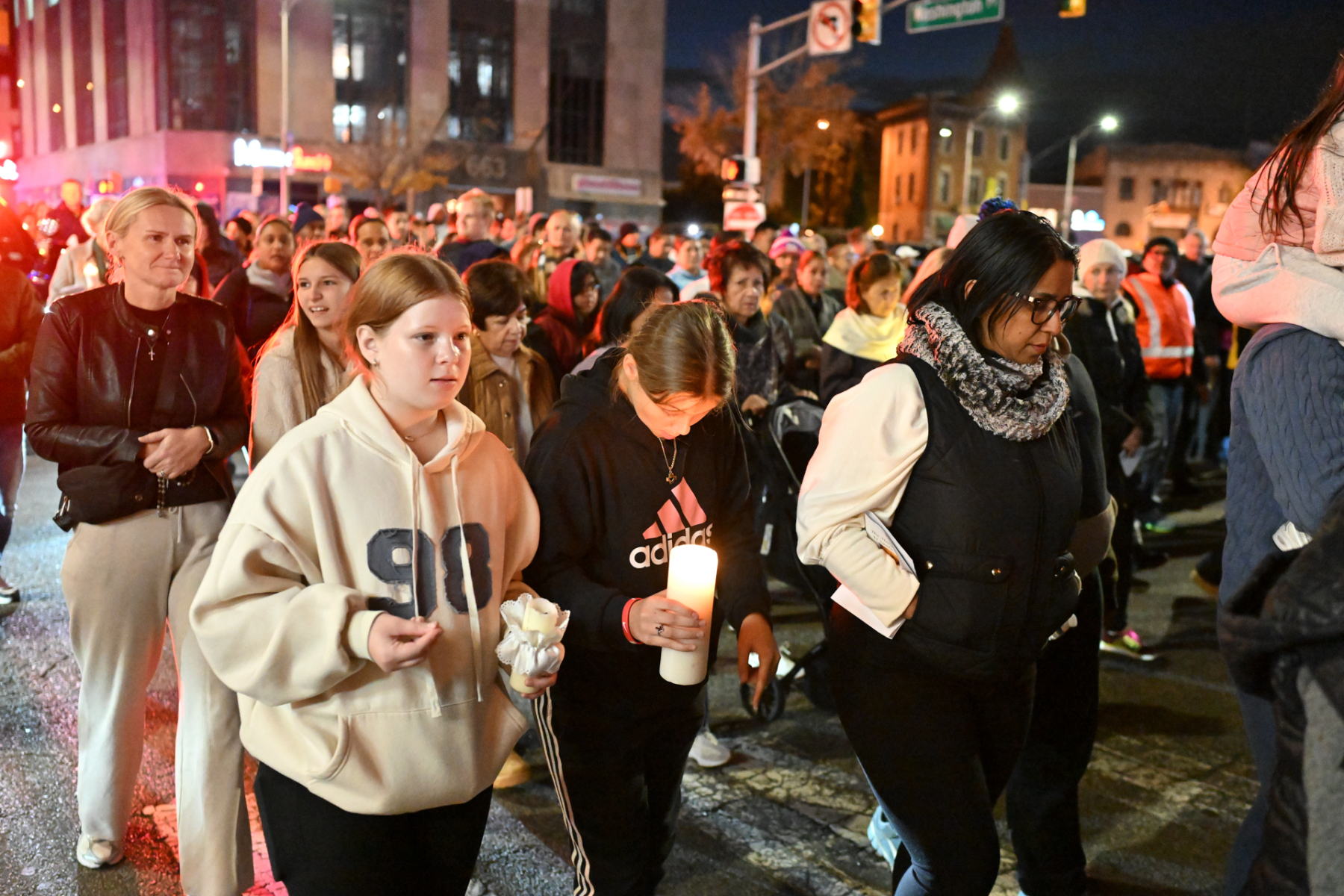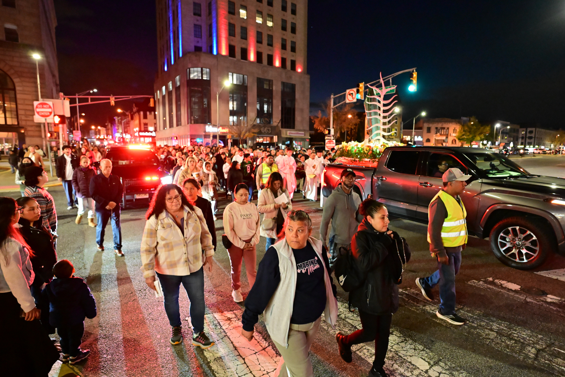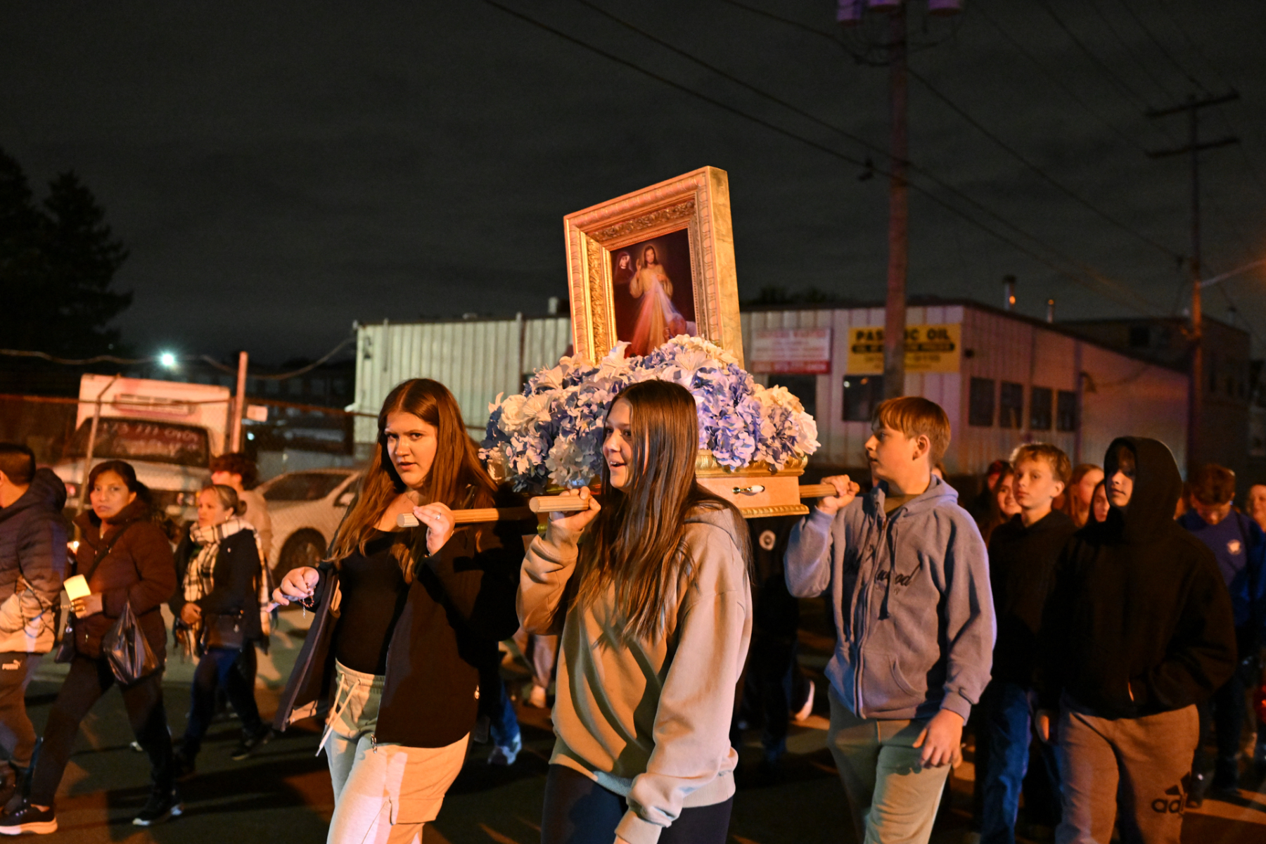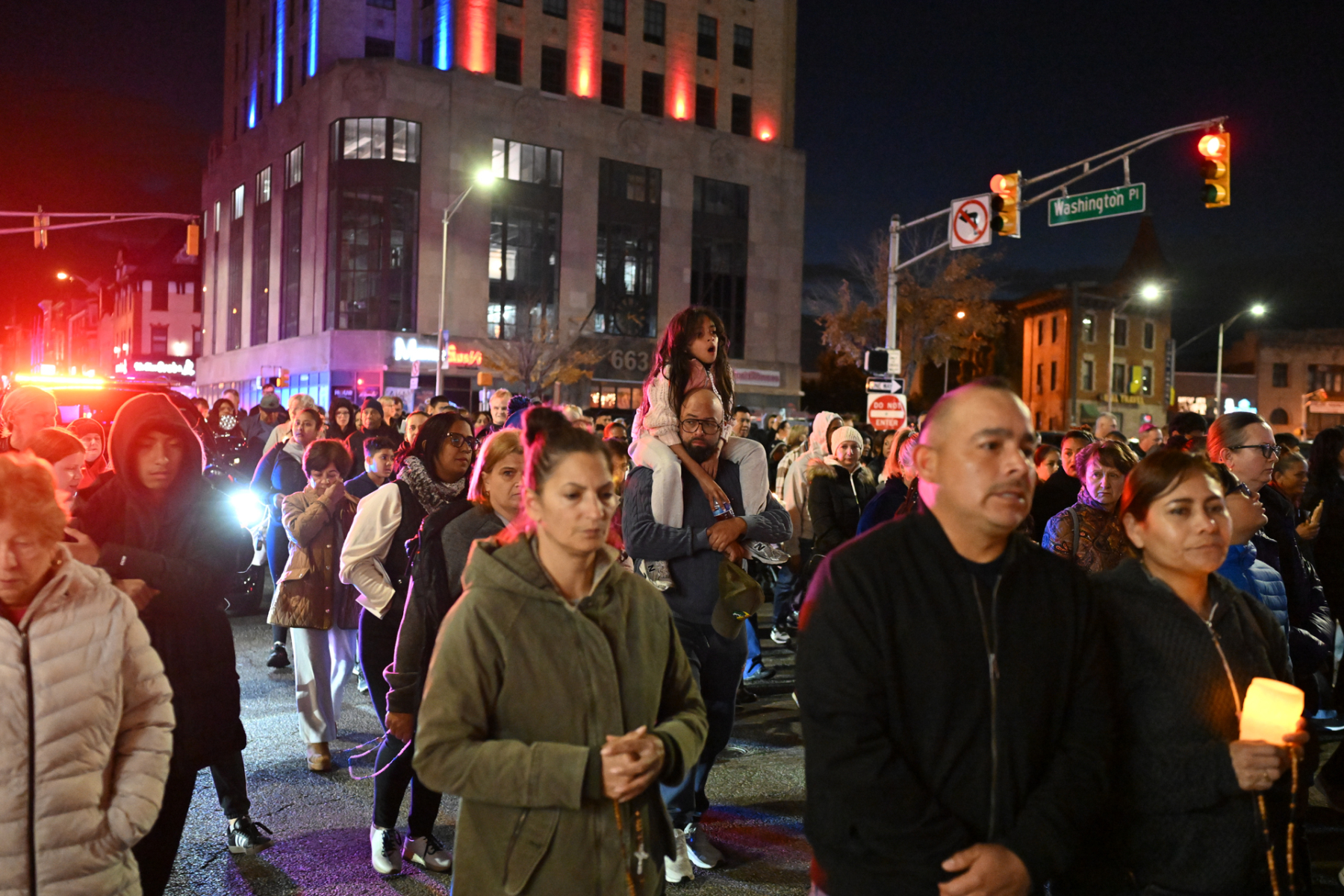 All four mysteries of the rosary — Joyful, Glorious, Sorrowful, and Luminous — were recited with prayers in English, Spanish, Polish, and Hungarian, reflecting the diversity of the city, which is historically known as a first dwelling place for immigrants coming to the United States.