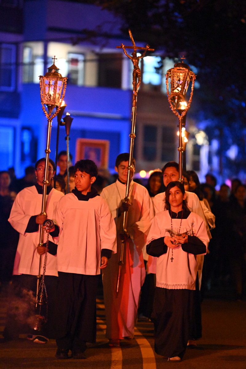 Hundreds participated in the procession throughout the city for almost three hours. Many stood on the sidewalk and from their homes, looking out their windows and from their front steps to see the procession.