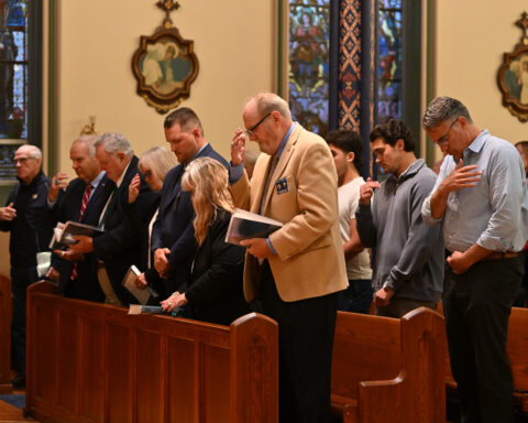 At 12:30 p.m. on Oct. 18, participants in the Hispanic Ministry Convocation joined those in the diocese for the Jubilee of Catechists, held on the same day at Delbarton, for a shared Mass in the church.