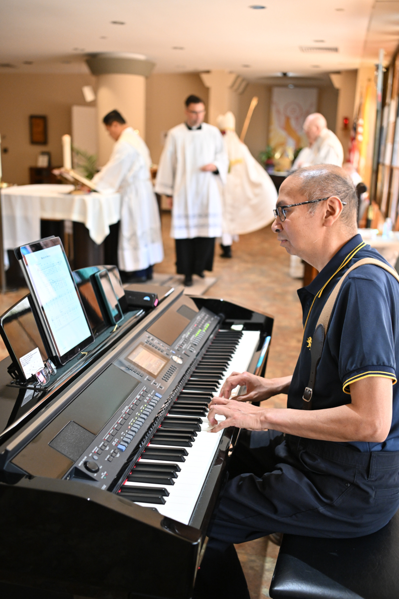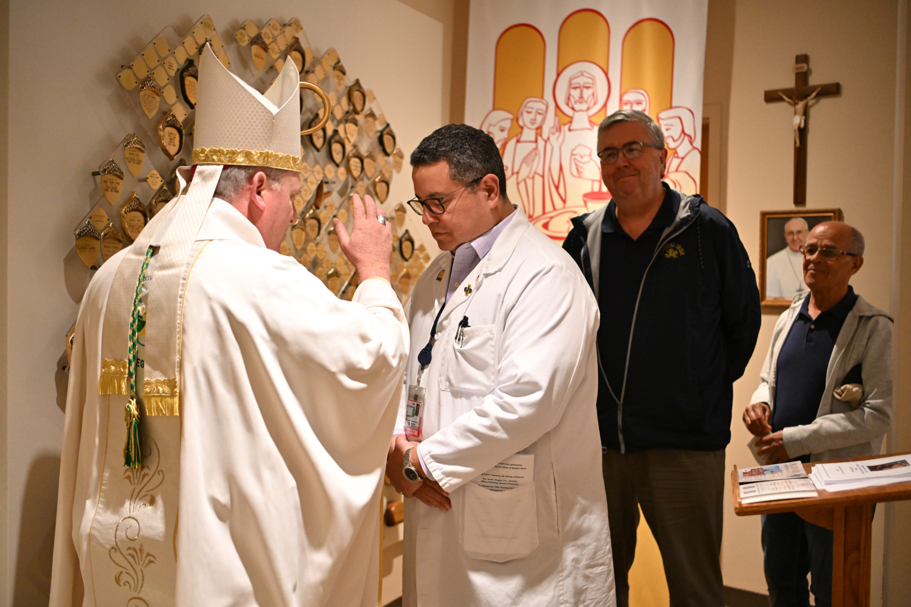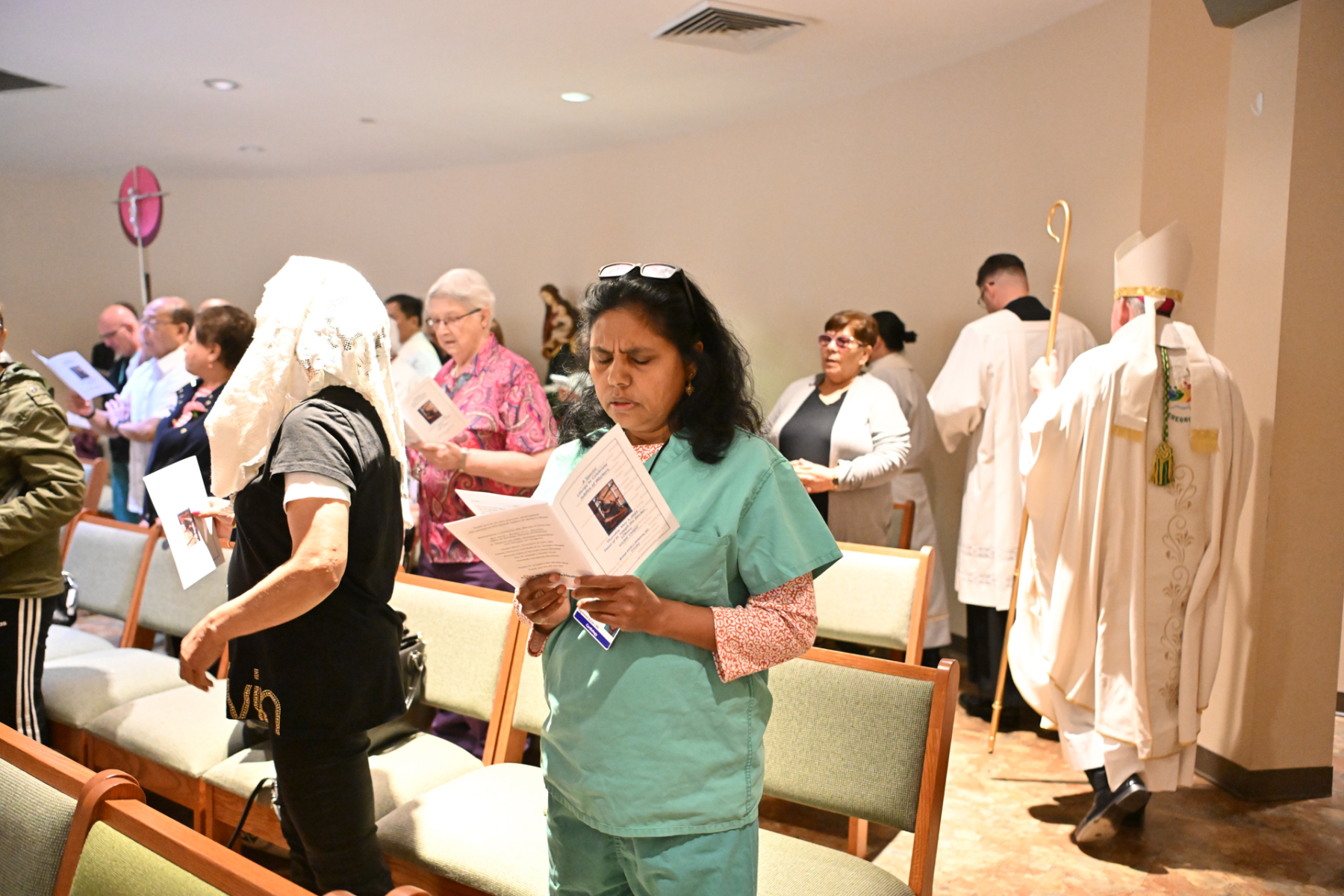 Bishop Kevin J. Sweeney was the main celebrant and homilist. Father Miguel Jimenez, a diocesan priest and St. Joseph’s chaplain, concelebrated the liturgy. Father Jared Brogan, diocesan worship director, was the master of ceremonies. Deacon Michael Pasquale, Structural Heart Program coordinator; Deacon Lawrence Duffy, pastoral care director of St. Joseph’s Health; and Deacon Roberto Demetillo, St. Joseph’s nursing director, assisted with the Mass.