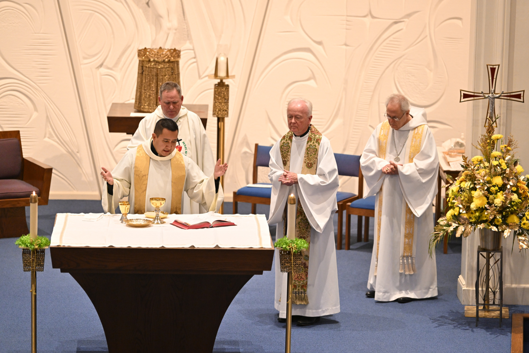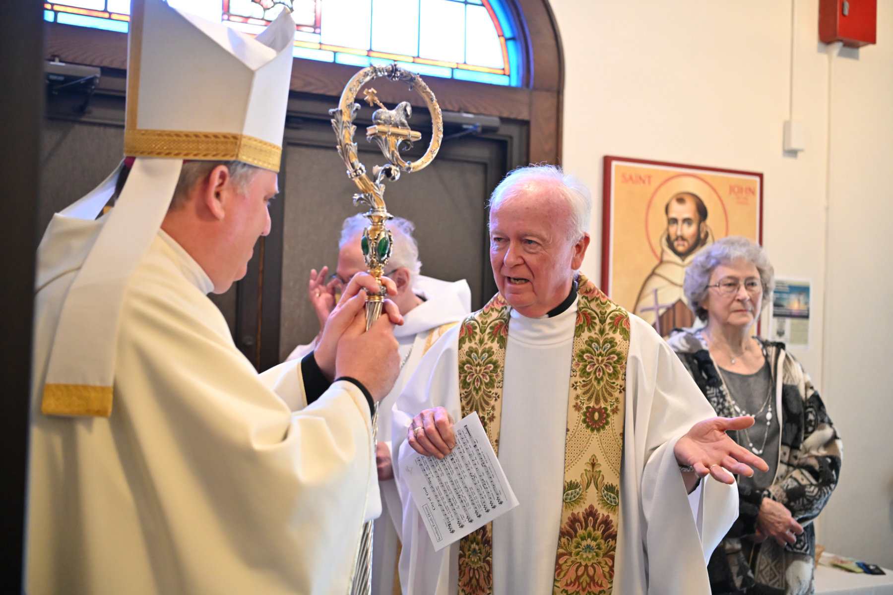 The Mass was concelebrated by Father Peter VB Wells, pastor of Holy Cross and its twin parish, Our Lady of the Valley (OLV), also in Wayne, and director of cemeteries of the Paterson Diocese in New Jersey; Father Edward Lambro, a retired diocesan priest and a weekend assistant of the two parishes; and Father Duberney Villamizar, pastor of St. Margaret of Scotland Parish in Morristown, N.J., diocesan vicar of Hispanic Affairs, and a former parochial vicar of the parishes.