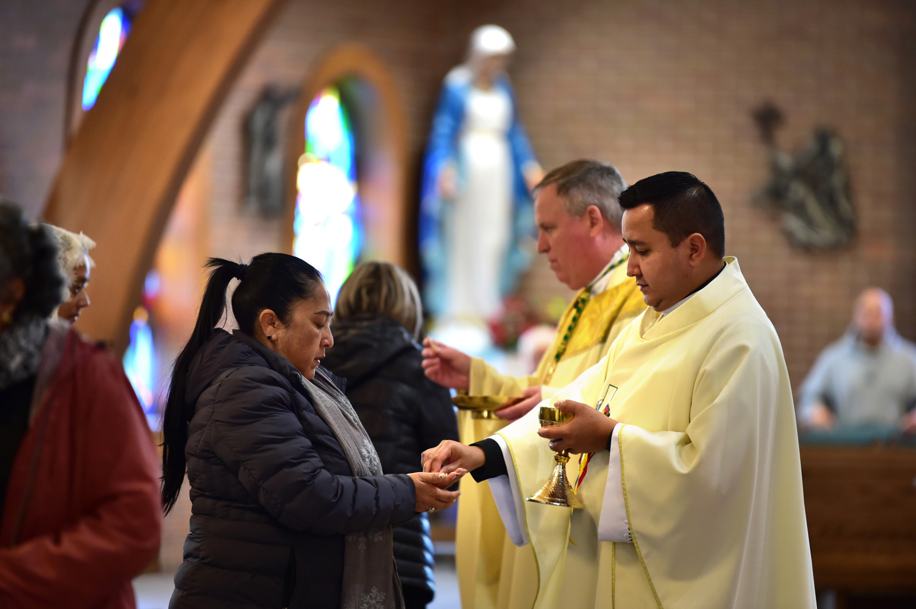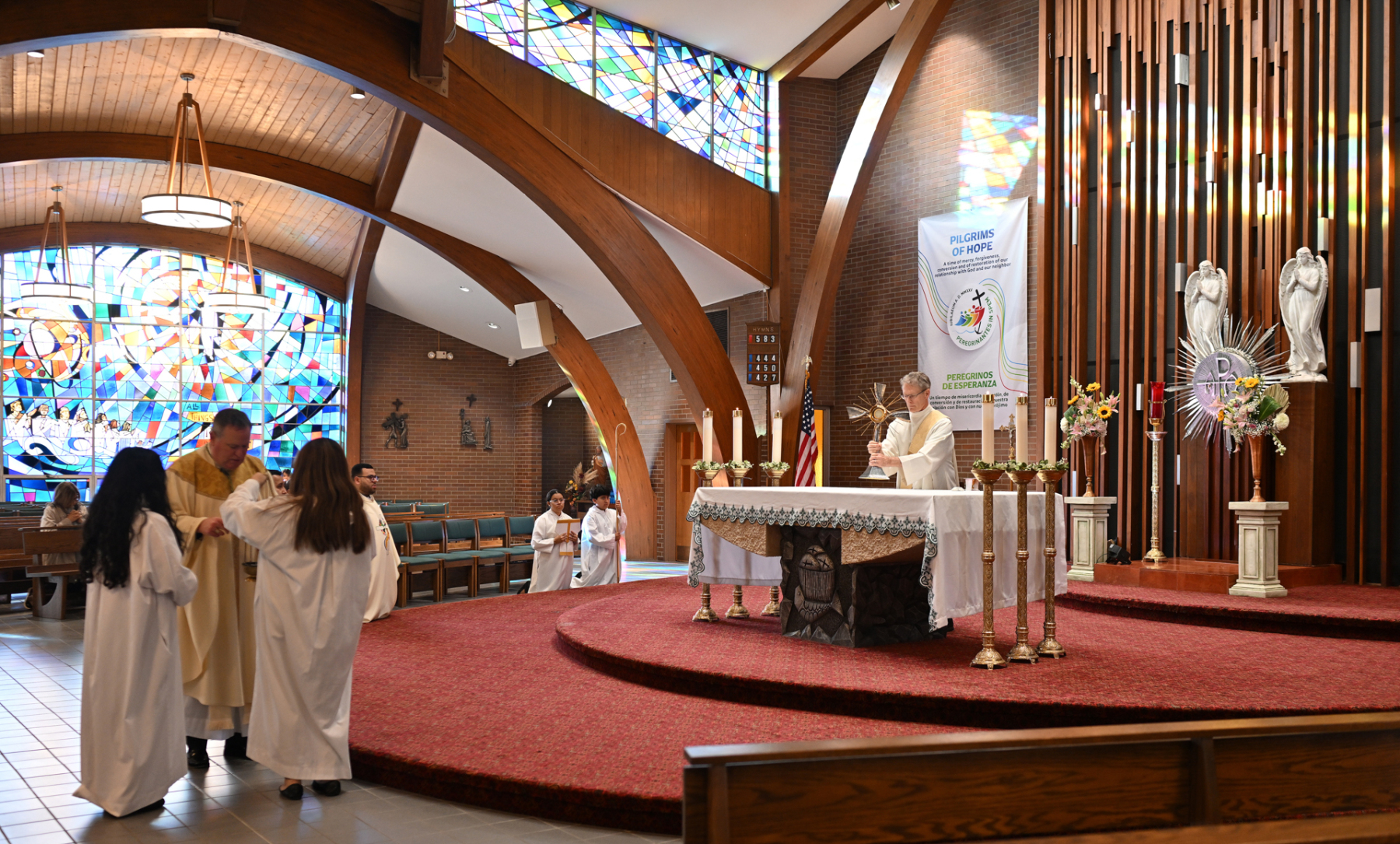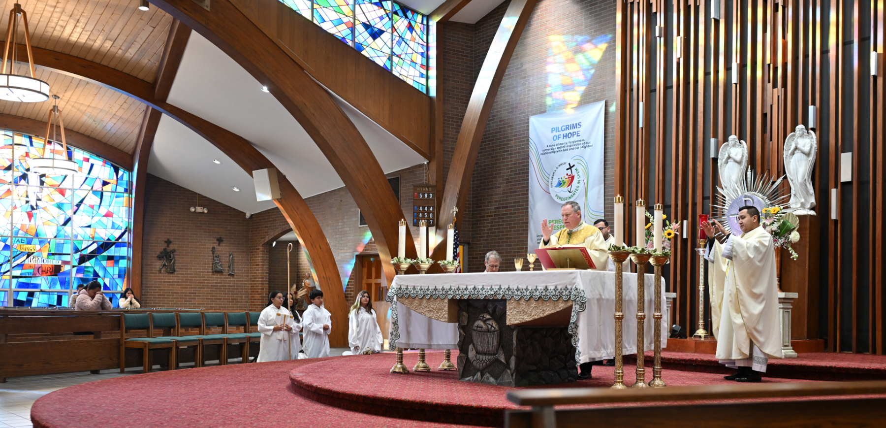 The event started with Bishop Sweeney celebrating Mass at St. Margaret of Scotland Parish in Morristown. Father Duberney Villamizar, St. Margaret’s pastor and diocesan vicar for Hispanic affairs, and Father Sebastian Munoz Chavarria, the parish’s parochial vicar, concelebrated the Mass with the bishop.