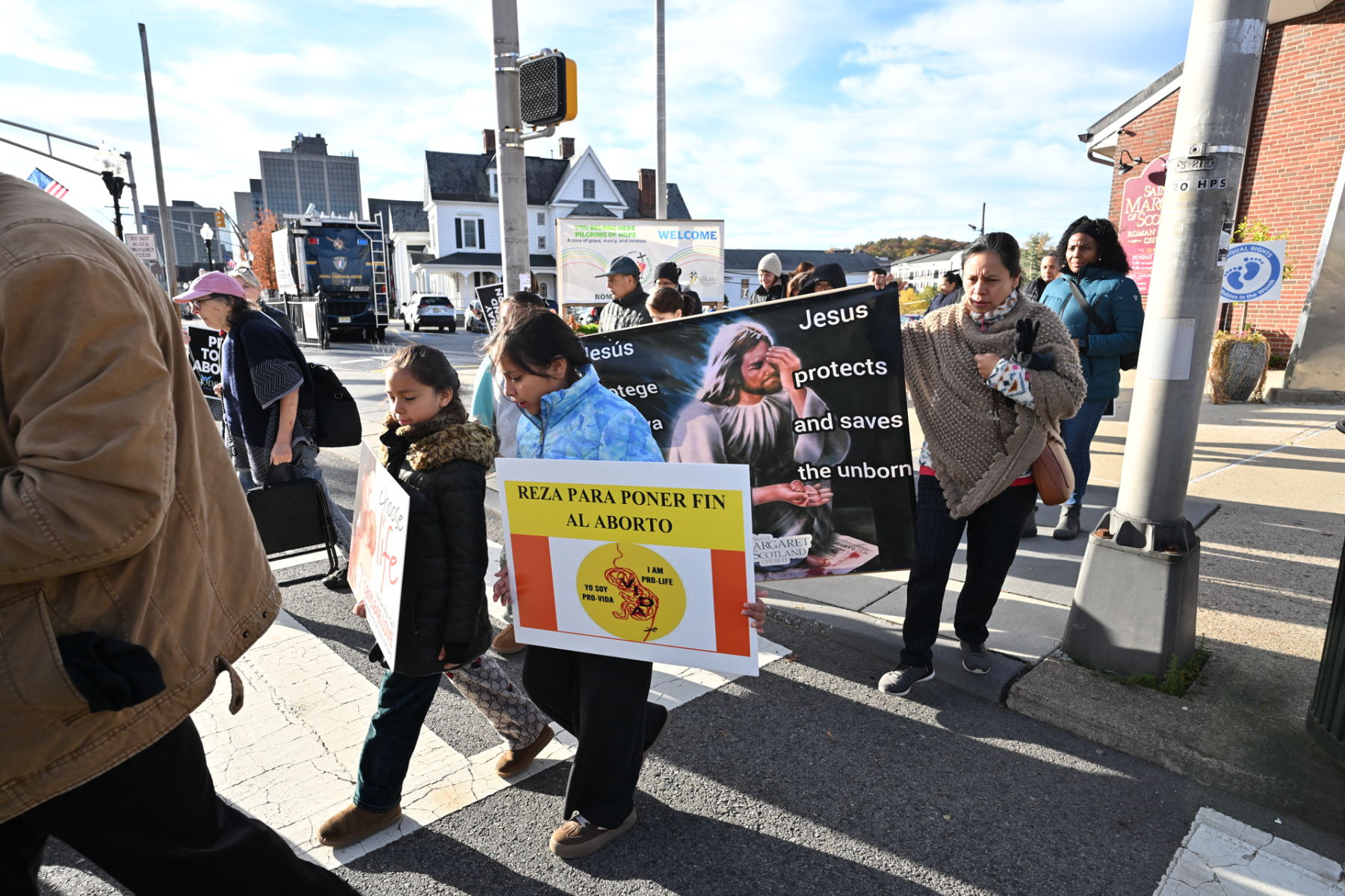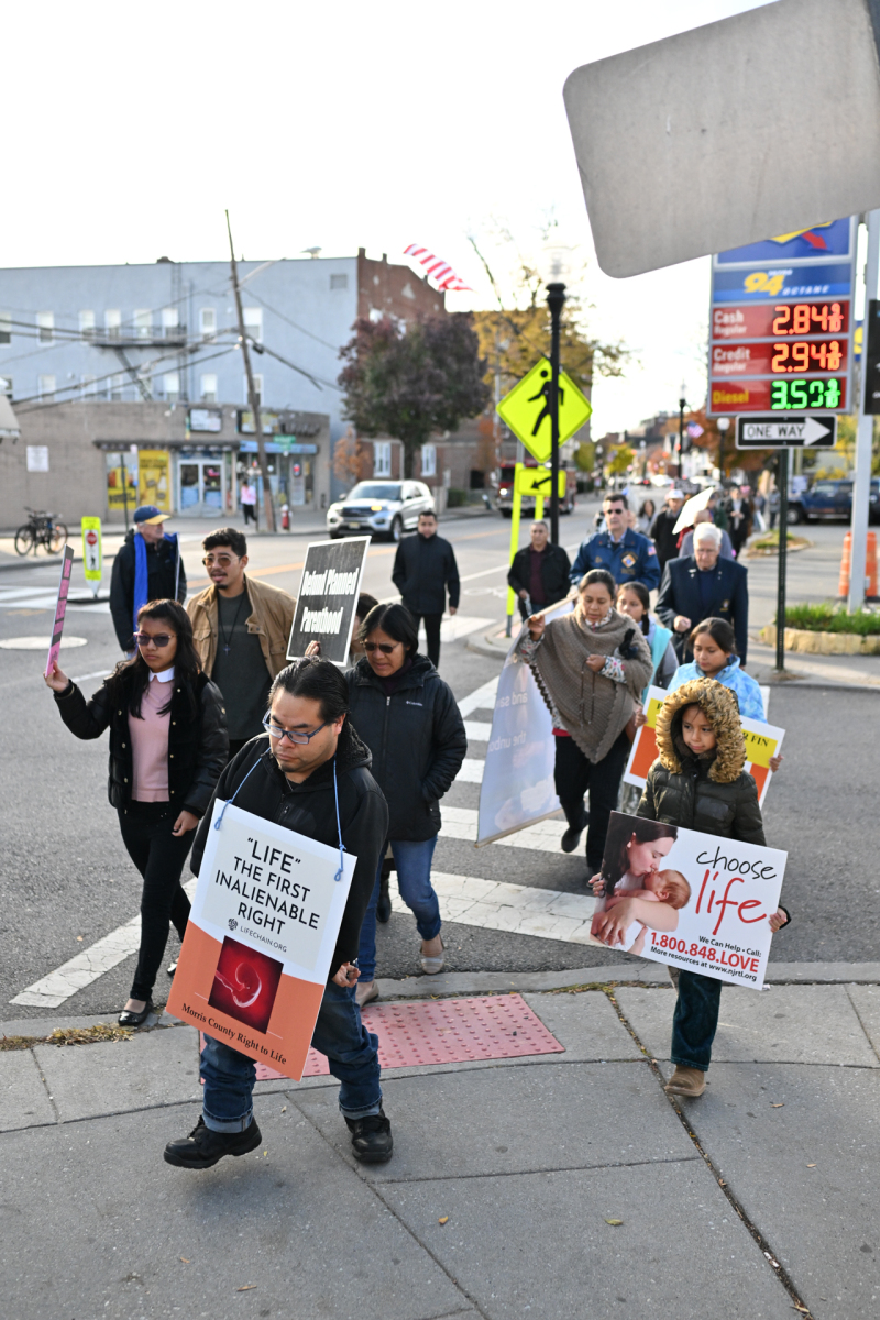 On the morning of Nov. 1, a large gathering of Catholic faithful carried powerful messages through the streets of Morristown, N.J. — such as “Choose Life” and “Adoption: the Loving Option” — during Bishop Kevin J. Sweeney’s monthly Mass and Rosary Procession for Life.