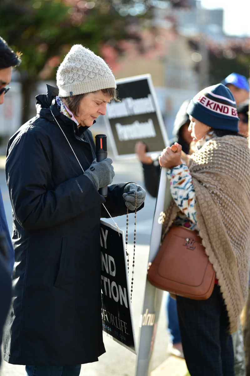 After the Mass, Bishop Sweeney led the participants — clergy, religious, and laity — in a procession to Planned Parenthood on Speedwell Avenue. A few of them carried signs in English and Spanish that promoted respect for life as they prayed the rosary for an end to abortion. Alyssa Renovales, Respect Life coordinator of the Paterson Diocese in New Jersey, joined the solemn procession.