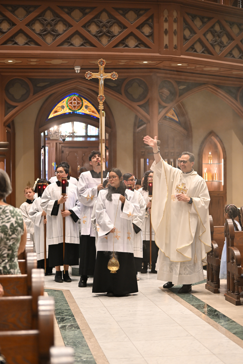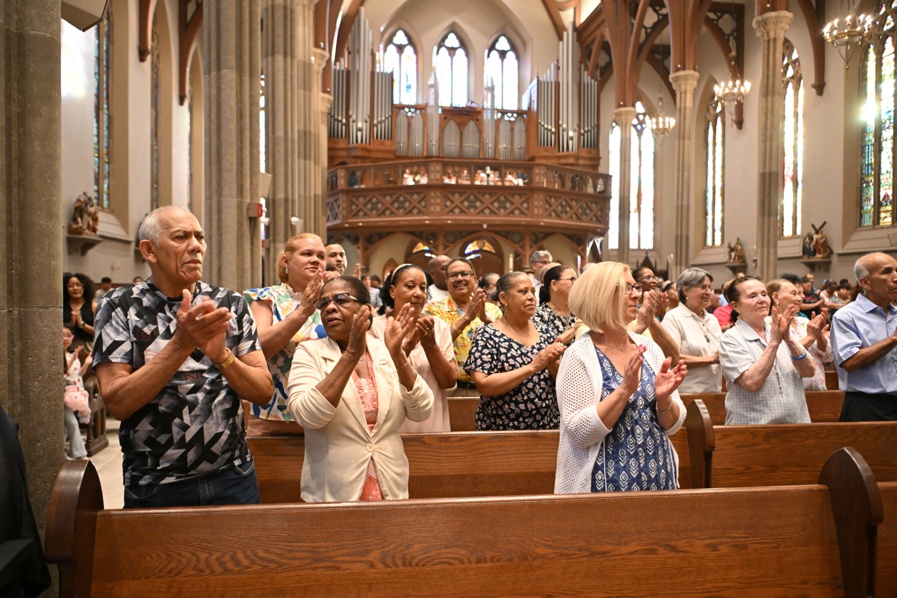 After the dedication, Bishop Kevin J. Sweeney celebrated a Mass in the cathedral to commemorate the Feast of the Nativity of St. John the Baptist, the patron saint of the cathedral, and the Paterson Diocese. The English and Spanish liturgy also marked the 205th anniversary of the cathedral.
