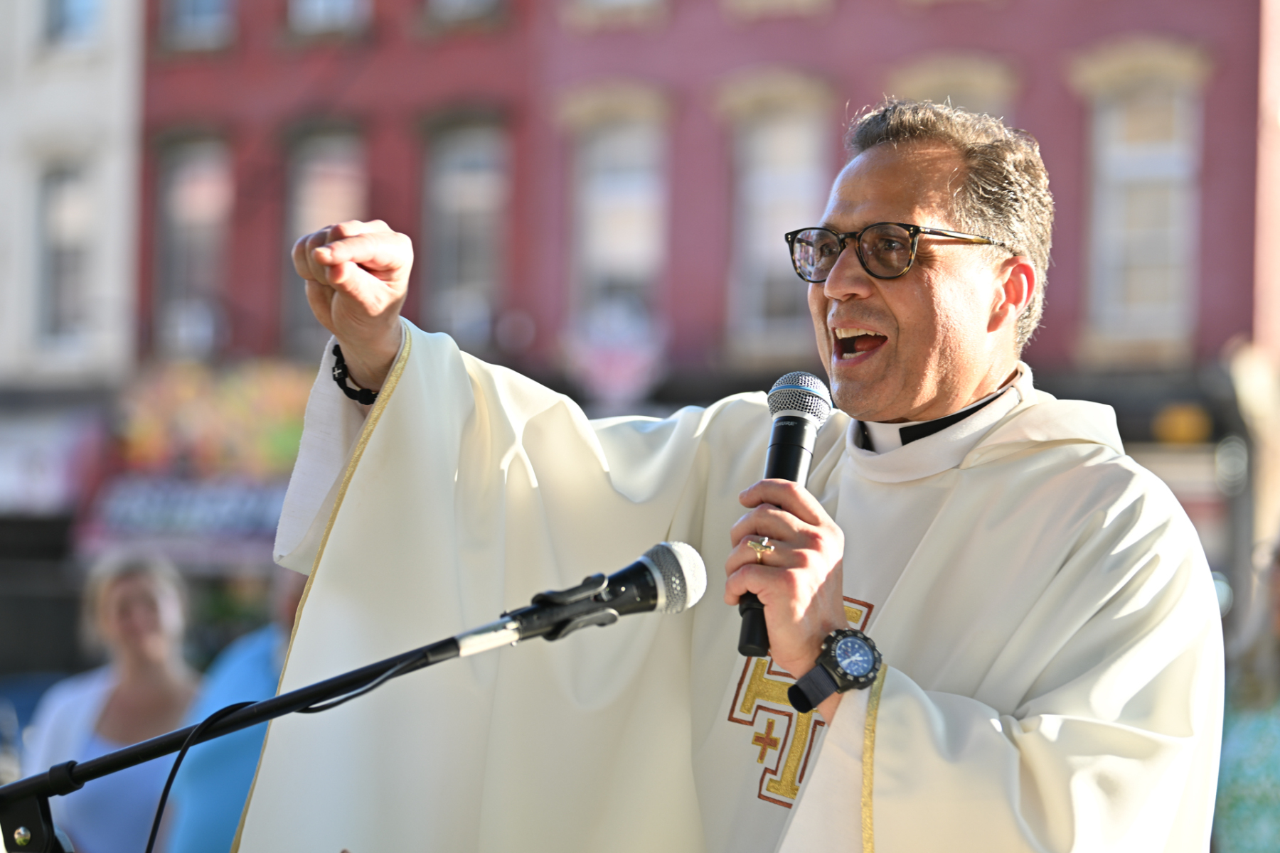 “You live lives of faith, hope, and love on this Block of Mercy. Even though you may not have a lot, you share with your neighbors who have less. That is the Eucharist: love in action,” Bishop Sweeney said.