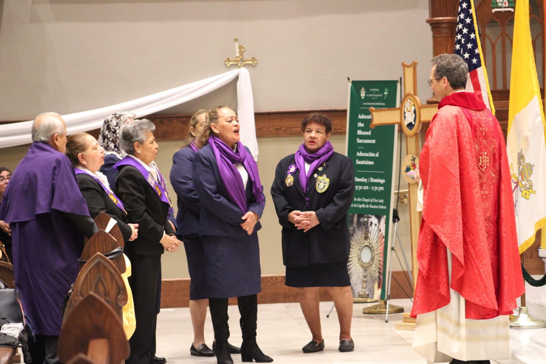 La jornada contó con dos Misas solemnes. La primera, a las 12:30 p.m., fue presidida por el obispo diocesano, Mons. Kevin J. Sweeney, en un ambiente bilingüe que reflejó la riqueza cultural de la Iglesia local. Por la noche, a las 7:00 p.m., Mons. Geno Sylva celebró una segunda Misa en español, que congregó a fieles de diversas parroquias, con una fuerte presencia de la comunidad peruana, representada por la Hermandad del Señor de los Milagros de Paterson, la más numerosa fuera del Perú.
