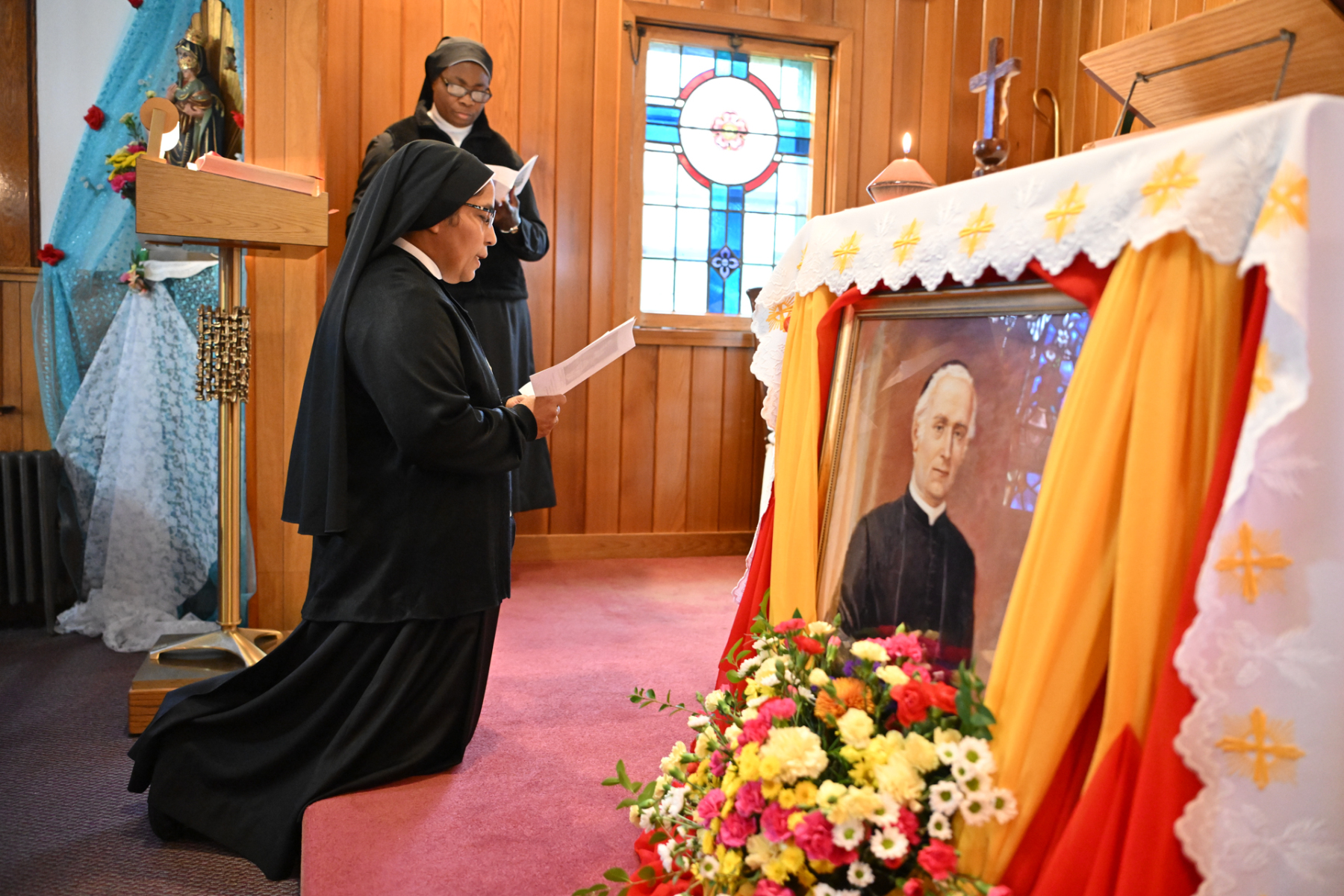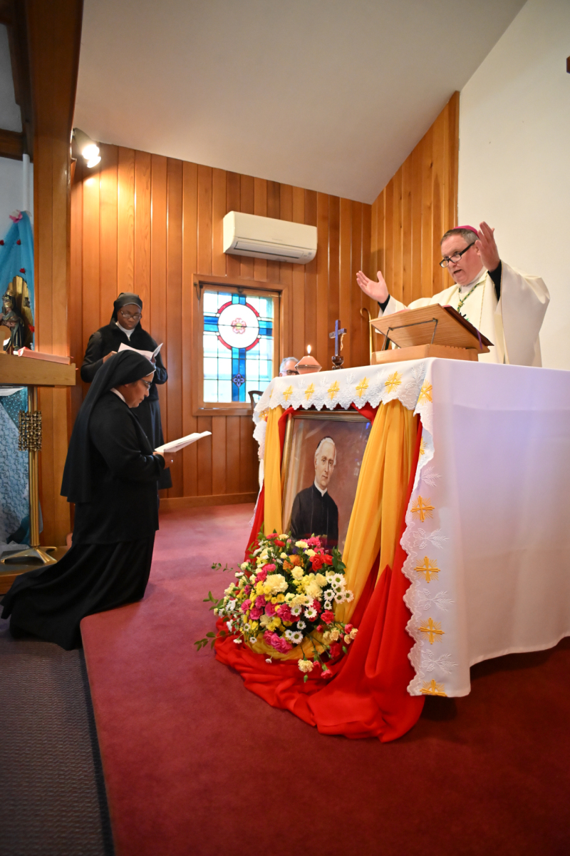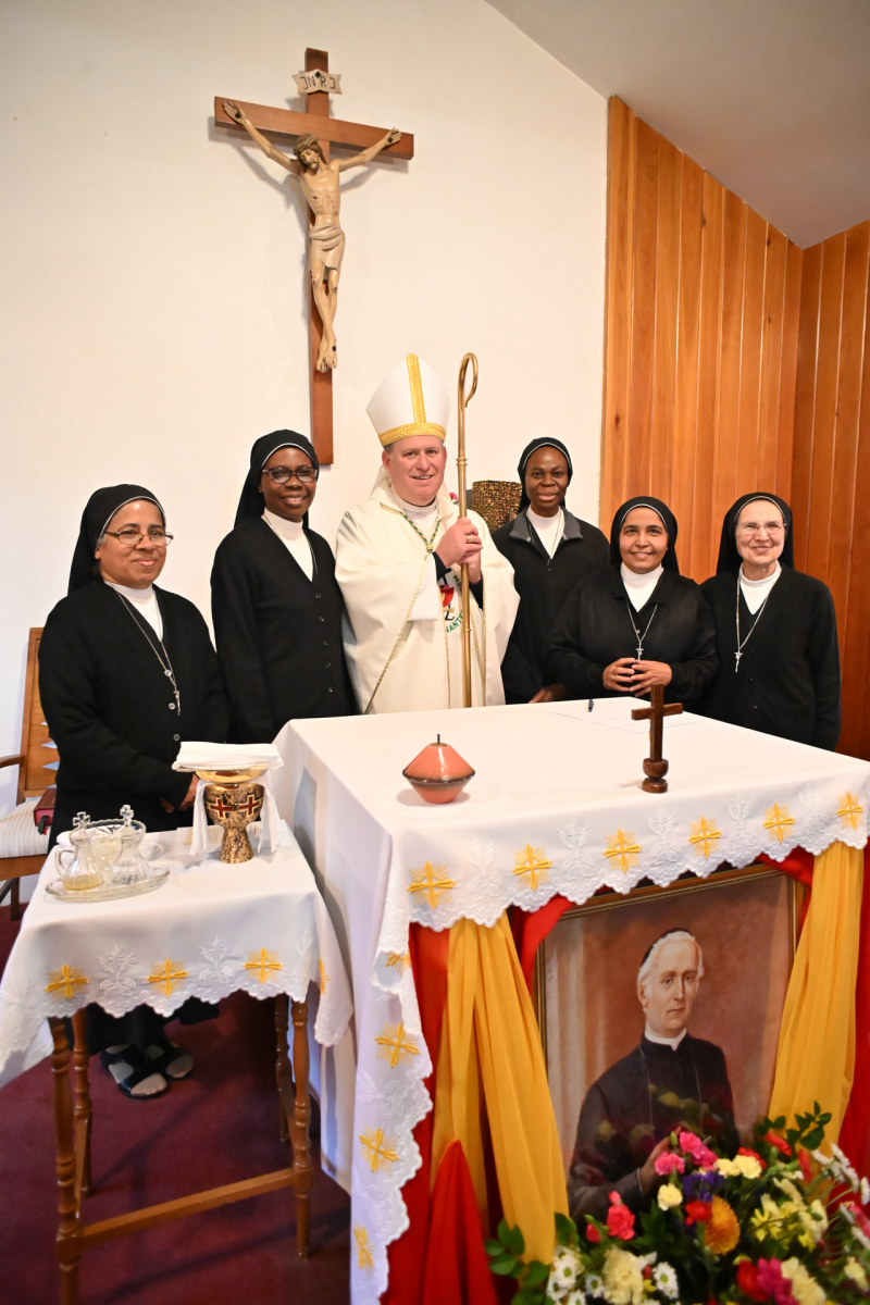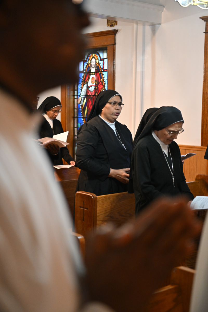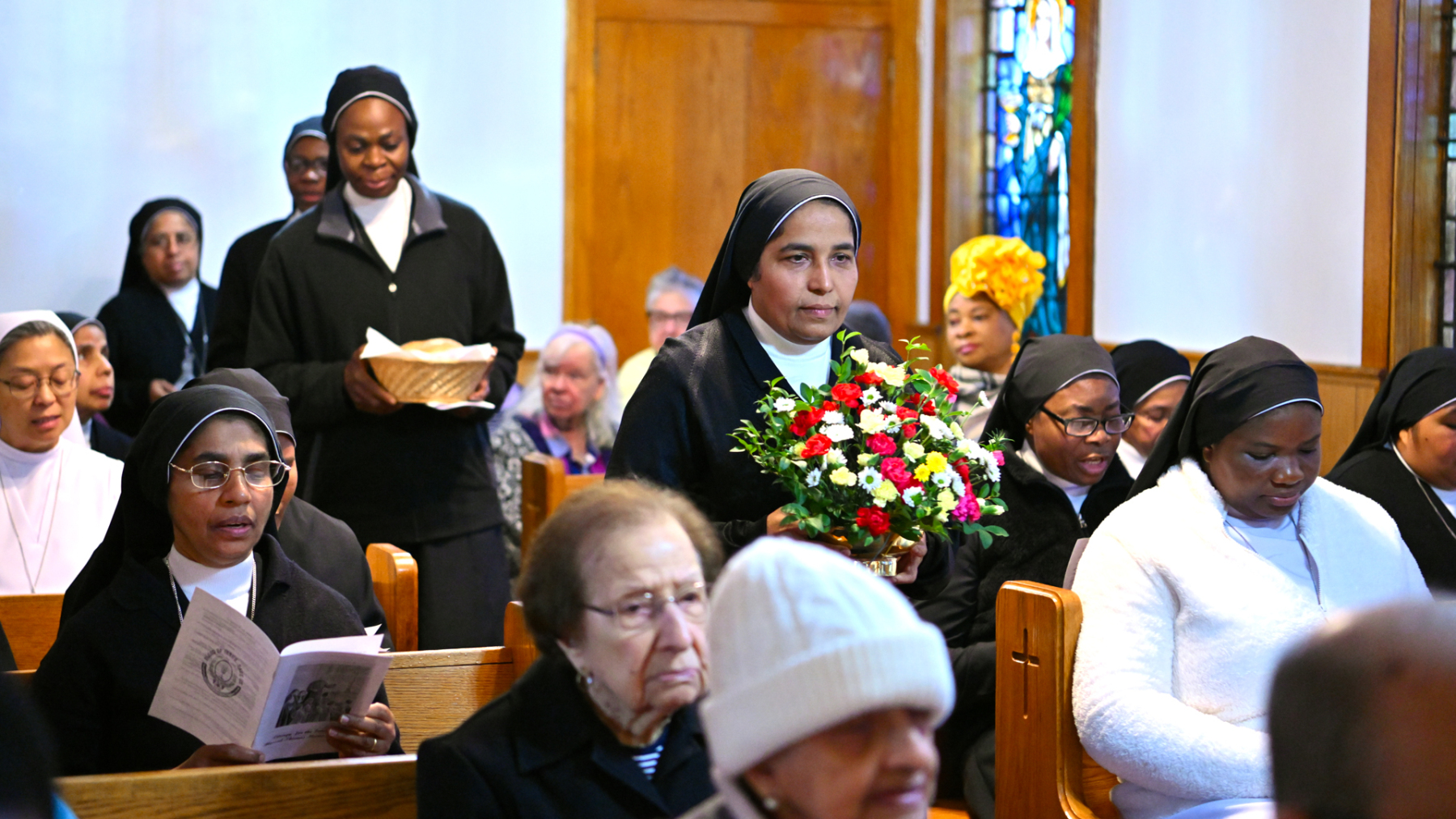 Bishop Sweeney was the main celebrant and homilist of the Mass. The concelebrants were Father Charles Waller, a retired diocesan priest and chaplain to the sisters; Msgr. George Hundt, pastor of St. Gerard Majella and Our Lady of Pompei parishes, both in Paterson; Father Marc Mancini, pastor of St. James of the Marches Parish in Totowa, N.J.; Father Manuel Alejandro Cuellar, parochial vicar of St. Gerard Majella and Our Lady of Pompei; and Father Erasmus Okere, parochial vicar of Blessed Sacrament/St. Charles Borromeo Parish in Newark, N.J. These priests were joined by Father Simmy Thomas, the parish vicar of St. George Syro-Malabar Catholic Church, also in Paterson.