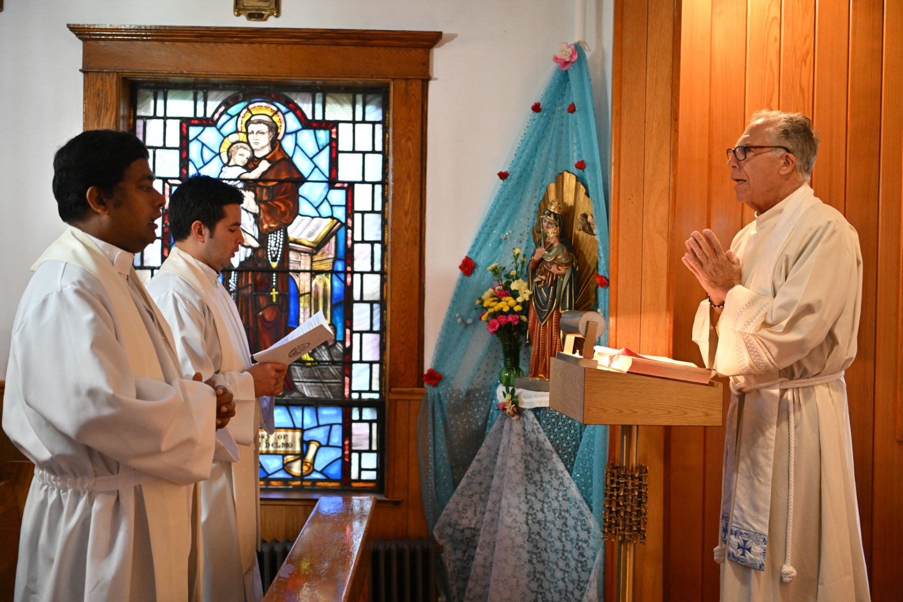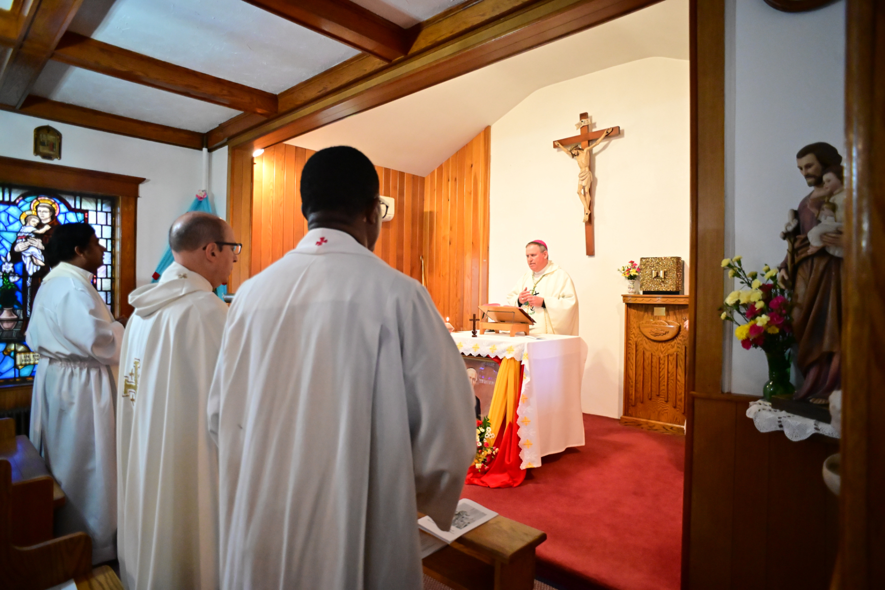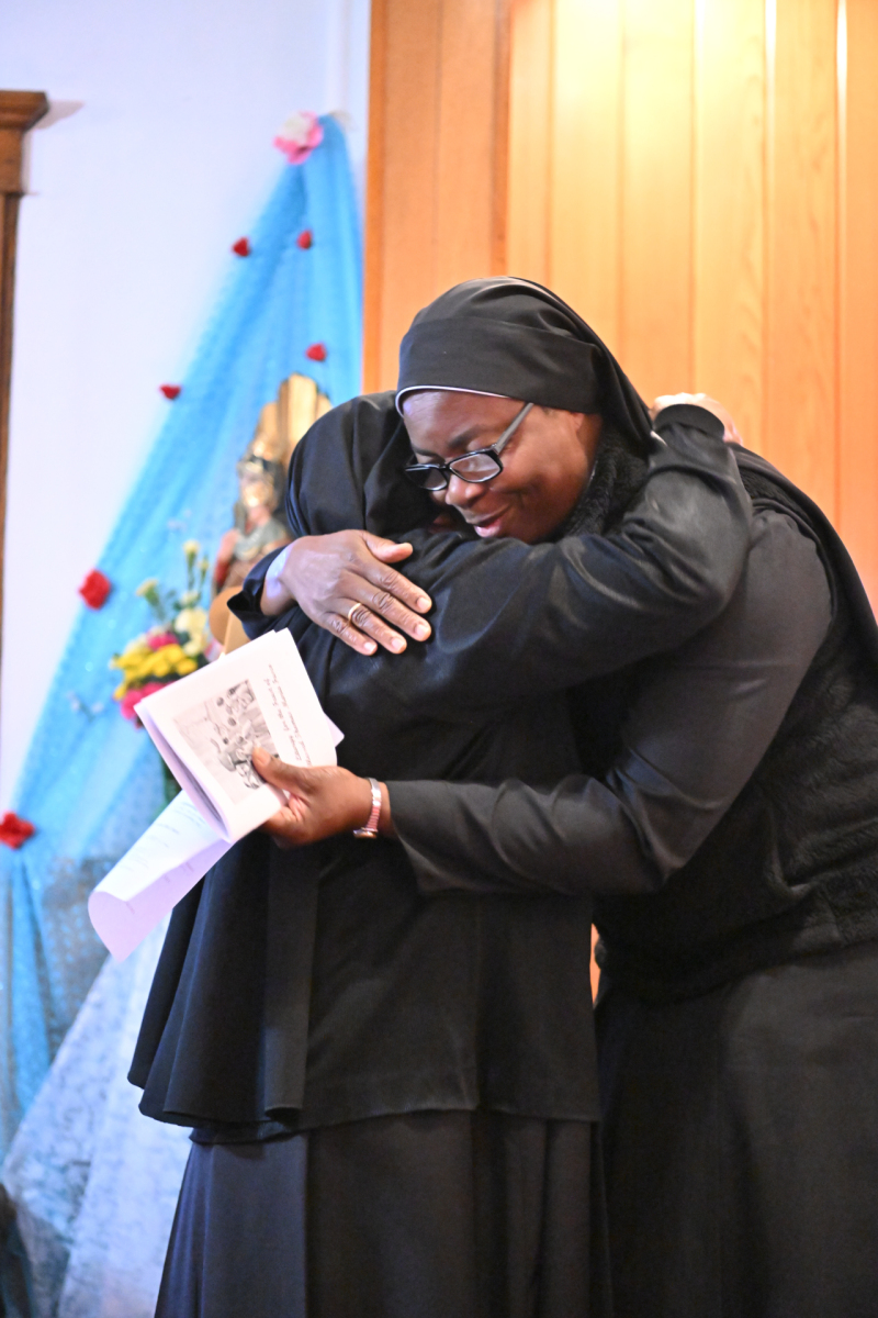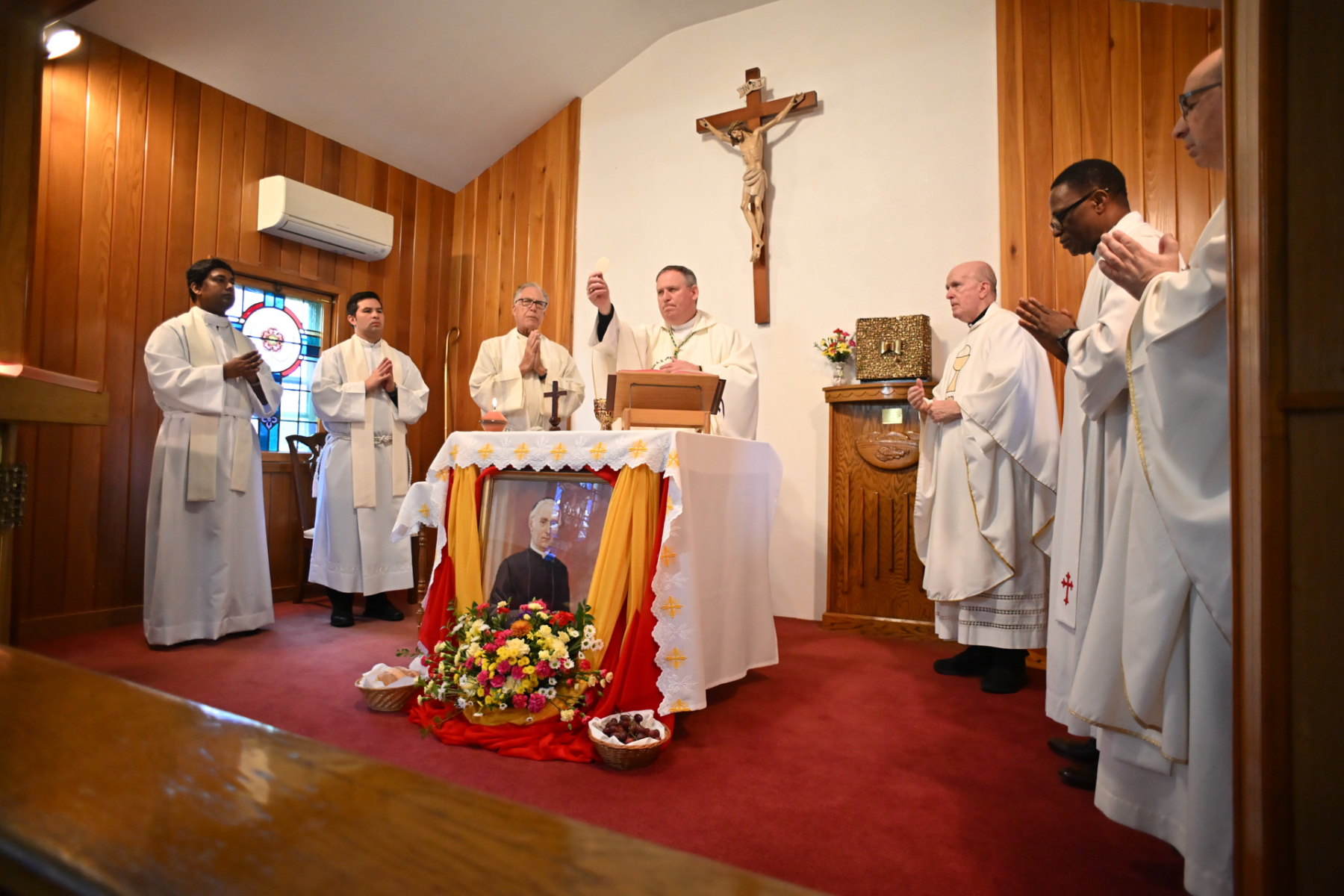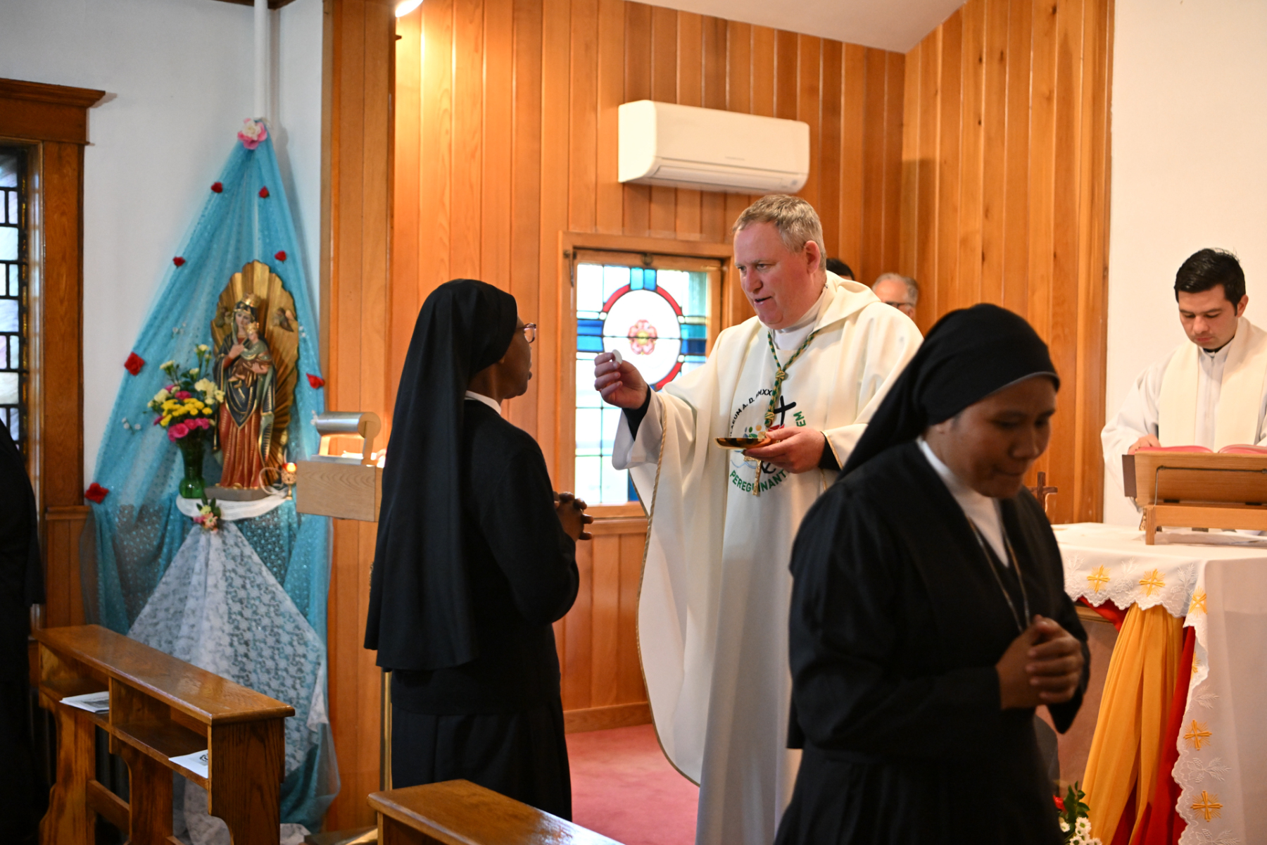 Bishop Sweeney was the main celebrant and homilist of the Mass. The concelebrants were Father Charles Waller, a retired diocesan priest and chaplain to the sisters; Msgr. George Hundt, pastor of St. Gerard Majella and Our Lady of Pompei parishes, both in Paterson; Father Marc Mancini, pastor of St. James of the Marches Parish in Totowa, N.J.; Father Manuel Alejandro Cuellar, parochial vicar of St. Gerard Majella and Our Lady of Pompei; and Father Erasmus Okere, parochial vicar of Blessed Sacrament/St. Charles Borromeo Parish in Newark, N.J. These priests were joined by Father Simmy Thomas, the parish vicar of St. George Syro-Malabar Catholic Church, also in Paterson.