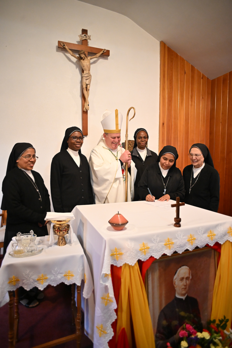 Bishop Kevin J. Sweeney visited the Daughters of Charity of the Most Precious Blood of Paterson, N.J., to install Sister Regi Varghese as the delegate leading the congregation in the United States during a Mass he celebrated on Oct. 13. She will serve a three-year term as delegate.