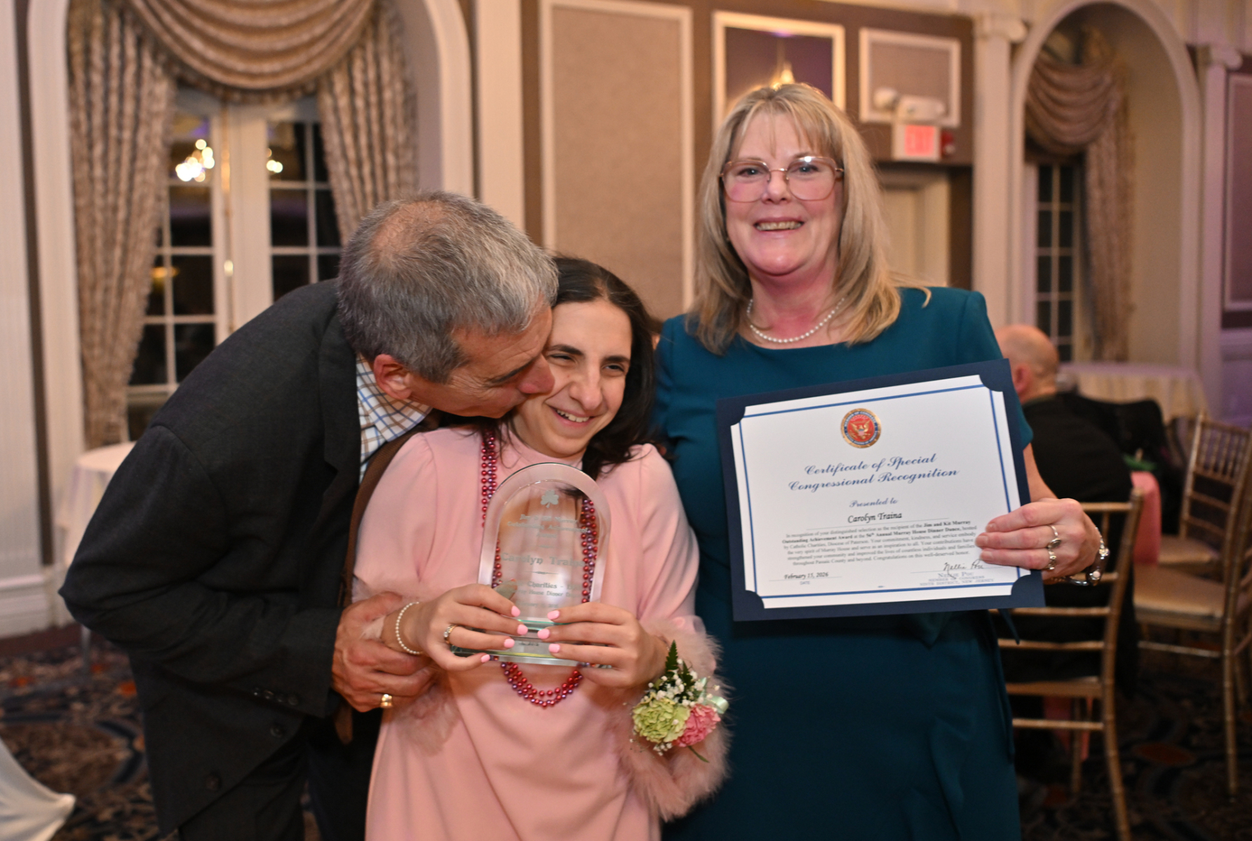 Stephen Shulkowski and his son, Jackson, who volunteer at Walsh House in the Succasunna neighborhood of Roxbury Township, N.J., received the Marilyn Murray Keenan Inspiration Award for “giving of themselves freely and without expectations or judgment,” said Joanna Miller, DPD, executive director. Cristina Gomez, Walsh House associate director, was honored with the Employee of the Year Award for her “tremendous connection with the residents and her love of supporters and everyone,” Miller said.