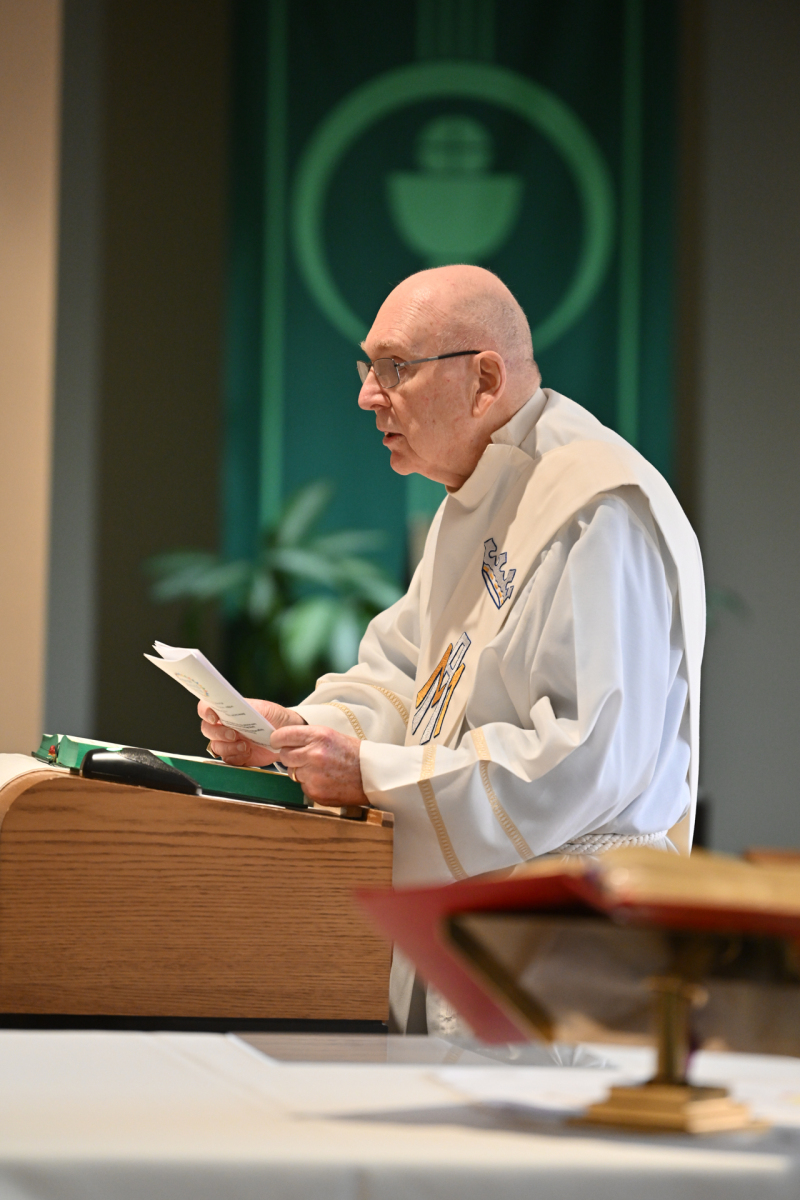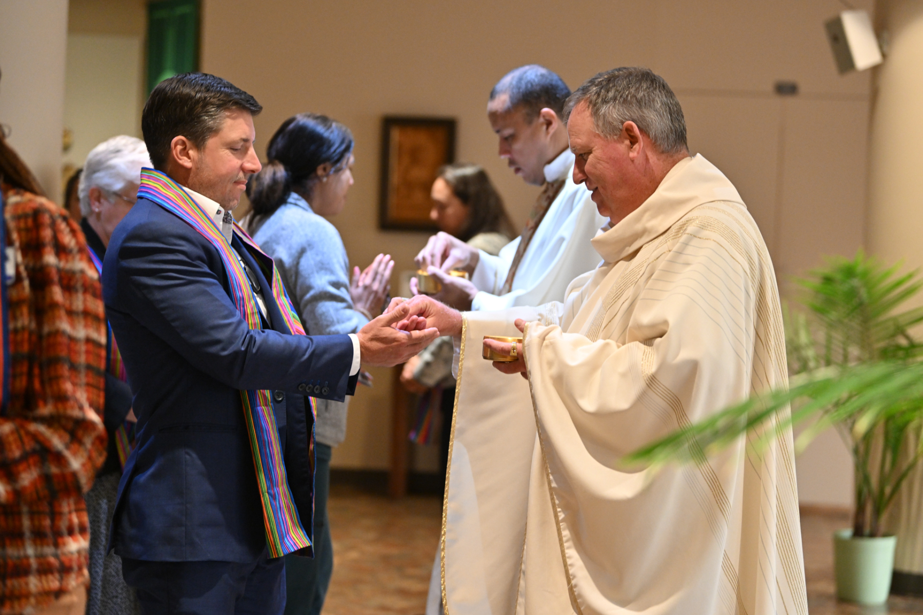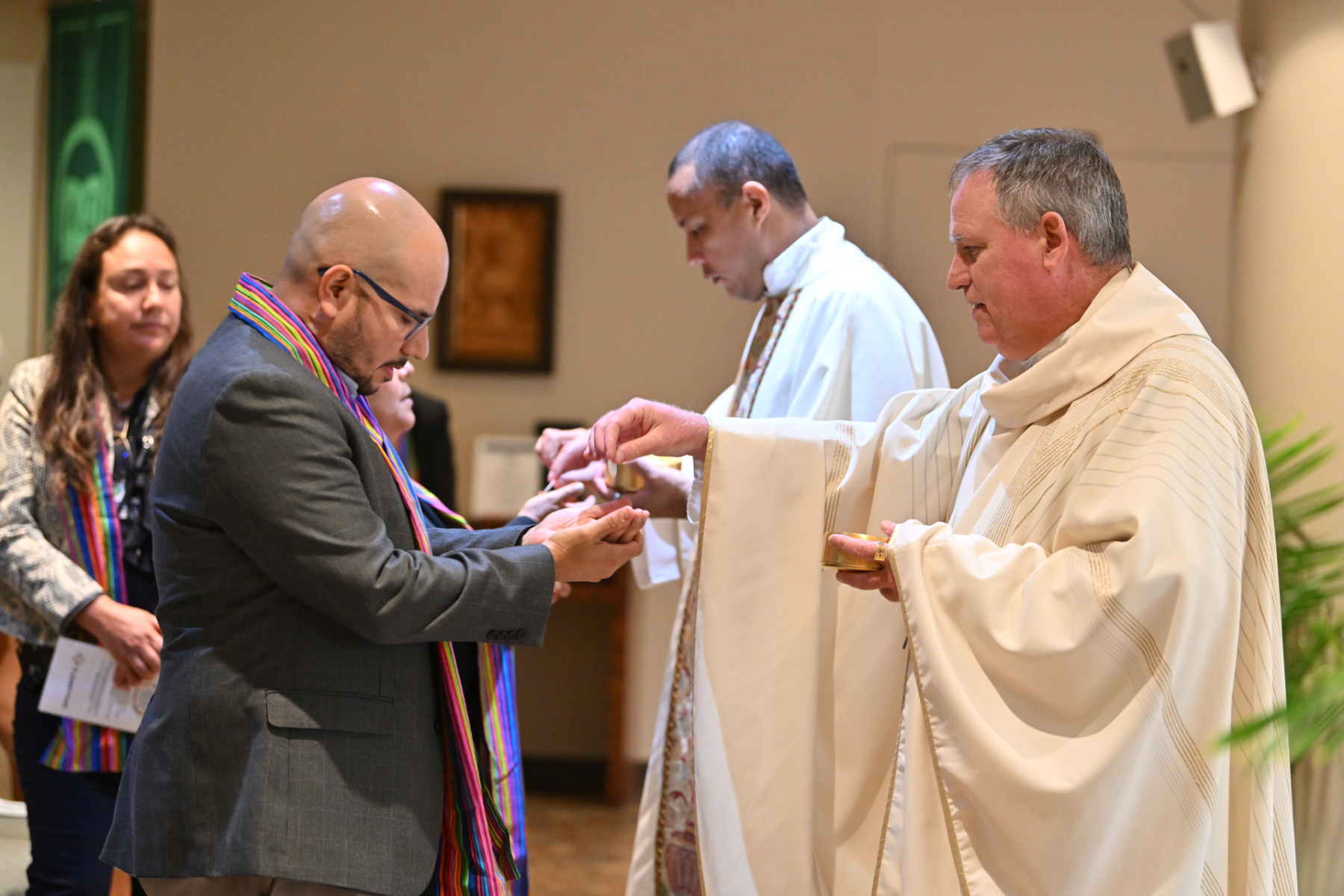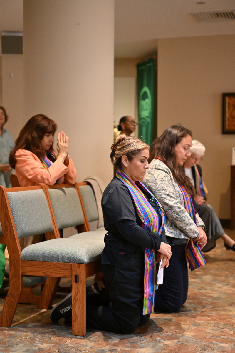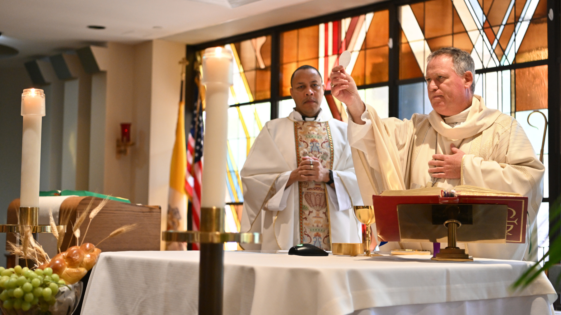 Father Francis Conde, a hospital chaplain at St. Joseph’s who has been appointed pastor of St. Clare Parish in Clifton, N.J., effective Oct. 1, and Father Alexander Wilder Londono, also a hospital chaplain at St. Joseph’s, concelebrated the liturgy with Bishop Sweeney. Deacon Lawrence Duffy, pastoral care director of St. Joseph’s Health, assisted with the liturgy.