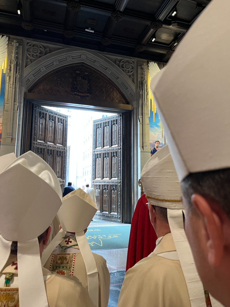 Among Father Jaramillo’s favorite moments of the Mass was when Cardinal Dolan and Cardinal Christophe Pierre, the apostolic nuncio to the U.S., escorted Archbishop Hicks to the cathedra, the archbishop’s chair that represents his authority. During the Mass, Cardinal Pierre, with the choir, sang a brief version of “Happy Birthday” to Cardinal Dolan, who turned 76, according to OSV.