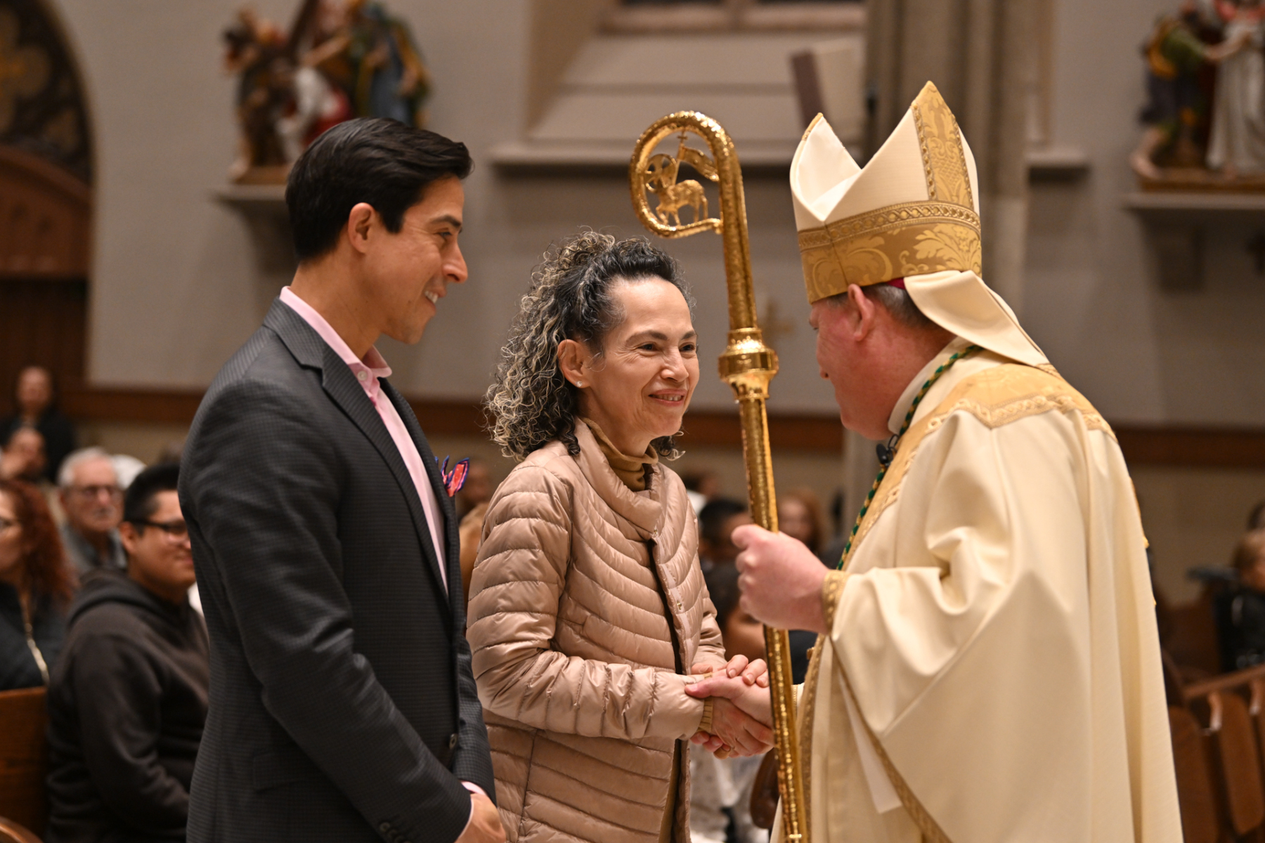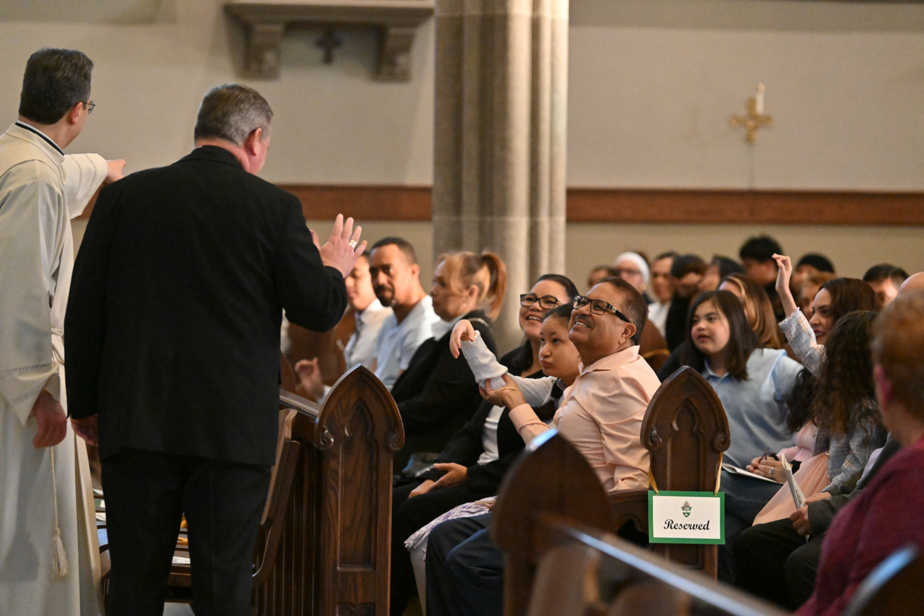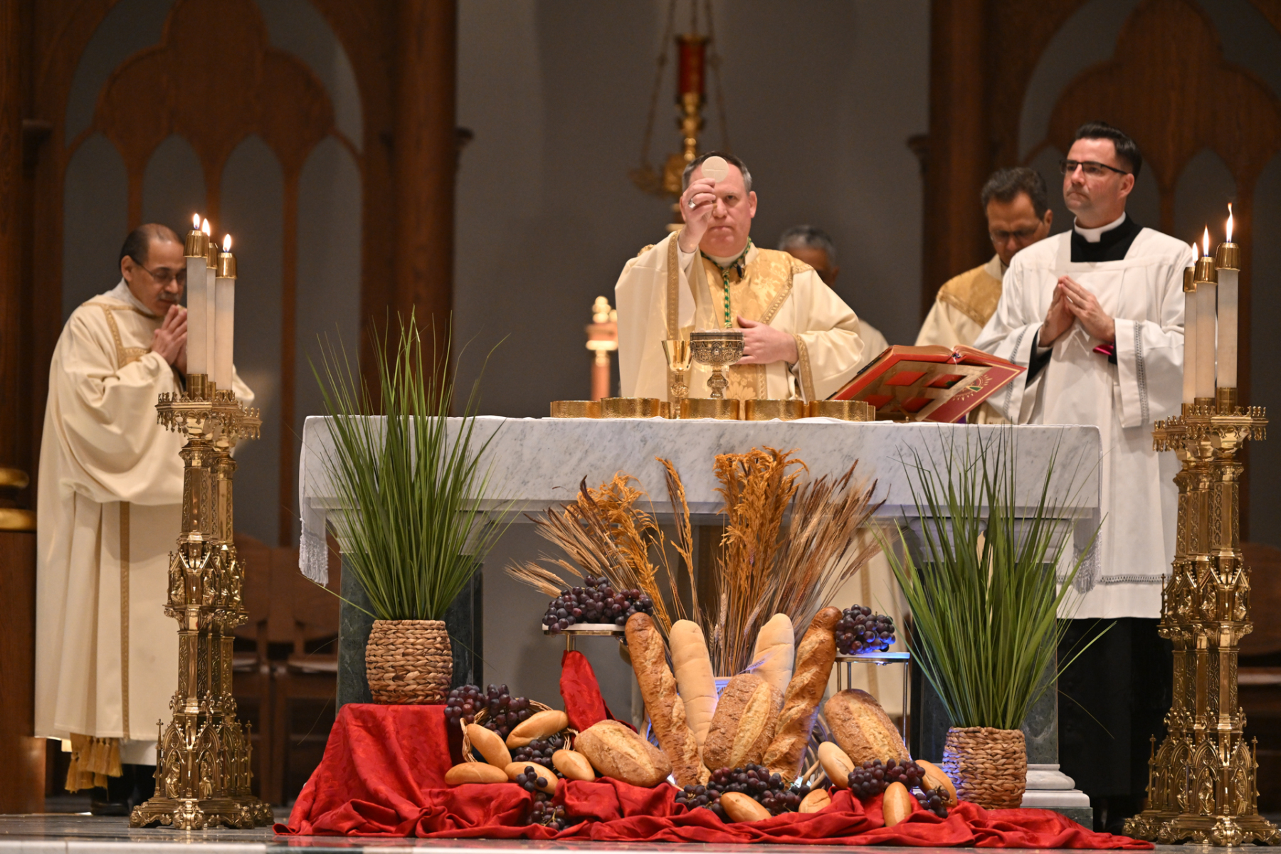 “Tonight, we give thanks for priests who serve and bring us Jesus — his body, blood, soul, and divinity — at each Mass. Jesus comes to us at each Mass and says, ‘If you eat my flesh and drink my blood, you shall have eternal life,’” Bishop Sweeney said in his homily in English and Spanish. He called the Eucharist a “powerful gift” and a “miracle.” The bishop then urged the faithful to be “pilgrims of hope, mercy, love, and healing. We can do that if we learn from Jesus at Mass: the school of love.”