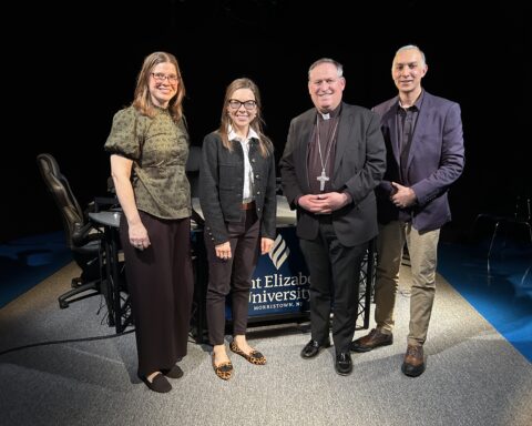 Msgr. Geno Sylva, the cathedral’s rector and diocesan vicar for special projects, concelebrated the Mass with Bishop Sweeney. Father Starli J. Castanos, a St. John’s parochial vicar, was the liturgy’s master of ceremonies. The Mass was followed by an outdoor procession with the Blessed Sacrament to the gym, where adoration was held until midnight.