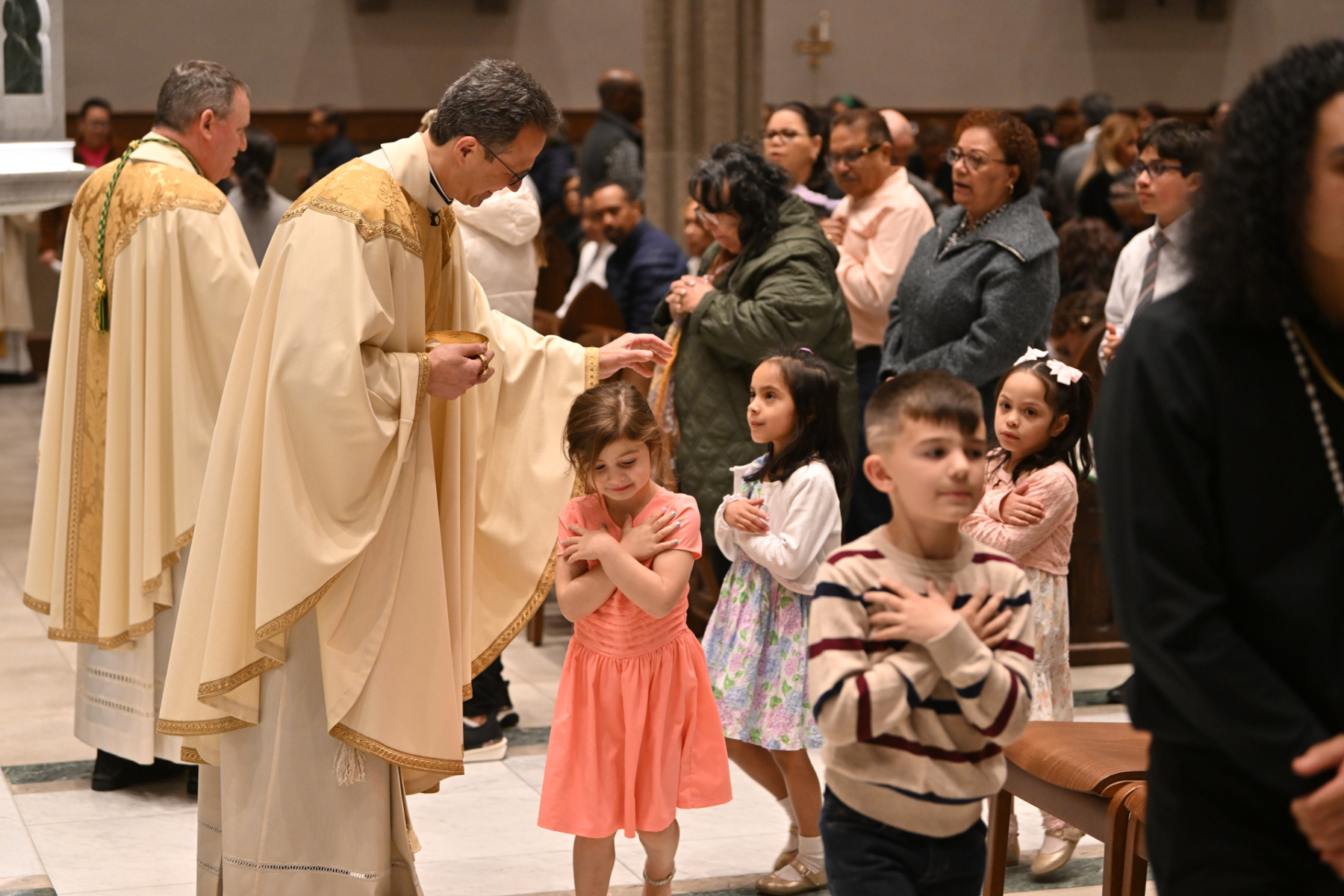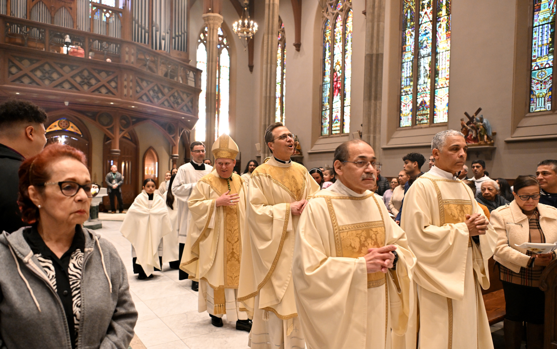 “Tonight, we give thanks for priests who serve and bring us Jesus — his body, blood, soul, and divinity — at each Mass. Jesus comes to us at each Mass and says, ‘If you eat my flesh and drink my blood, you shall have eternal life,’” Bishop Sweeney said in his homily in English and Spanish. He called the Eucharist a “powerful gift” and a “miracle.” The bishop then urged the faithful to be “pilgrims of hope, mercy, love, and healing. We can do that if we learn from Jesus at Mass: the school of love.”