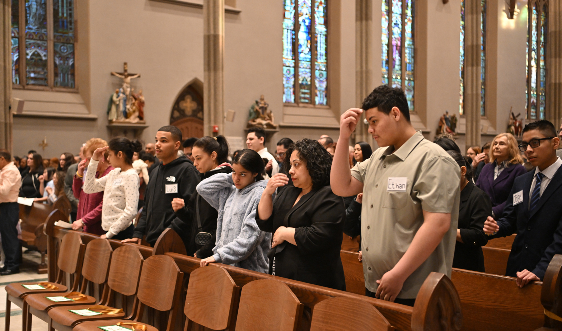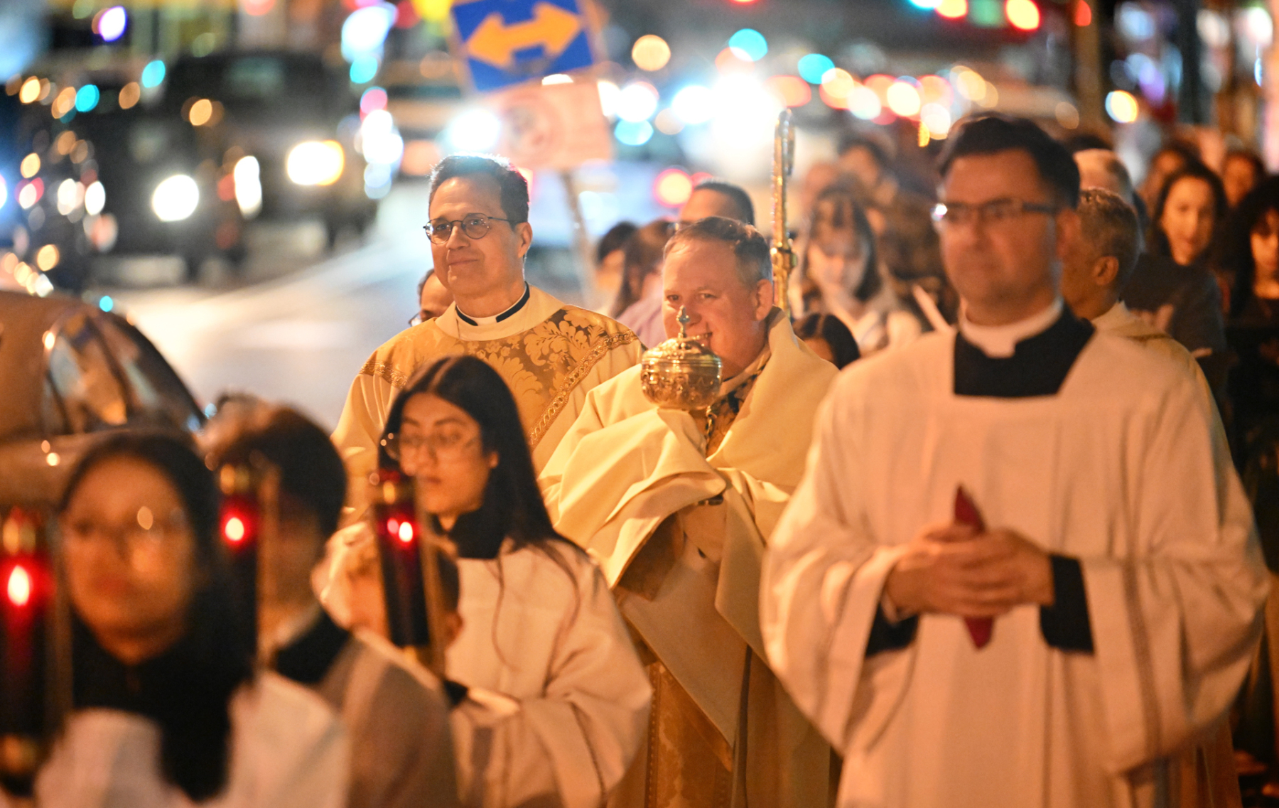 Msgr. Geno Sylva, the cathedral’s rector and diocesan vicar for special projects, concelebrated the Mass with Bishop Sweeney. Father Starli J. Castanos, a St. John’s parochial vicar, was the liturgy’s master of ceremonies. The Mass was followed by an outdoor procession with the Blessed Sacrament to the gym, where adoration was held until midnight.