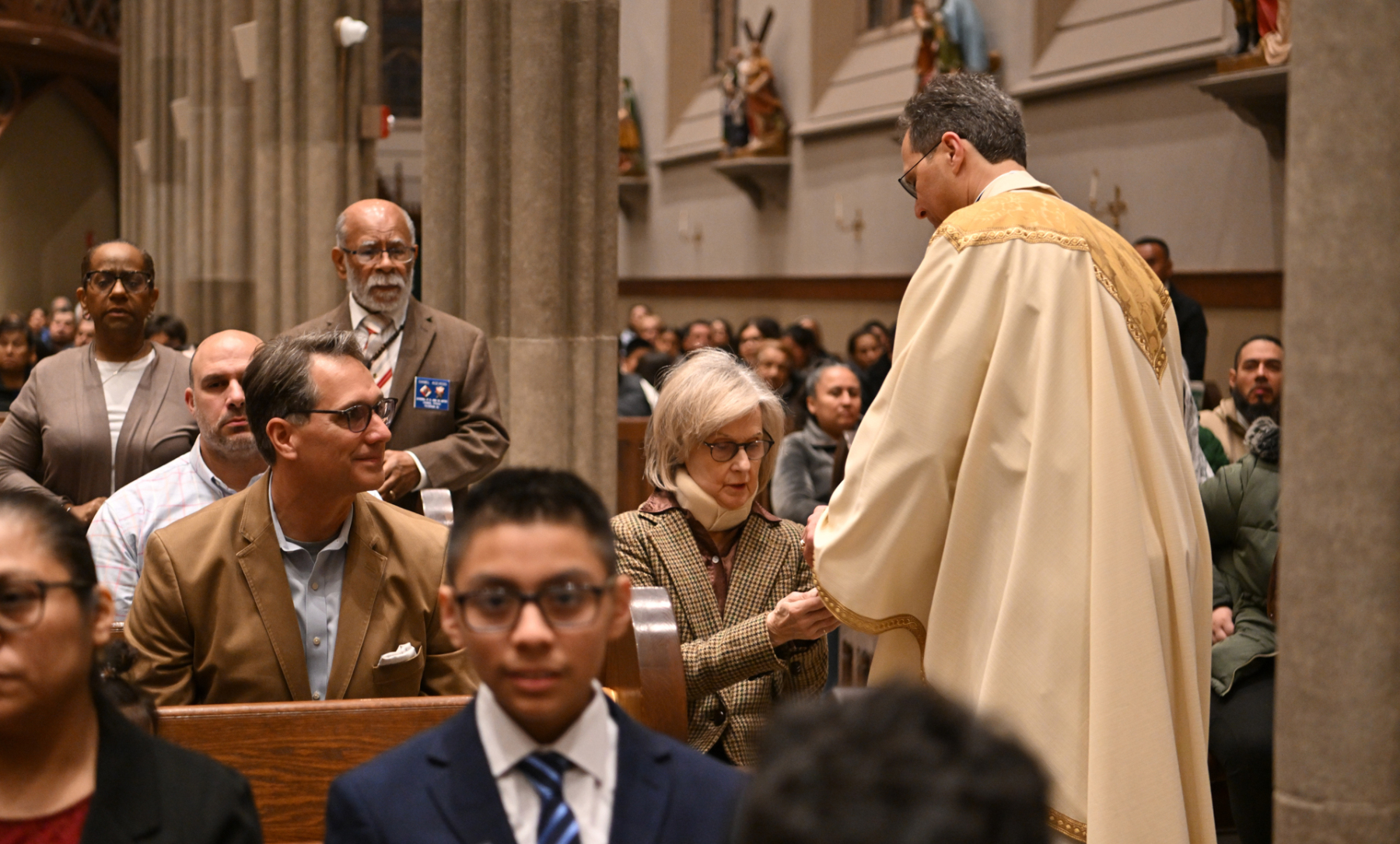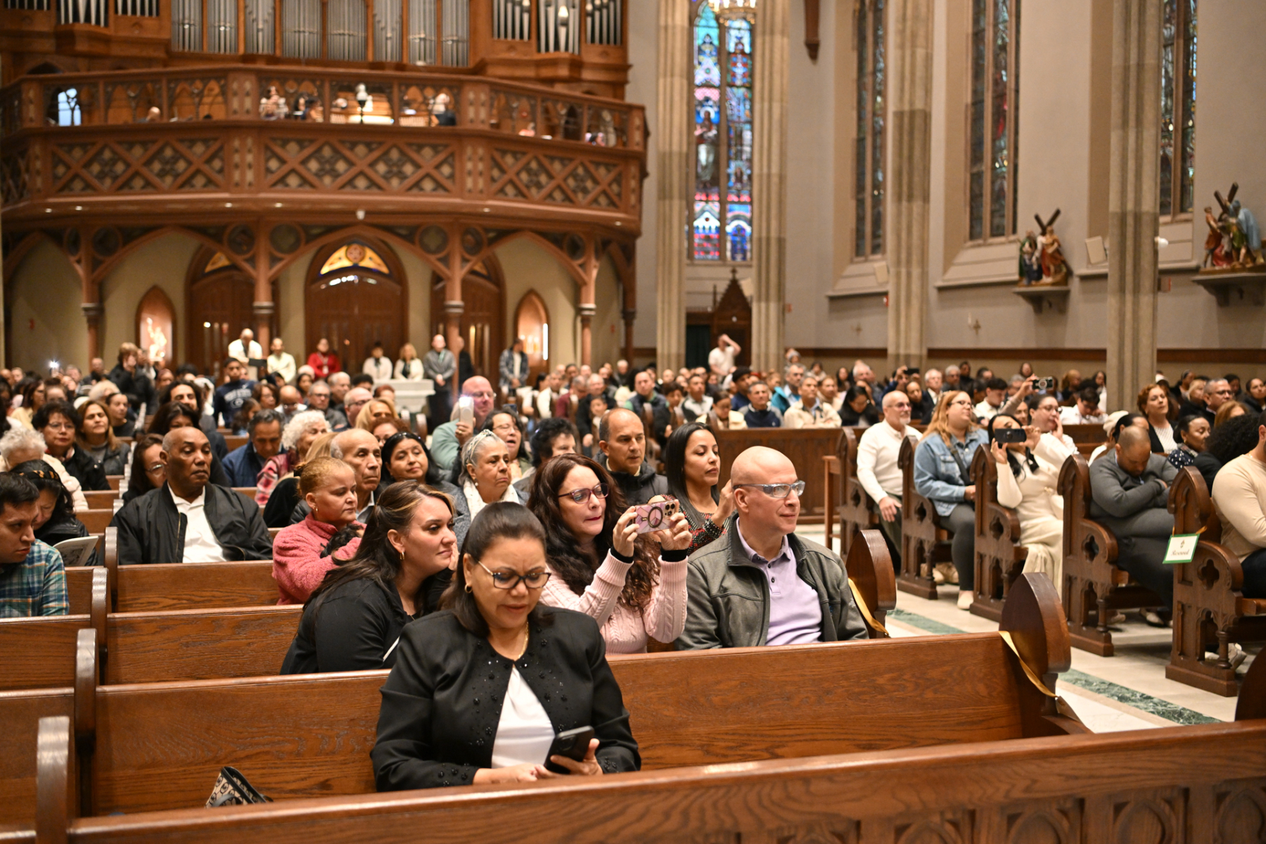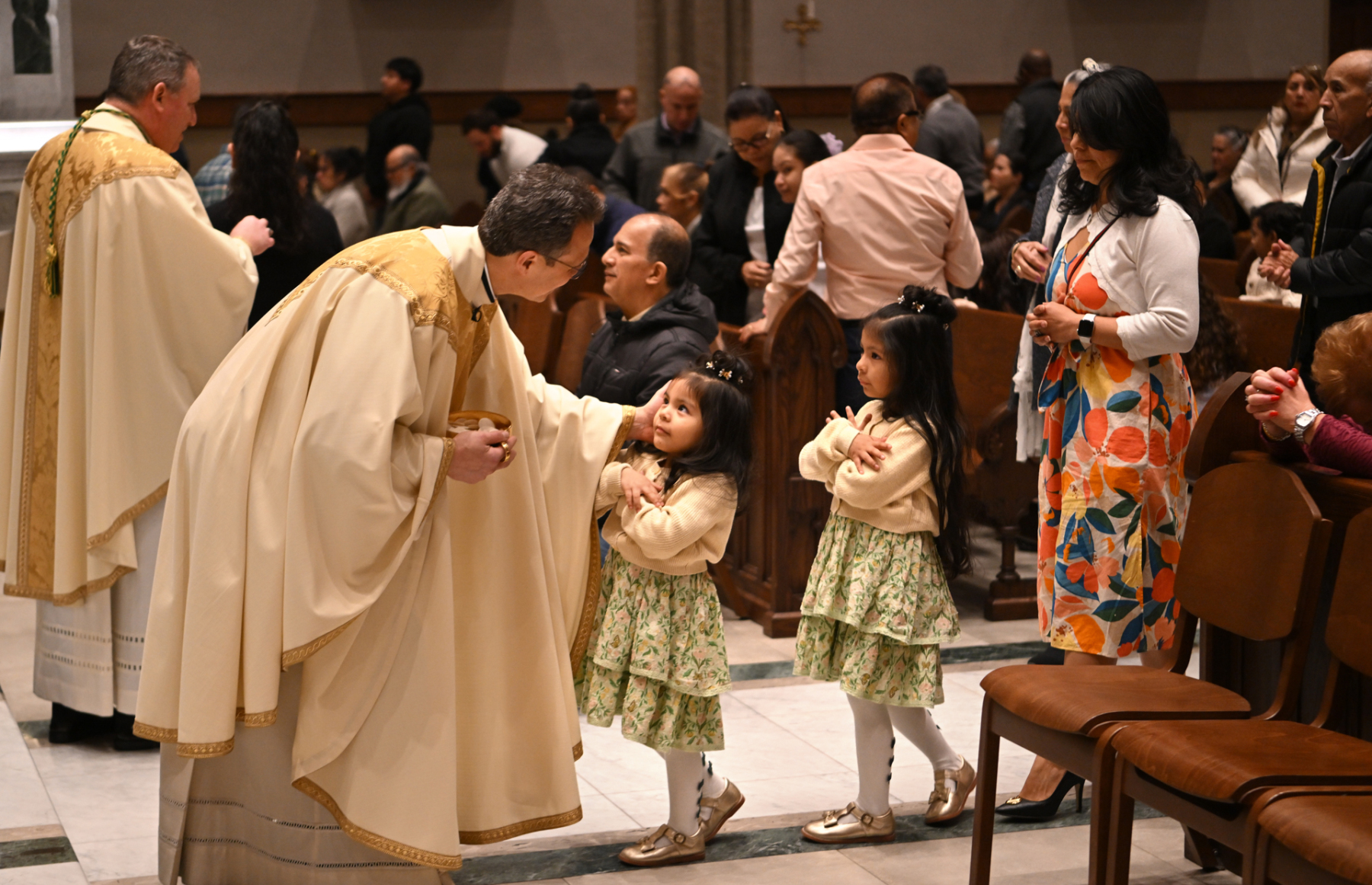 “Tonight, we give thanks for priests who serve and bring us Jesus — his body, blood, soul, and divinity — at each Mass. Jesus comes to us at each Mass and says, ‘If you eat my flesh and drink my blood, you shall have eternal life,’” Bishop Sweeney said in his homily in English and Spanish. He called the Eucharist a “powerful gift” and a “miracle.” The bishop then urged the faithful to be “pilgrims of hope, mercy, love, and healing. We can do that if we learn from Jesus at Mass: the school of love.”