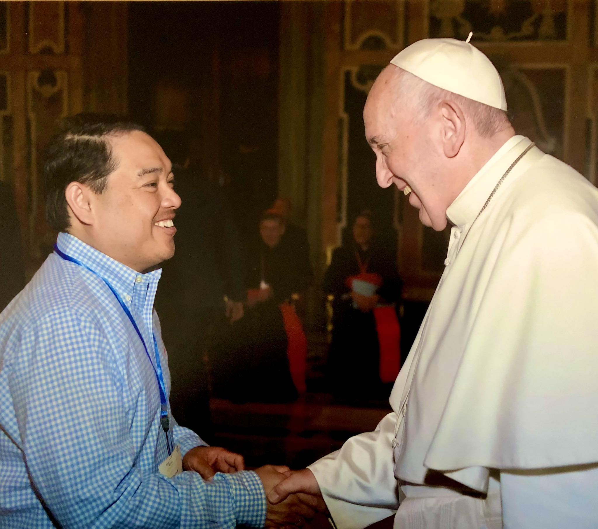 Elmer Maximo’s brief meeting with Pope Francis ran overtime. He was told not to use more than three minutes of the Holy Father’s time for the encounter, which stretched to seven minutes.