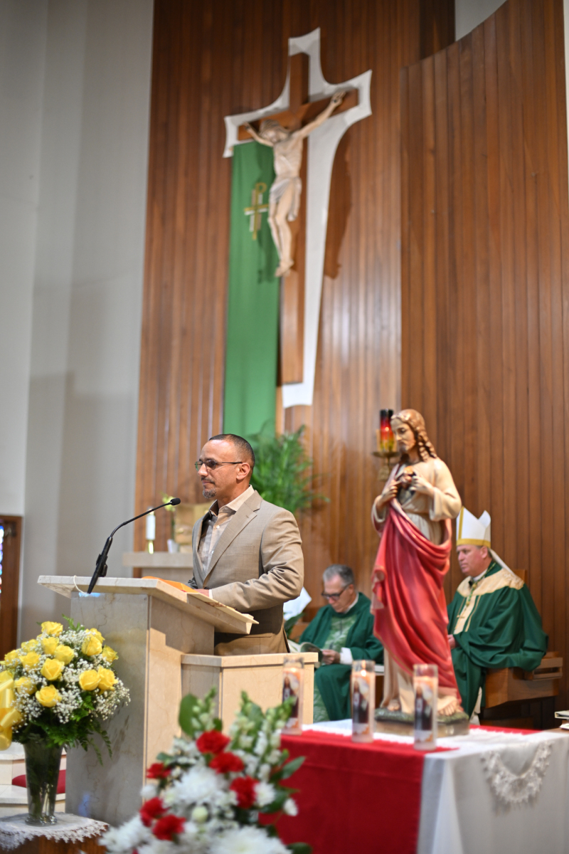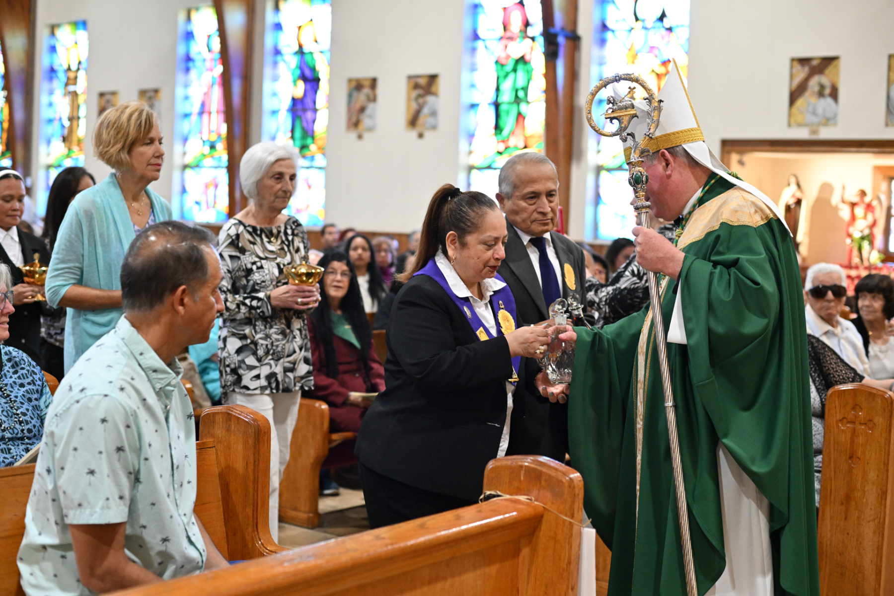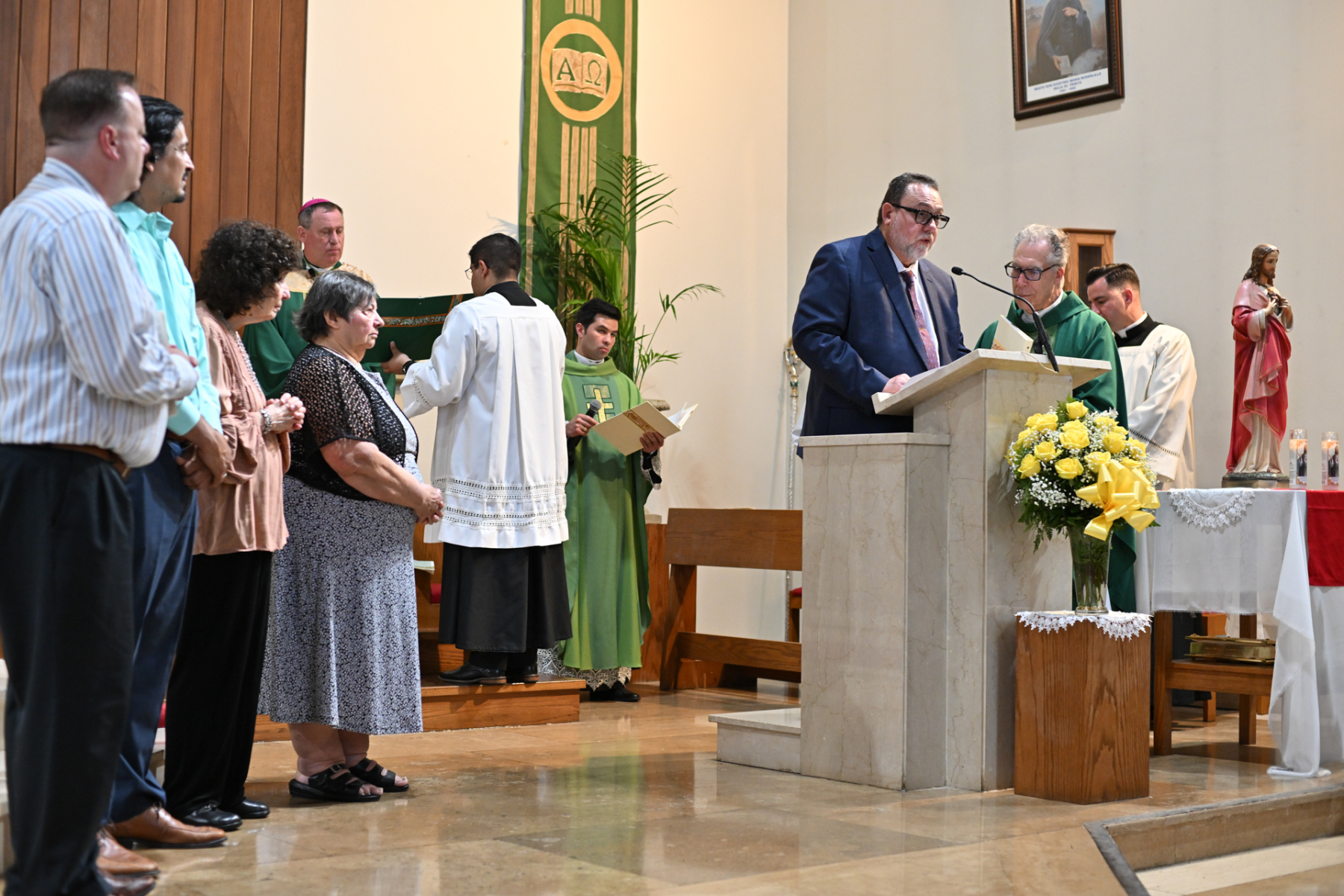 Bishop Kevin J. Sweeney installed Msgr. George Hundt in Paterson and Father Manuel Cuellar as its parochial vicar on June 8, during a Mass in English and Spanish. Parishioners, members of the parish school, family, and friends filled the church. Family and repre-sentatives of religious groups, committees, and staff participated in the liturgy. Msgr. Hundt and Father Cuellar were assigned to St. Gerard’s on July 1, 2023, following the departure of Vocationist priests and sisters, members of the Society of Divine Vocations. The religious order served the ethnically diverse faith community for 15 years prior. Last summer, it handed the administration of St. Gerard’s back to the Paterson Diocese. Msgr. Hundt first served as the parish’s pastor from 1995 to 2002.