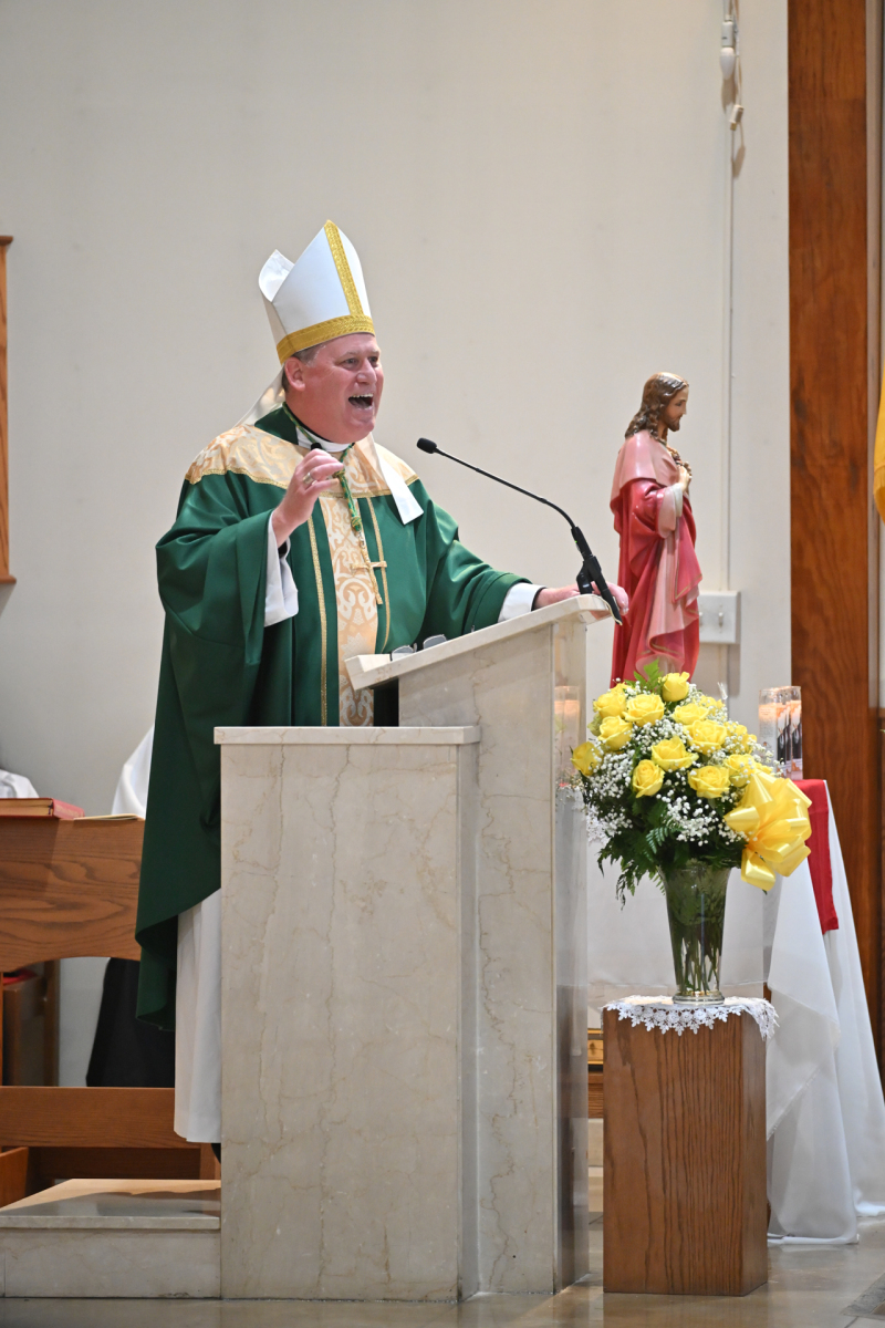 Bishop Kevin J. Sweeney installed Msgr. George Hundt in Paterson and Father Manuel Cuellar as its parochial vicar on June 8, during a Mass in English and Spanish. Parishioners, members of the parish school, family, and friends filled the church. Family and repre-sentatives of religious groups, committees, and staff participated in the liturgy. Msgr. Hundt and Father Cuellar were assigned to St. Gerard’s on July 1, 2023, following the departure of Vocationist priests and sisters, members of the Society of Divine Vocations. The religious order served the ethnically diverse faith community for 15 years prior. Last summer, it handed the administration of St. Gerard’s back to the Paterson Diocese. Msgr. Hundt first served as the parish’s pastor from 1995 to 2002.
