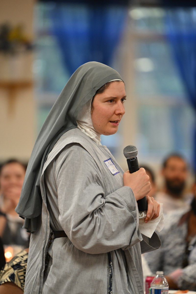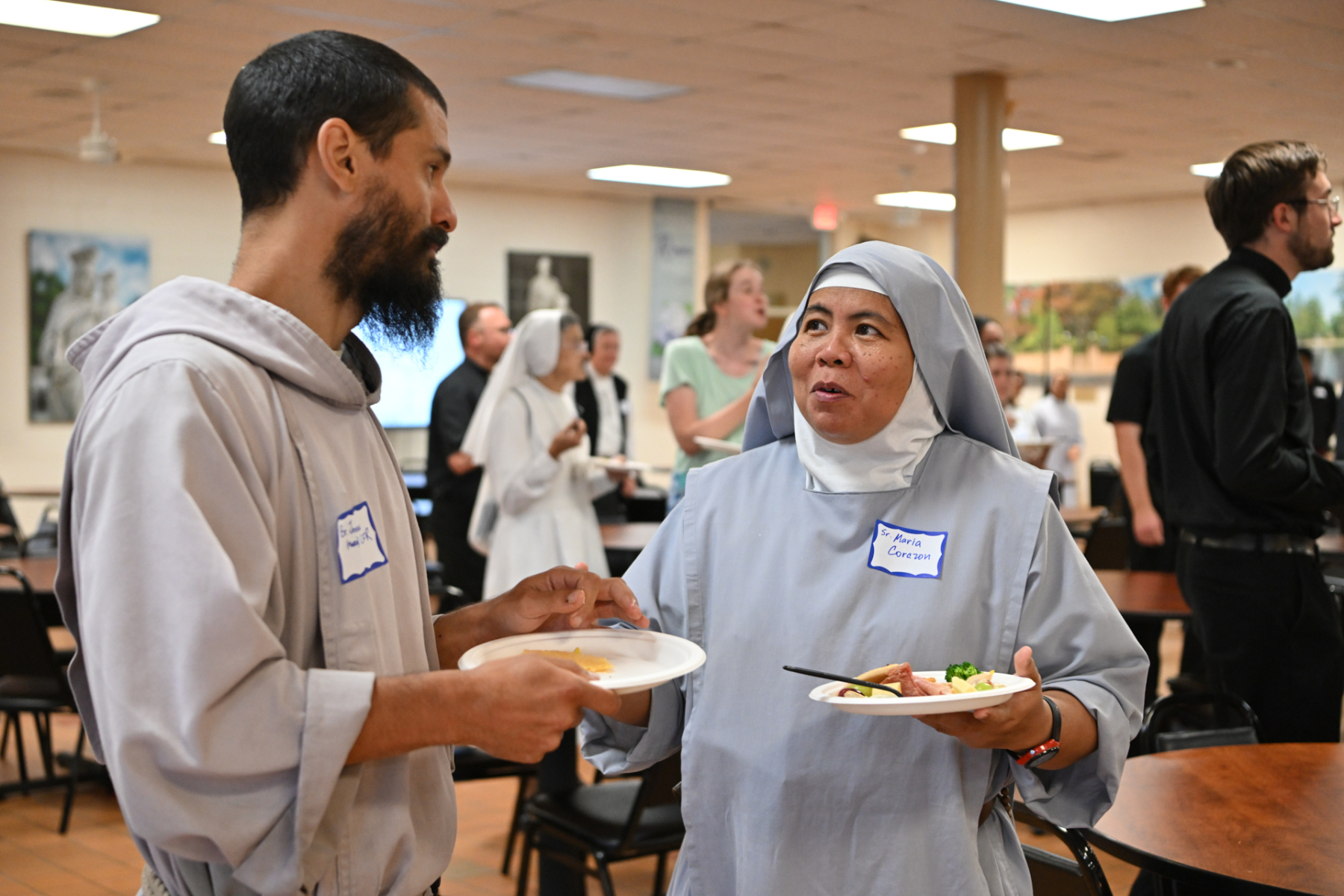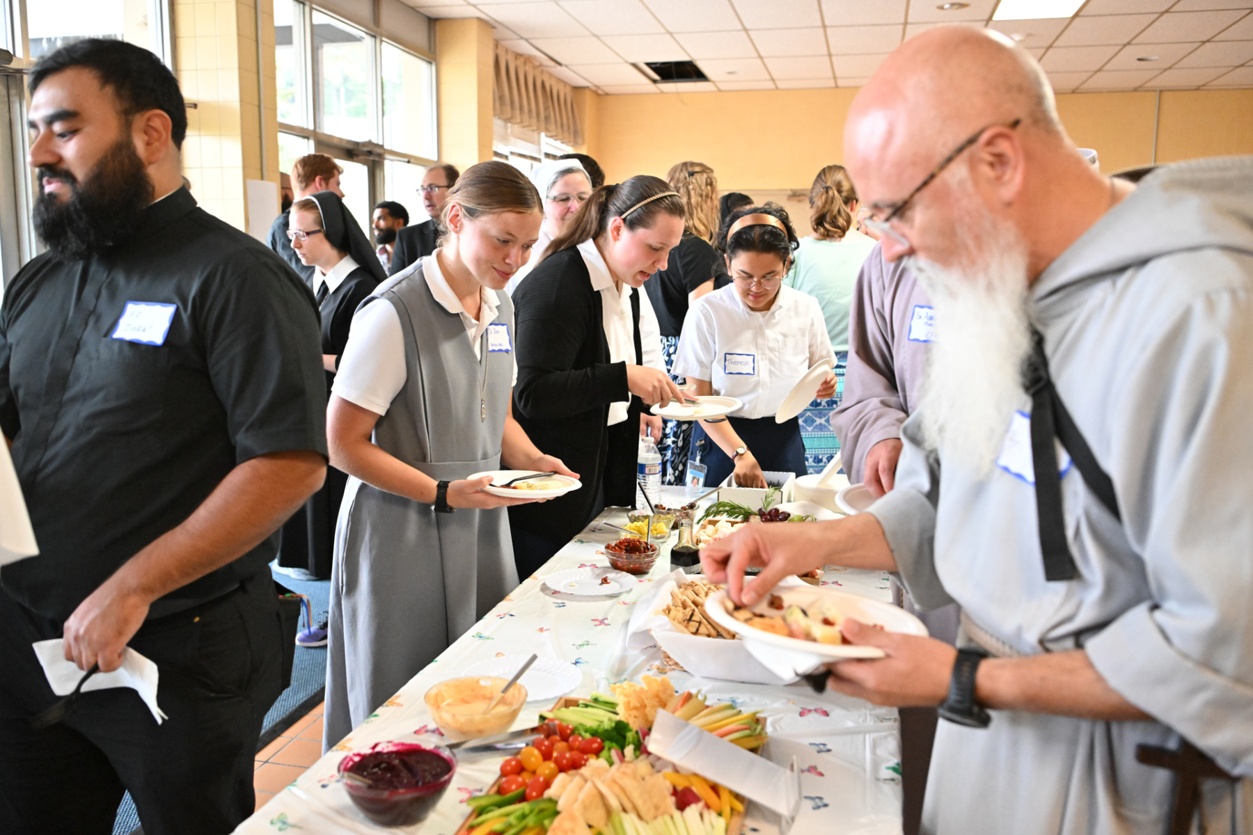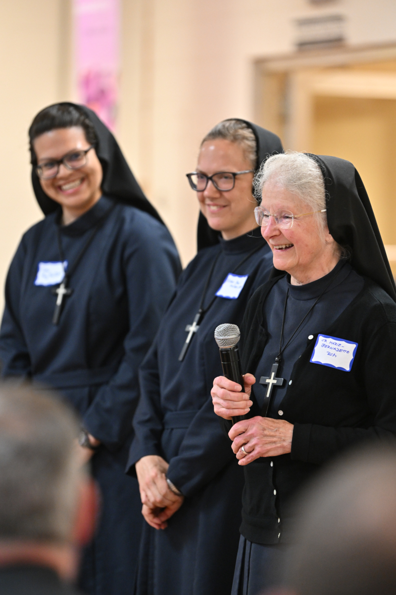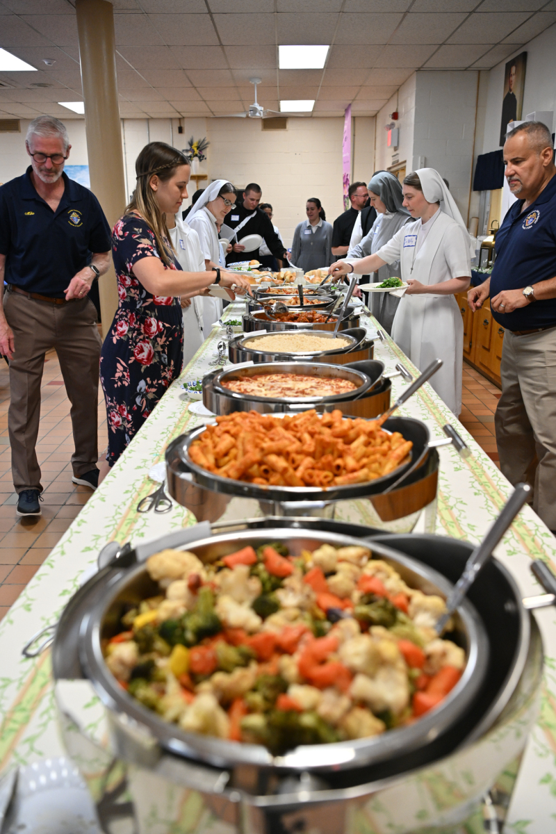Then, participants ate dinner together in the school cafeteria, catered by Personal Touch. Members of various religious communities mingled at the tables to get to know one another. Also, all the new religious men and women serving the diocese had the opportunity to introduce themselves, including a new community, the Religious Sisters of Mercy of Alma.