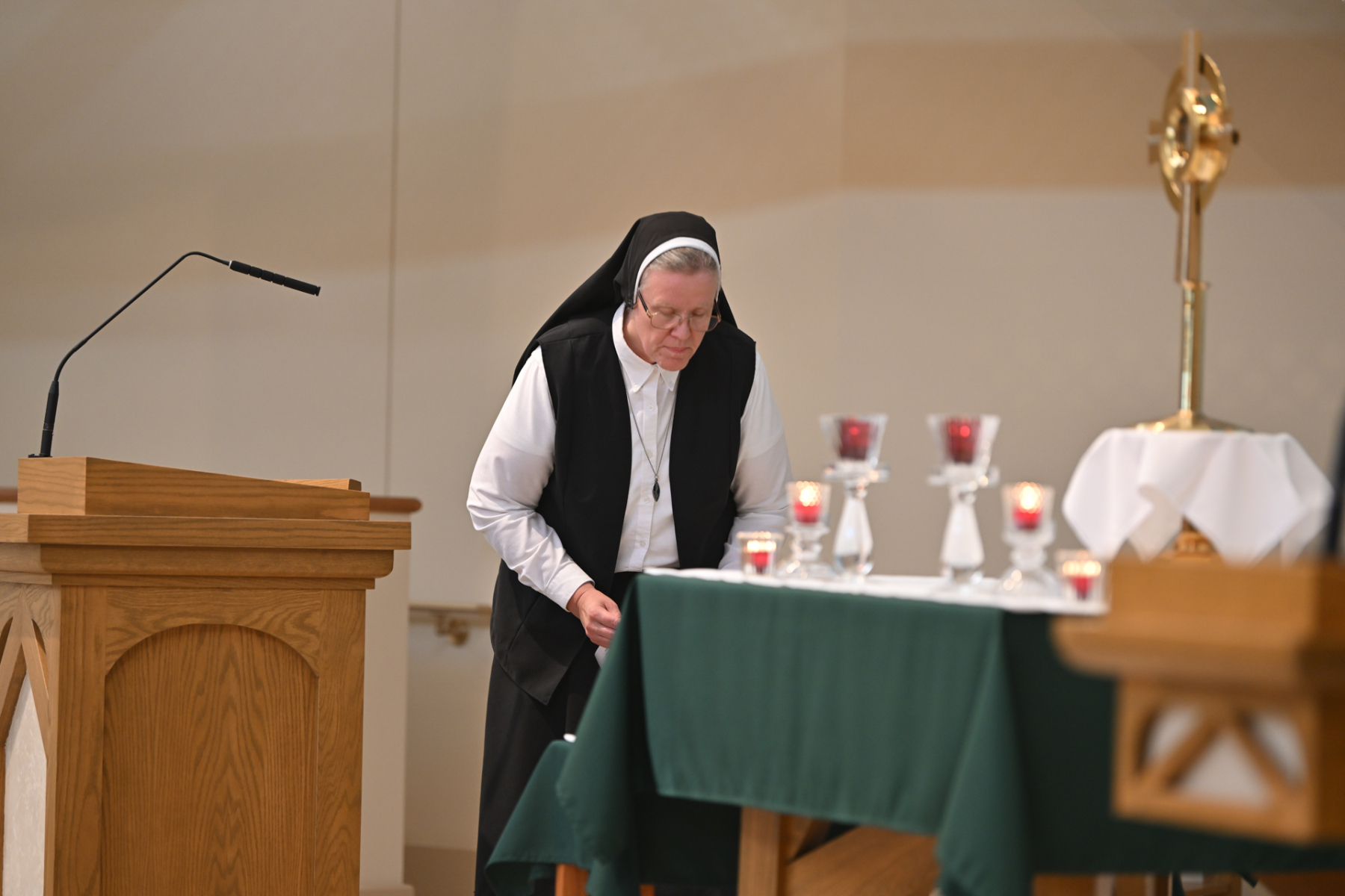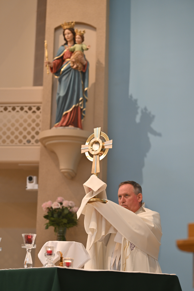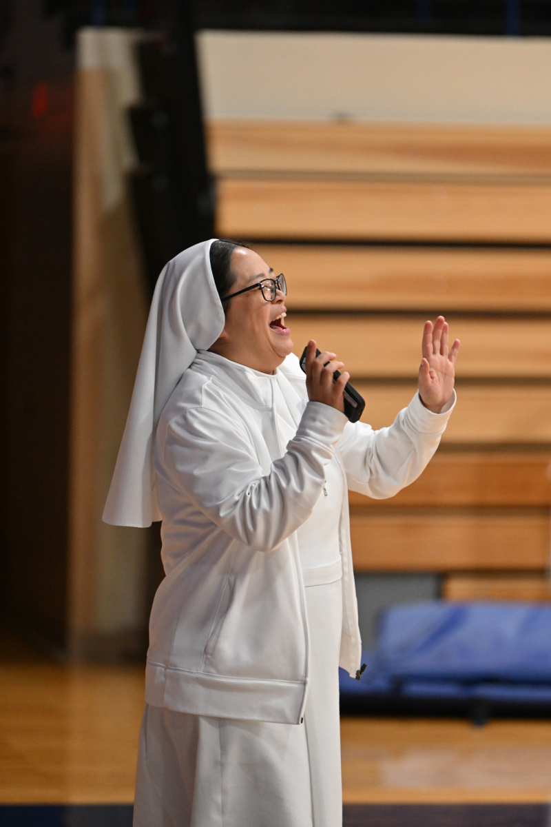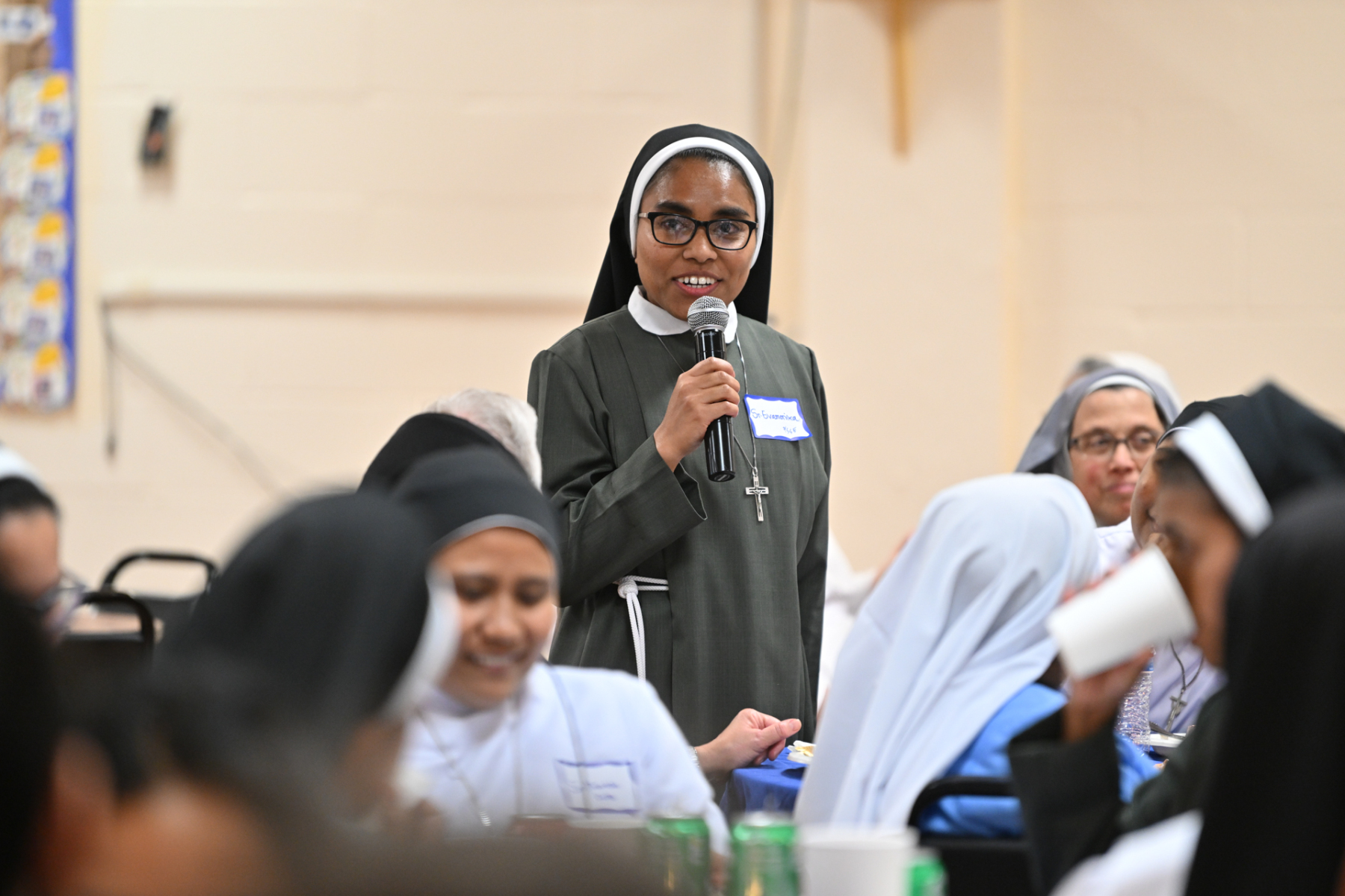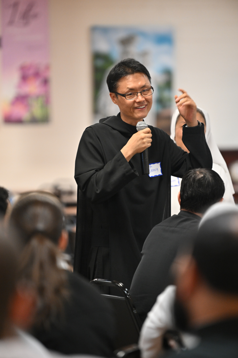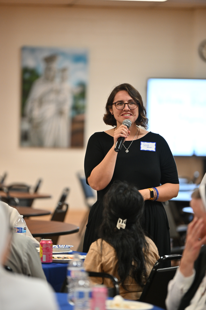 Then, participants ate dinner together in the school cafeteria, catered by Personal Touch. Members of various religious communities mingled at the tables to get to know one another. Also, all the new religious men and women serving the diocese had the opportunity to introduce themselves, including a new community, the Religious Sisters of Mercy of Alma.