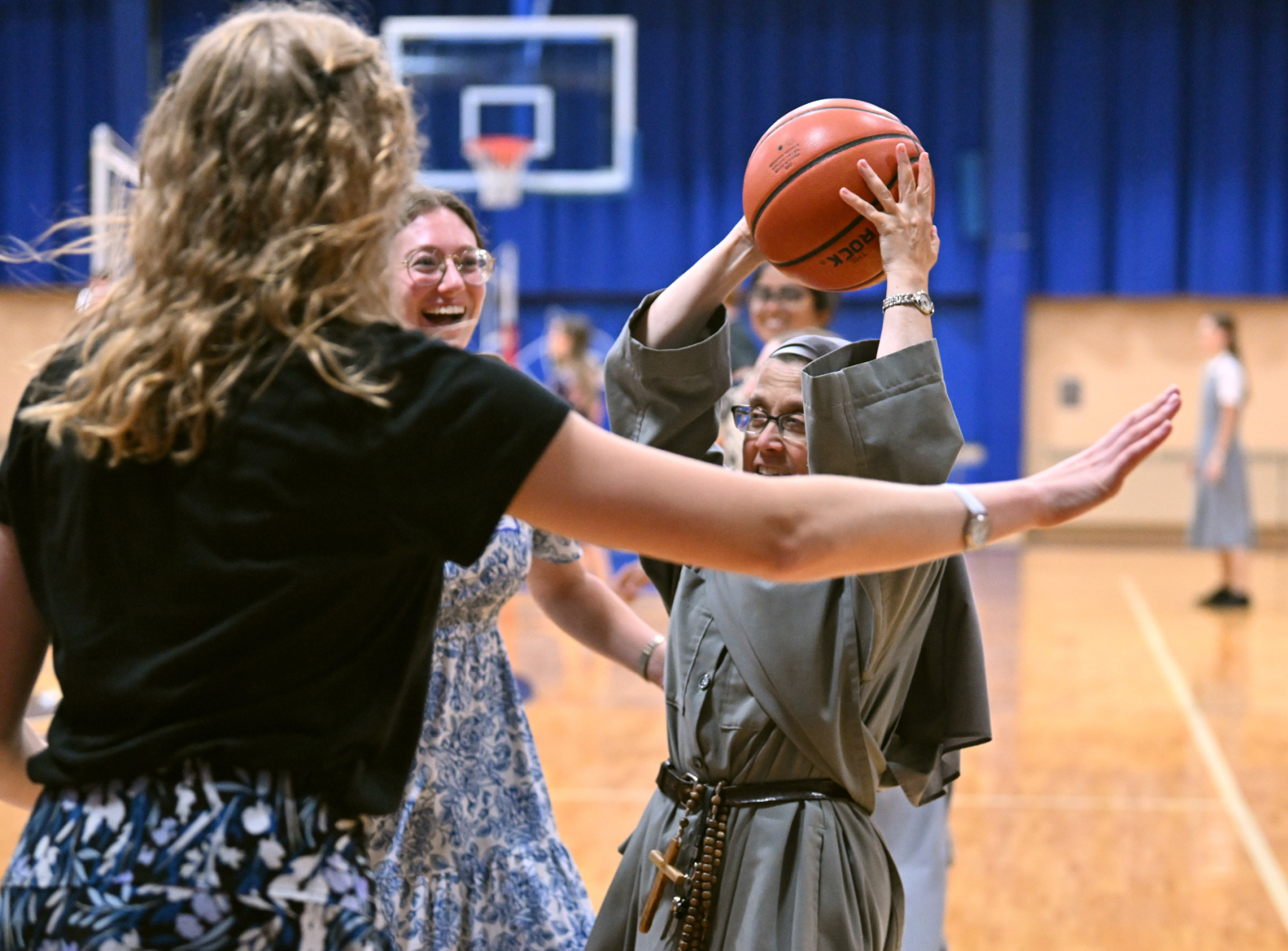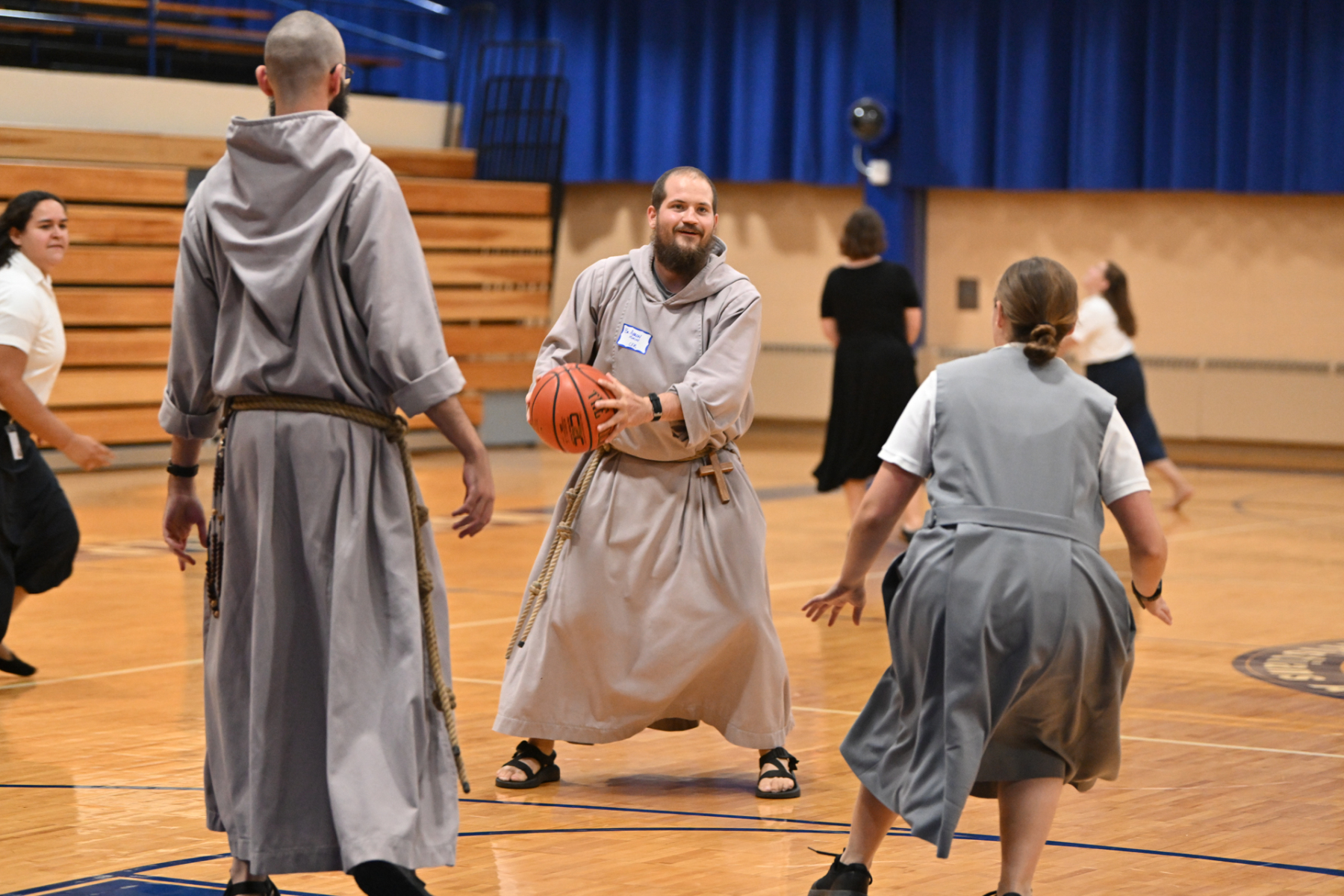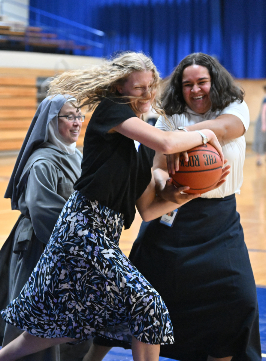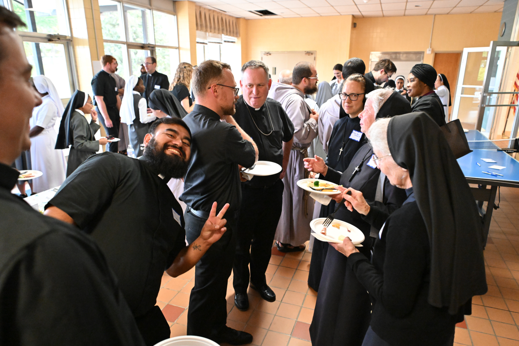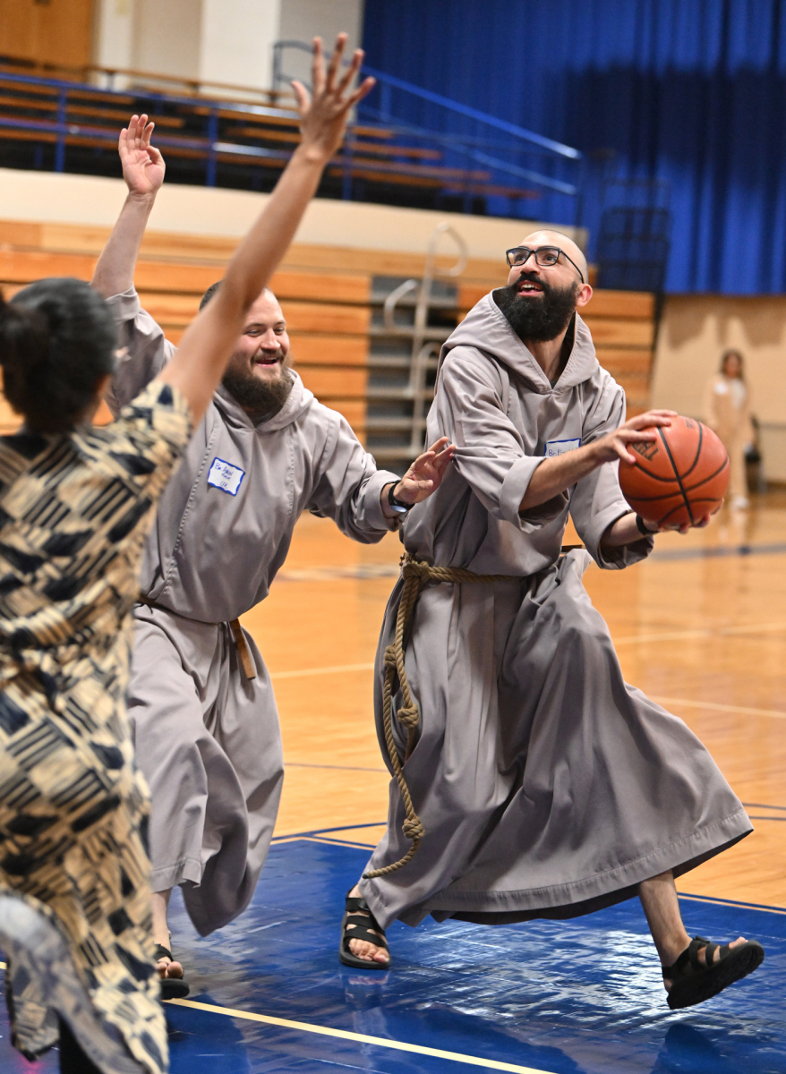 The sense of fraternity continued into the evening as many participating religious headed to the school gym to play competitive volleyball and basketball, or engaged in extended conversation at the tables after the meal.