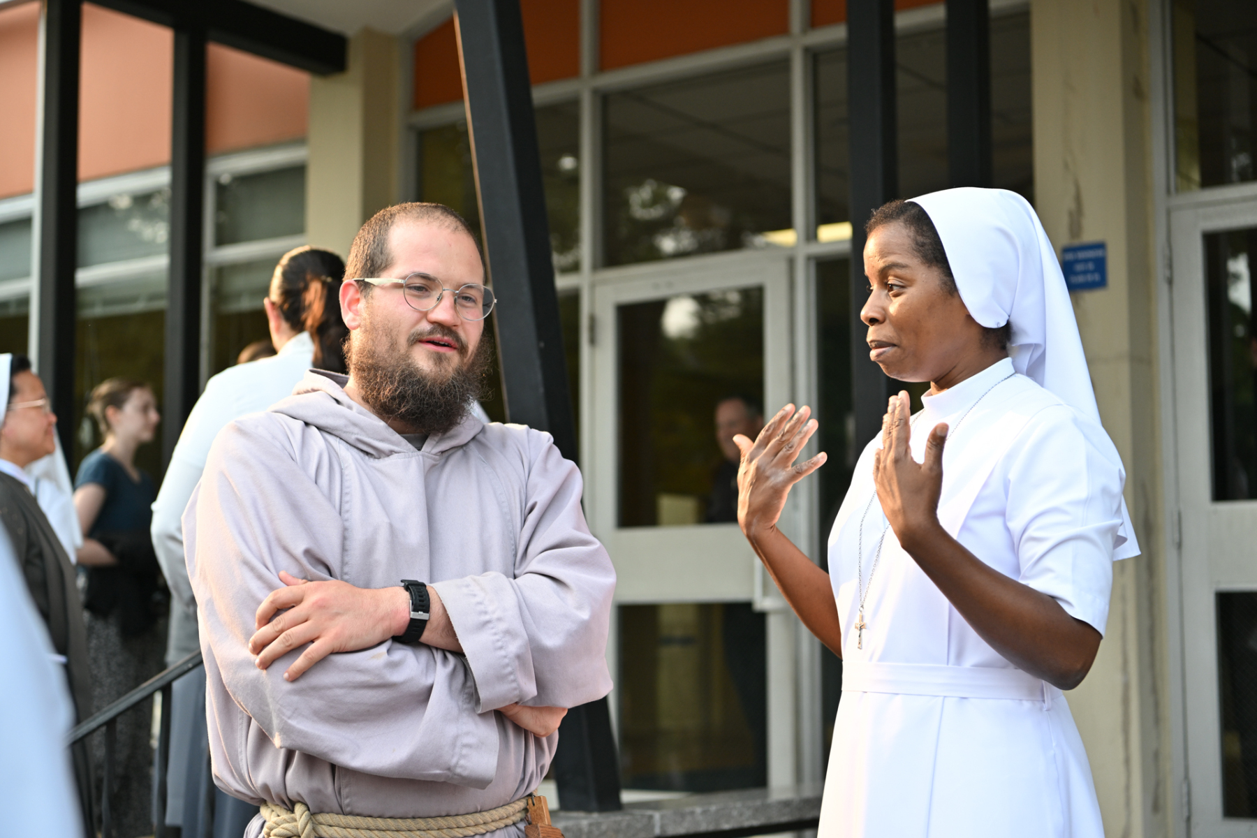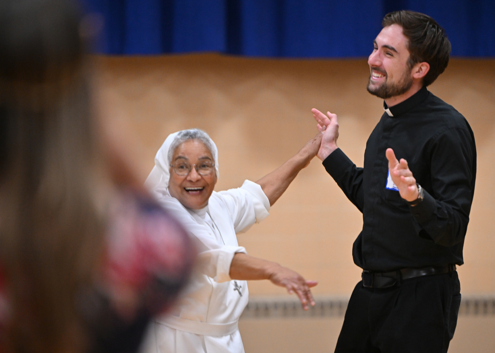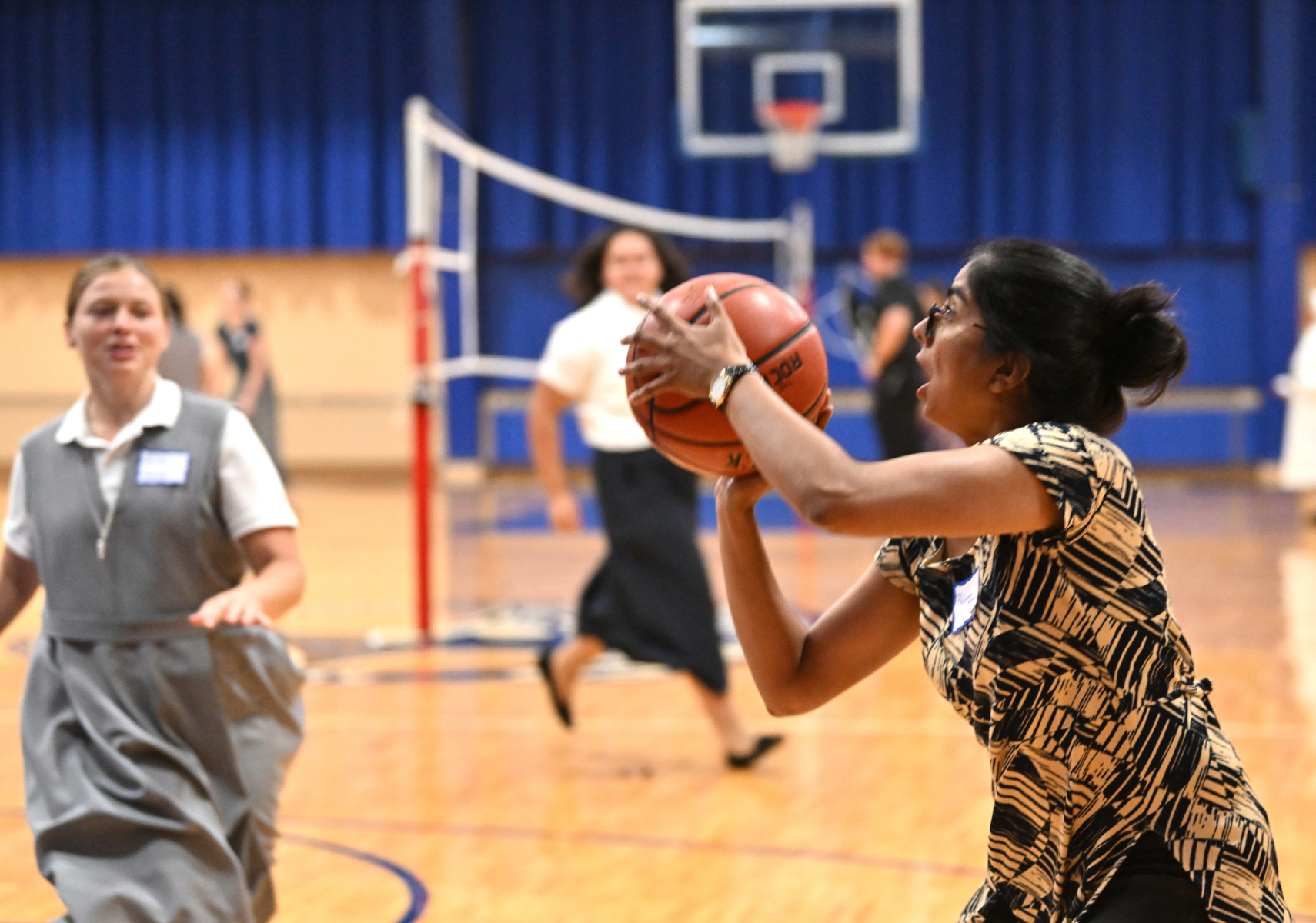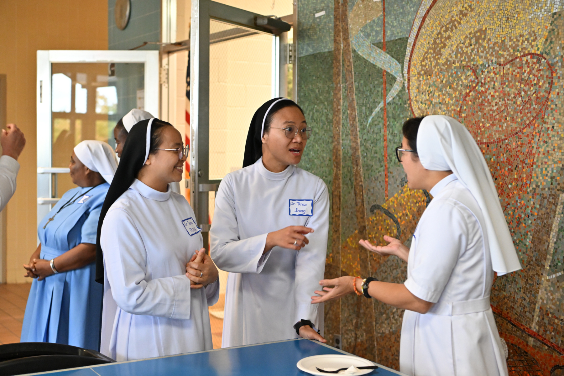 The sense of fraternity continued into the evening as many participating religious headed to the school gym to play competitive volleyball and basketball, or engaged in extended conversation at the tables after the meal.