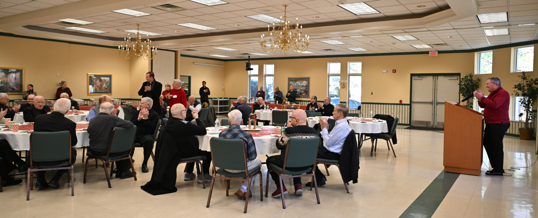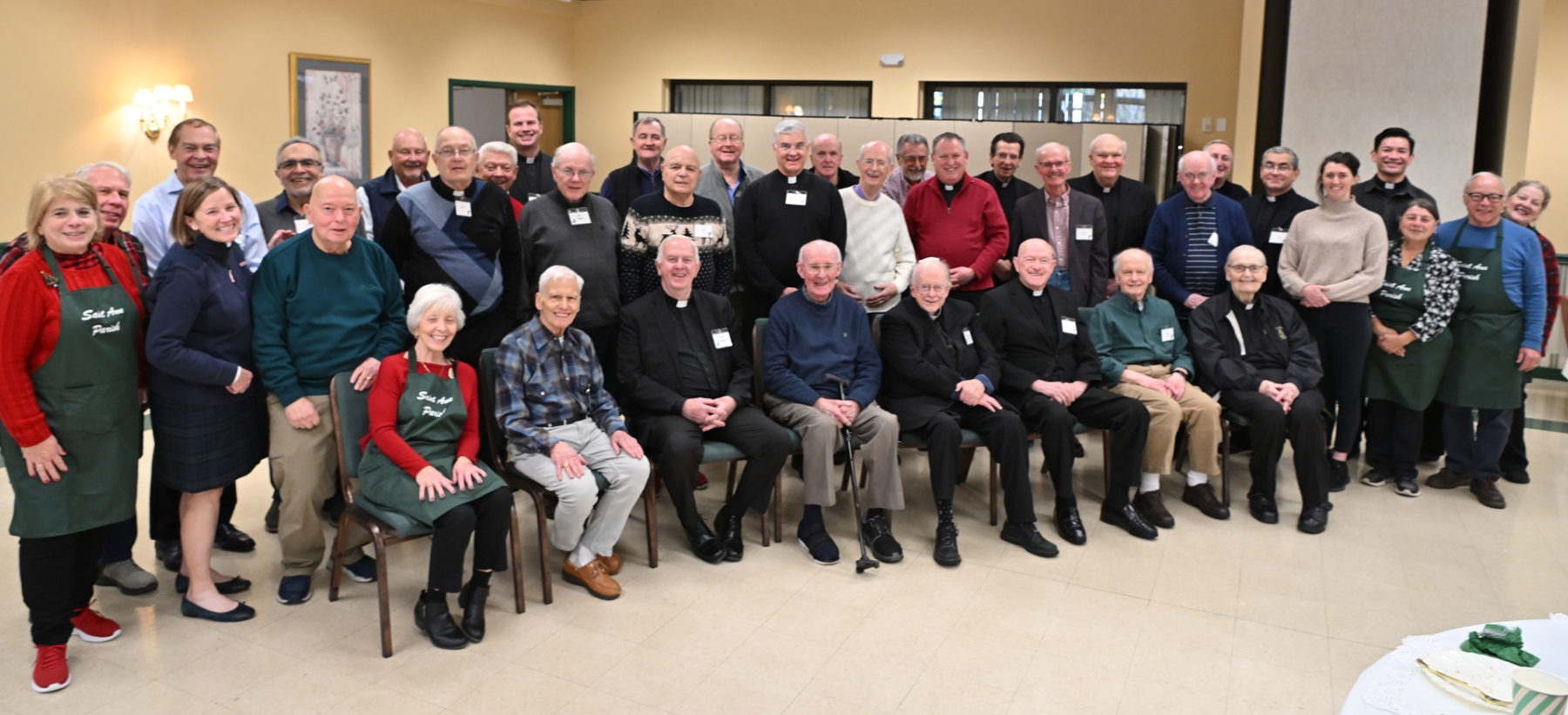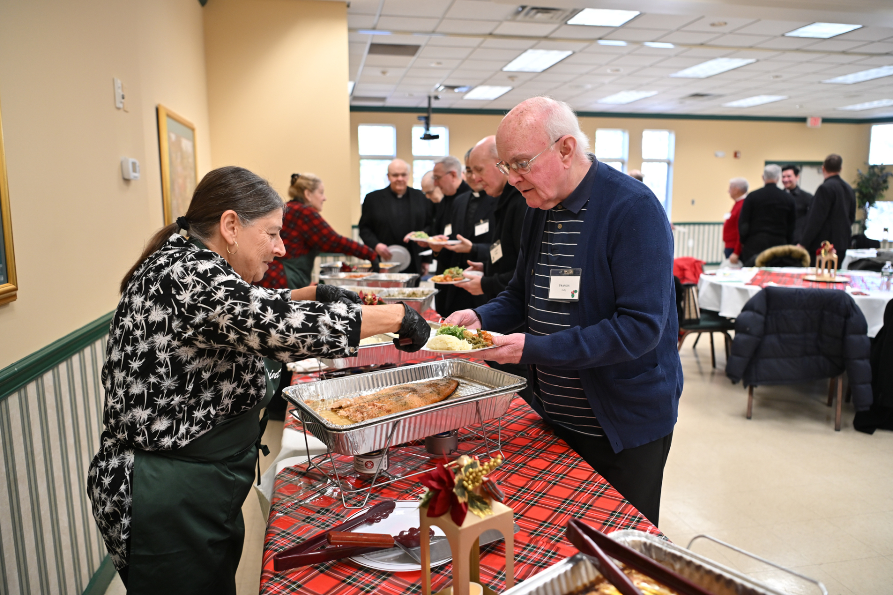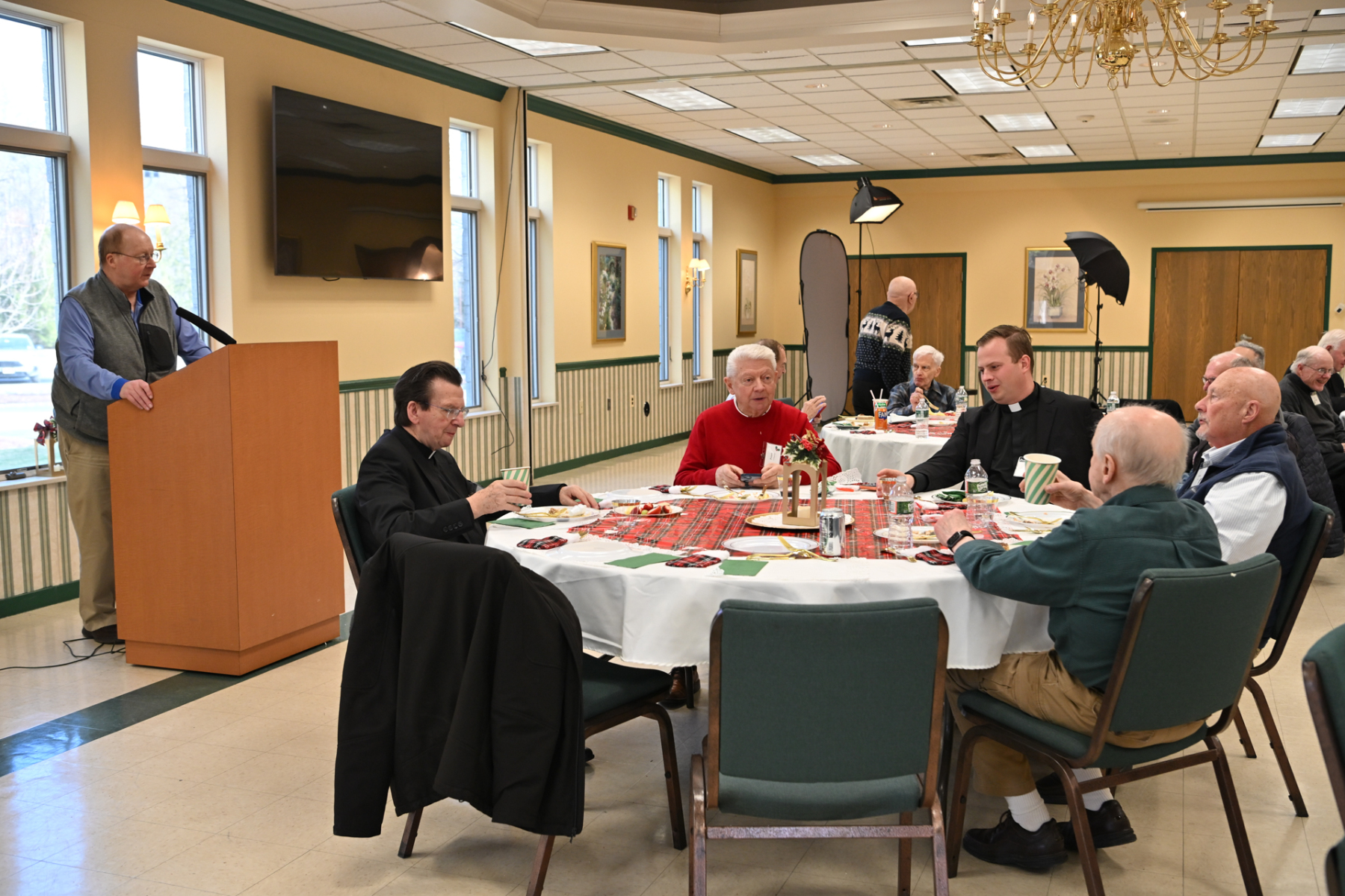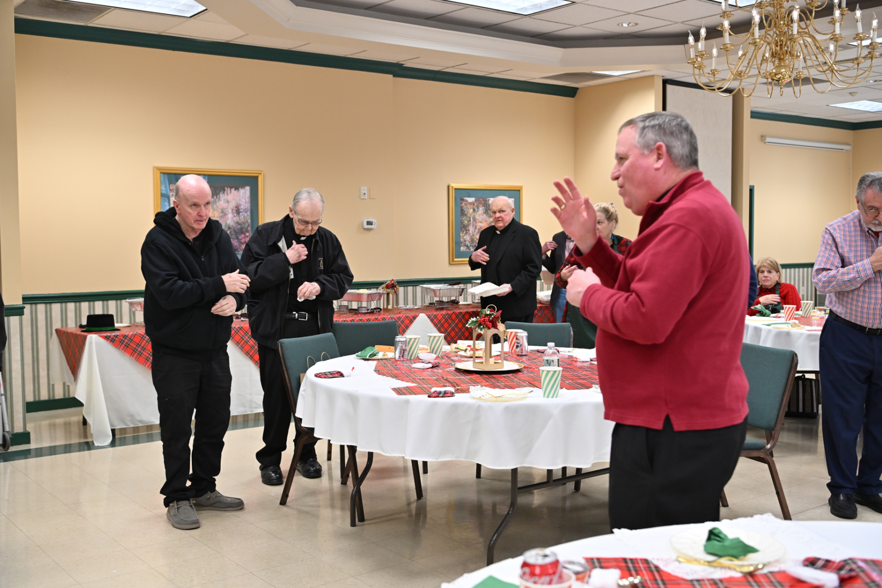 The Ministry for Retired Priests of the Paterson Diocese in New Jersey held a Christmas luncheon for retired priests on Dec. 9 at St. Ann Parish in Parsippany, N.J. Bishop Kevin J. Sweeney, several active priests, and a few lay diocesan staff also participated. Joining the retired priests were several diocesan officials, including Father Michael Parisi, vicar general and pastor of St. Catherine of Siena Parish in Mountain Lakes, N.J.; Msgr. John Hart, director of priest personnel and pastor of Assumption Parish in Morristown, N.J.; Father Nico Quintos, minister to retired priests and St. Ann’s pastor; and Father Richard Bay, a retired priest and minister to senior priests.