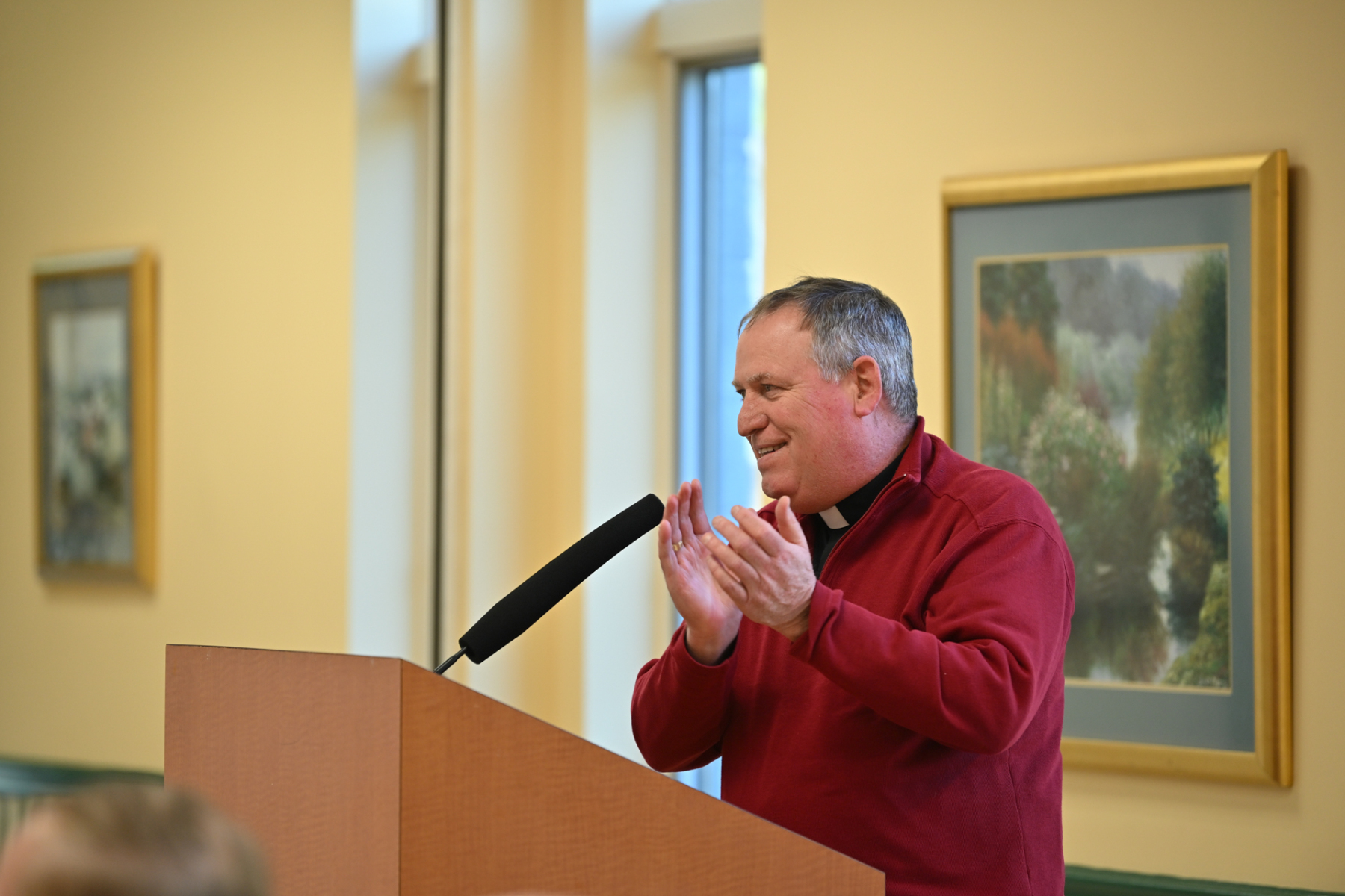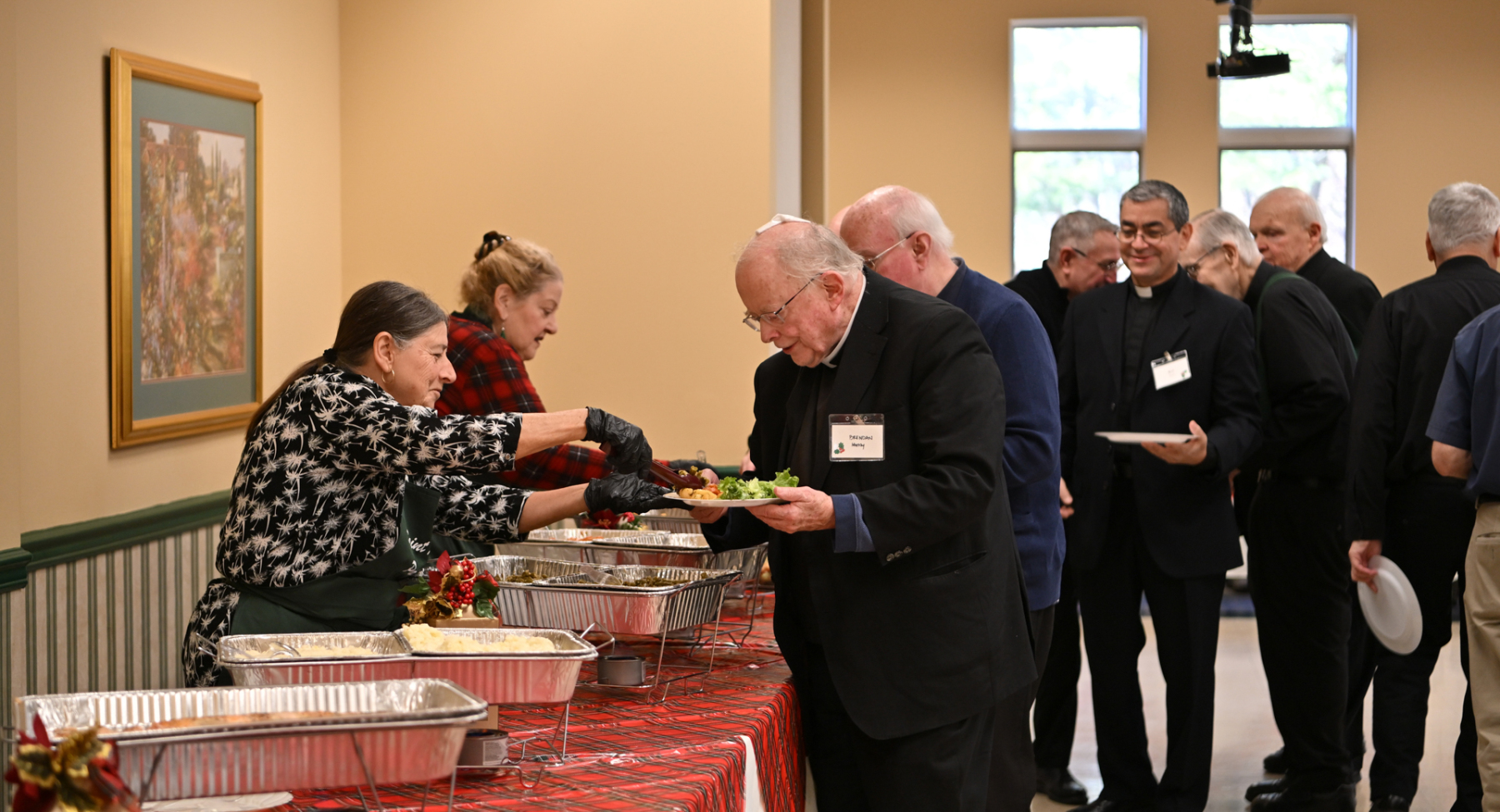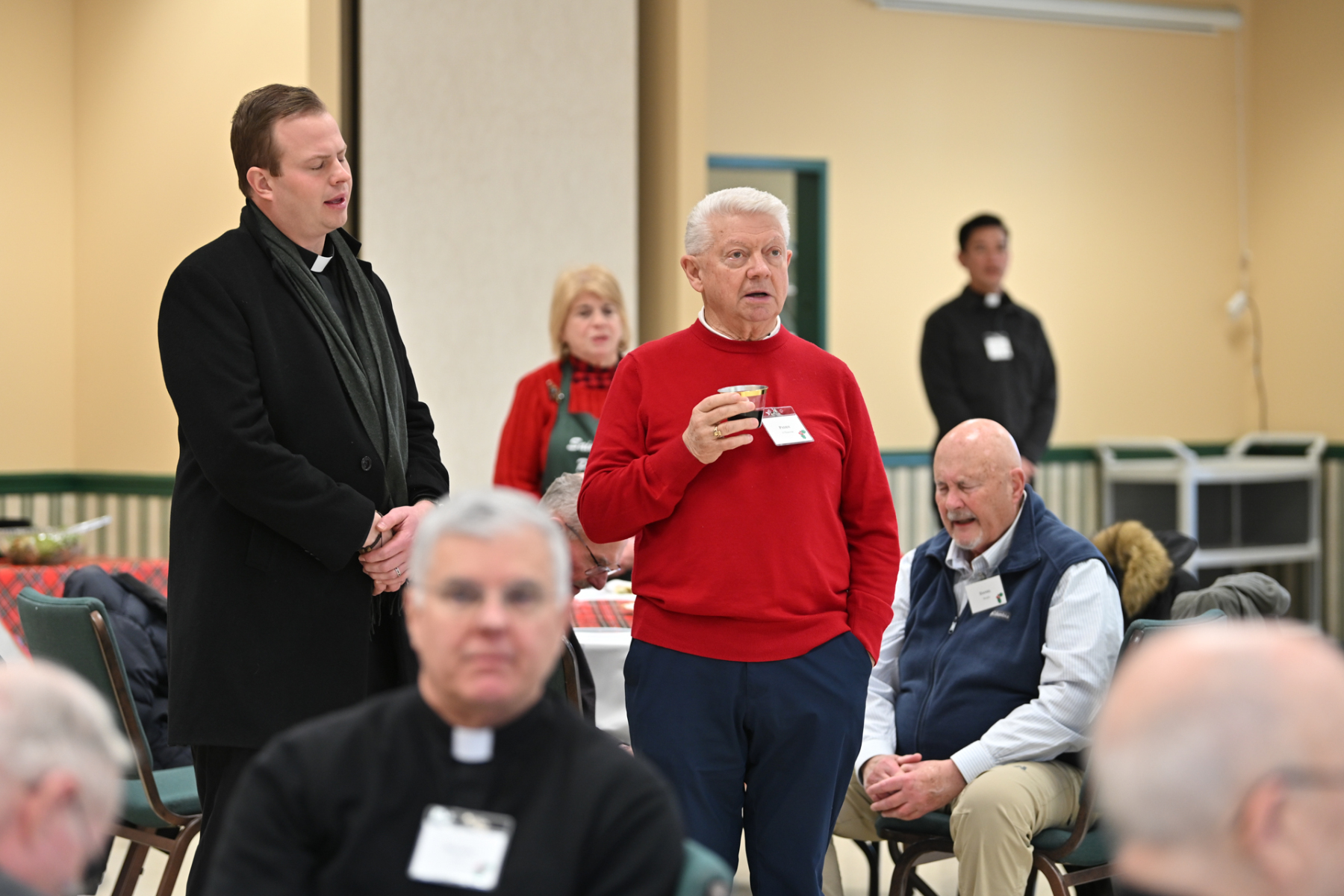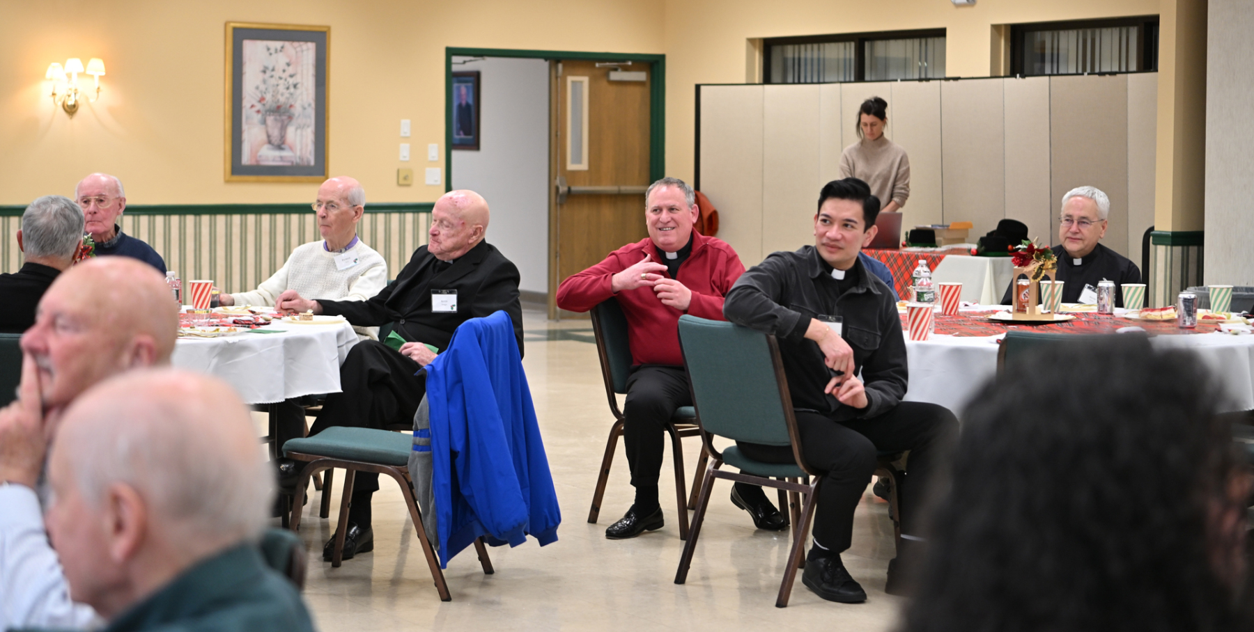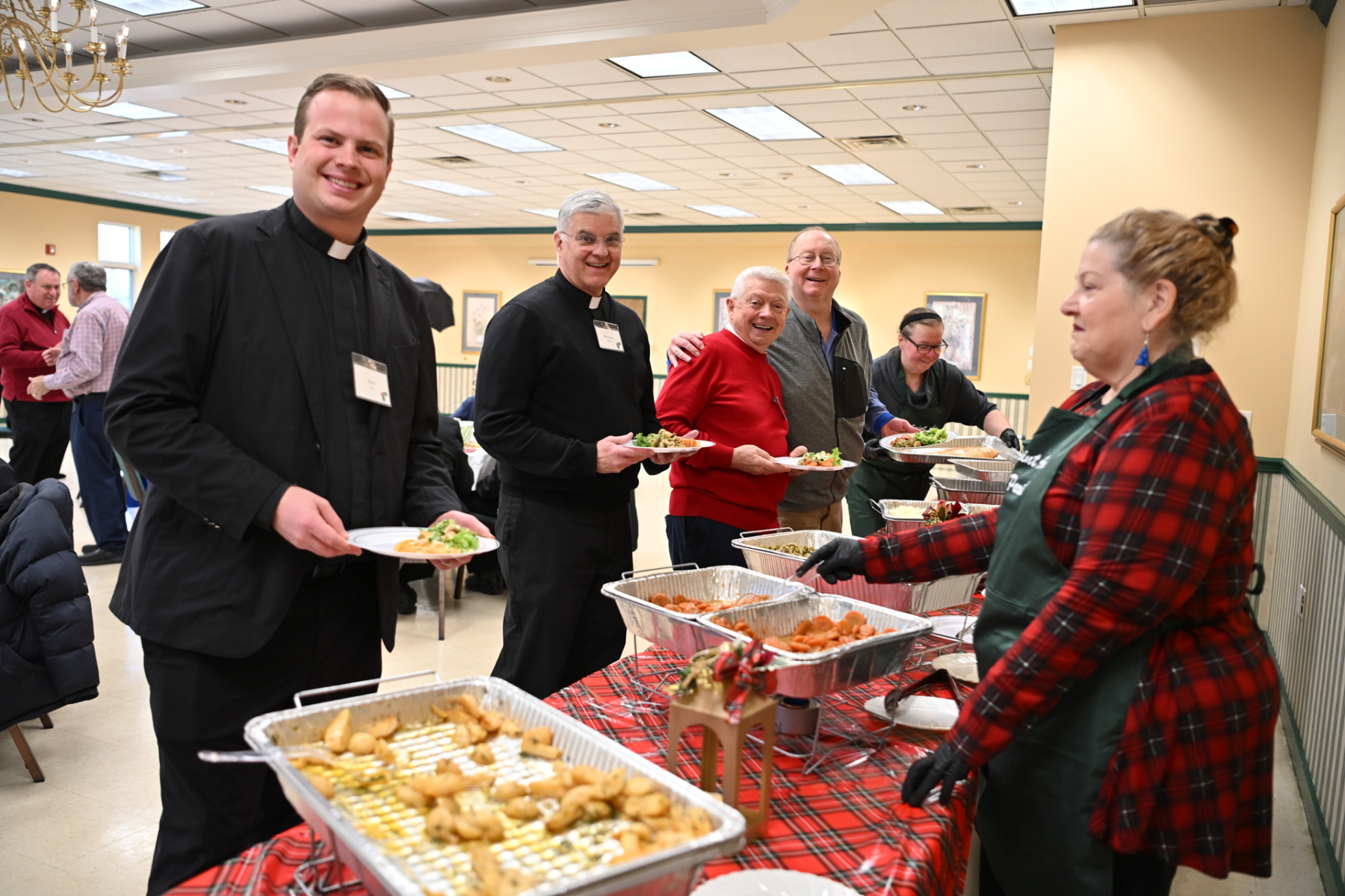 The Ministry for Retired Priests of the Paterson Diocese in New Jersey held a Christmas luncheon for retired priests on Dec. 9 at St. Ann Parish in Parsippany, N.J. Bishop Kevin J. Sweeney, several active priests, and a few lay diocesan staff also participated. Joining the retired priests were several diocesan officials, including Father Michael Parisi, vicar general and pastor of St. Catherine of Siena Parish in Mountain Lakes, N.J.; Msgr. John Hart, director of priest personnel and pastor of Assumption Parish in Morristown, N.J.; Father Nico Quintos, minister to retired priests and St. Ann’s pastor; and Father Richard Bay, a retired priest and minister to senior priests.