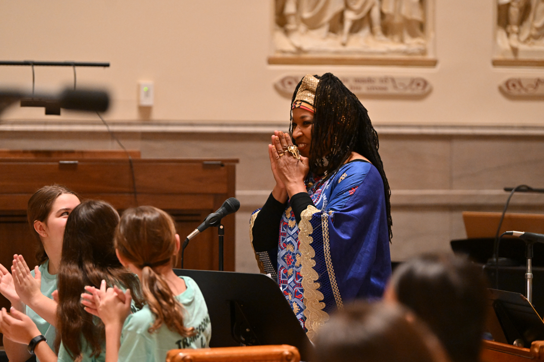 Jansen invited the 350 junior high—and high school-age students from around the Paterson Diocese to examine faith through her reenactment of two New Testament stories: the Samaritan woman and Jesus healing the man born blind. During her presentations, she led the youth in singing faith-filled songs.