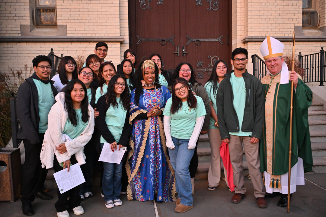 Jansen invited the 350 junior high—and high school-age students from around the Paterson Diocese to examine faith through her reenactment of two New Testament stories: the Samaritan woman and Jesus healing the man born blind. During her presentations, she led the youth in singing faith-filled songs.