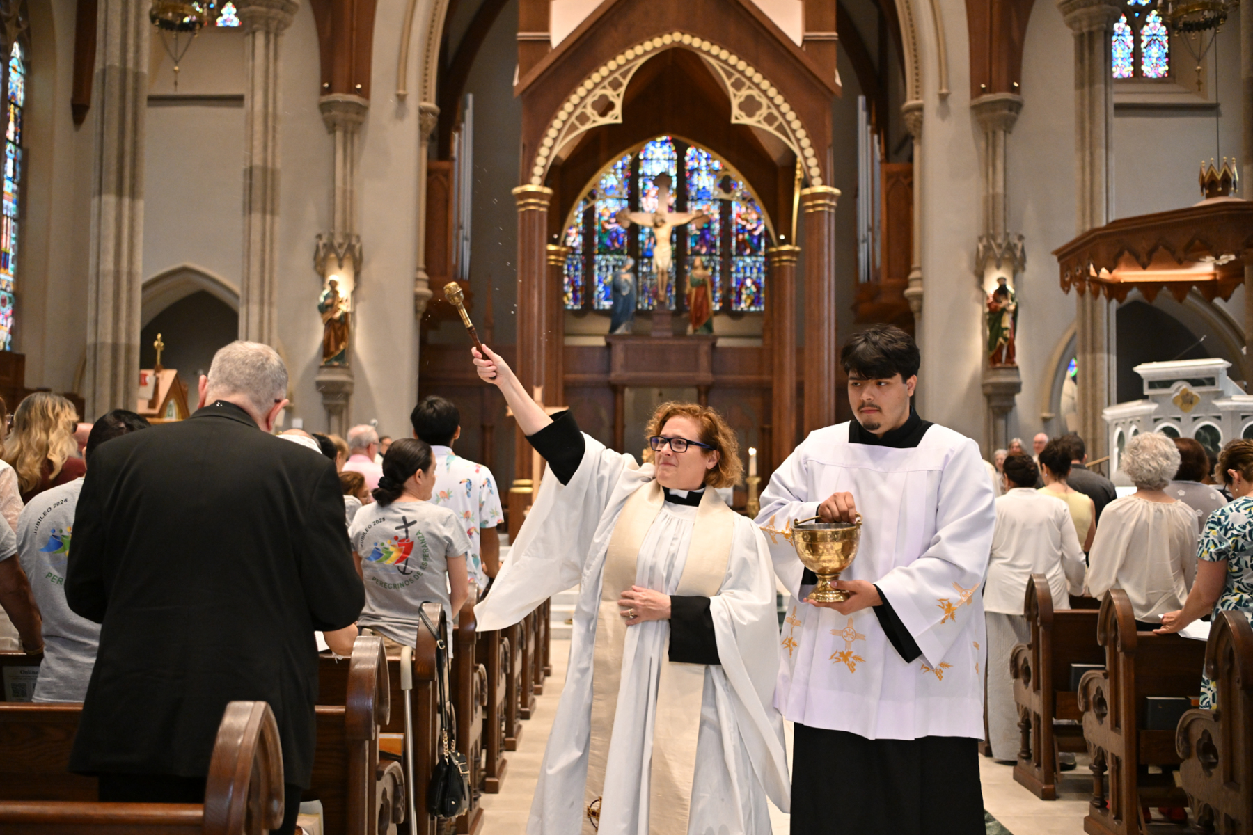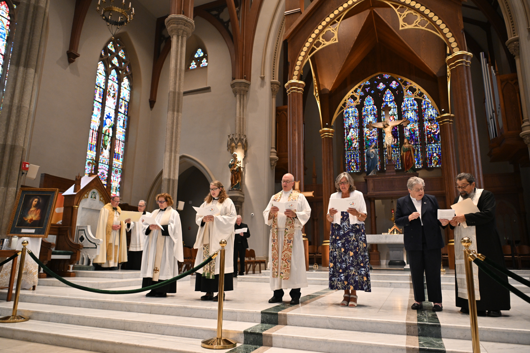 The prayer service was the culmination of the diocese’s recent ecumenical activities, which included three ecumenical roundtables held in March at local parishes. These informal gatherings provided opportunities for people of Christian faiths to listen, share, and learn from one another. Many of those on St. John’s altar on June 21 participated in the roundtables.