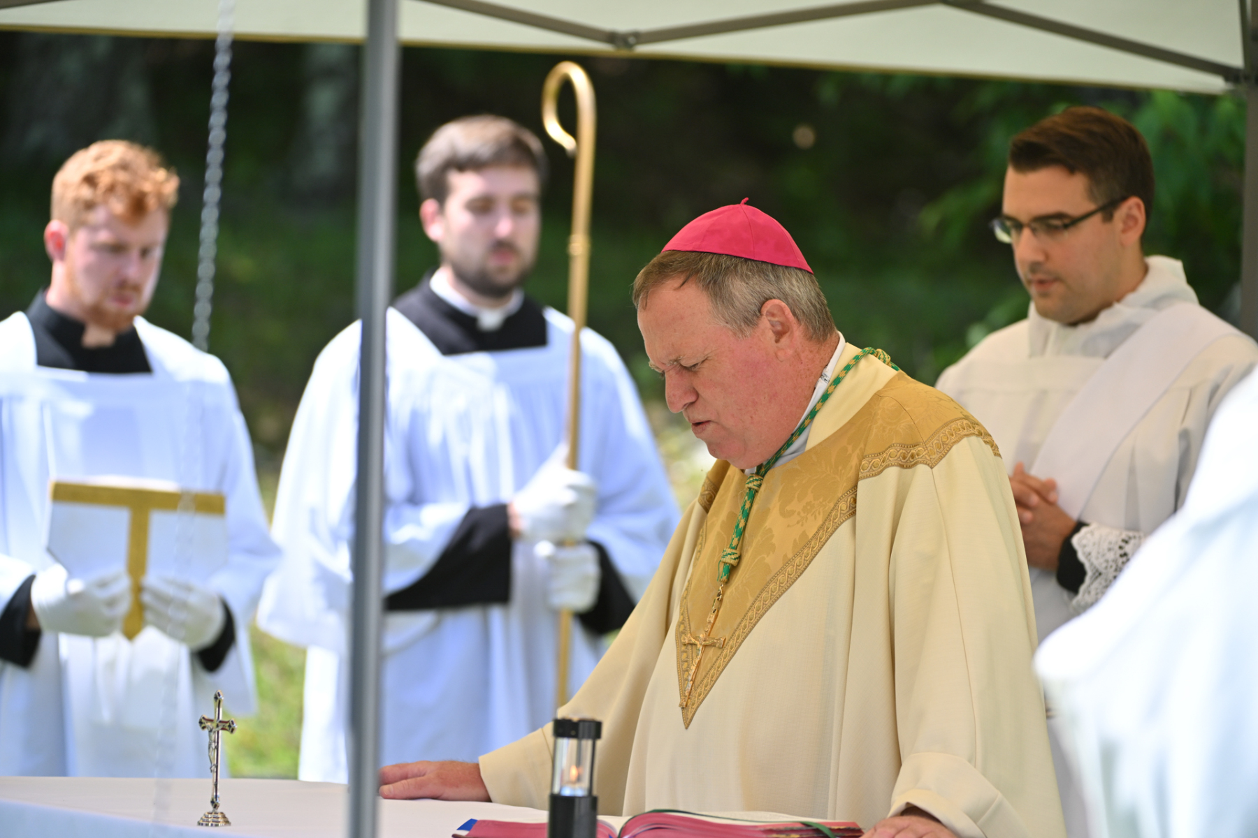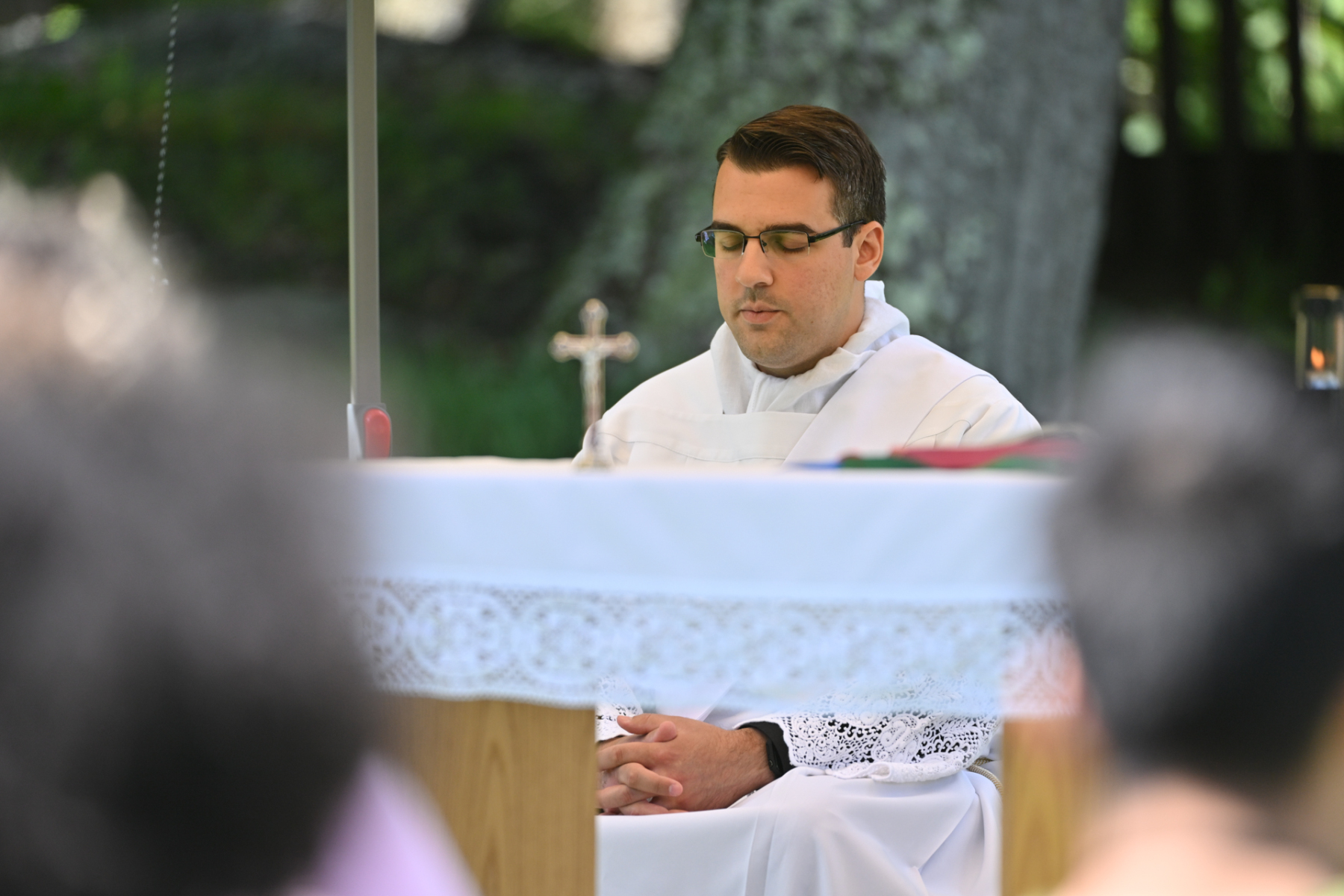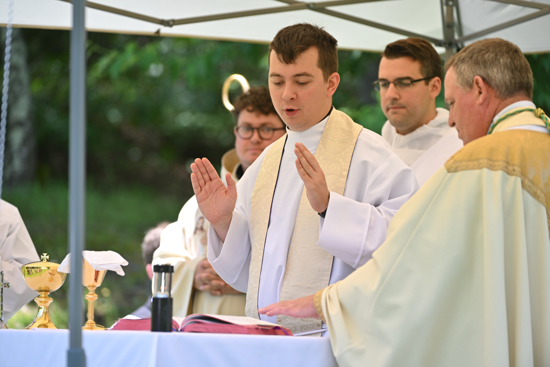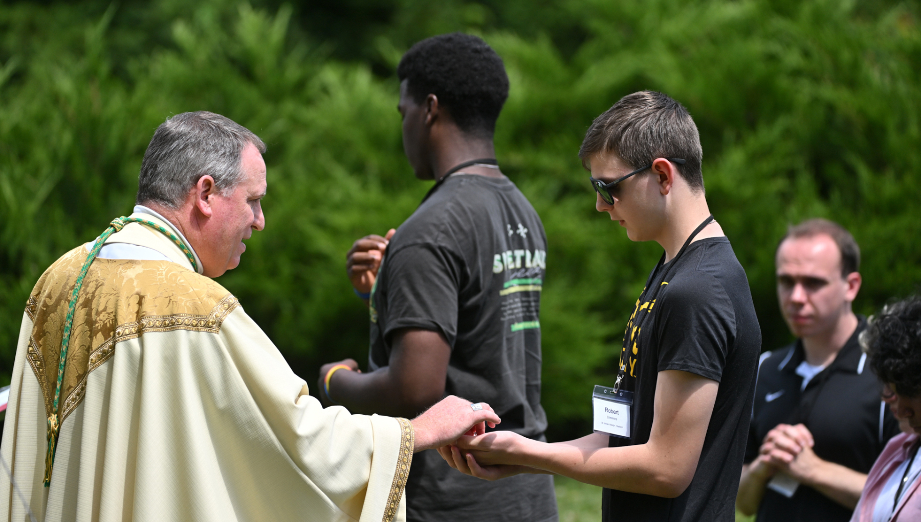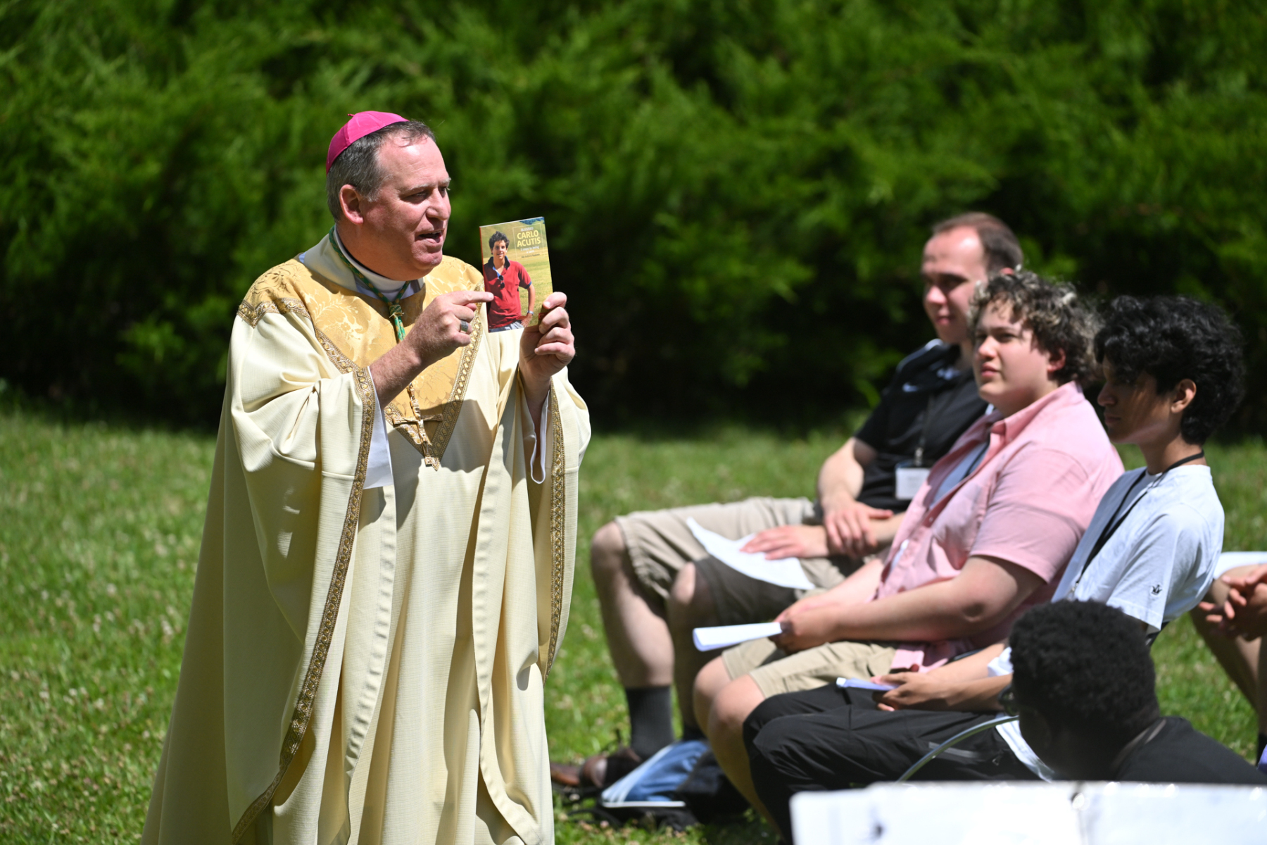 During the outdoor Mass, Bishop Sweeney urged retreatants to ask God about their call, maybe to the priesthood.