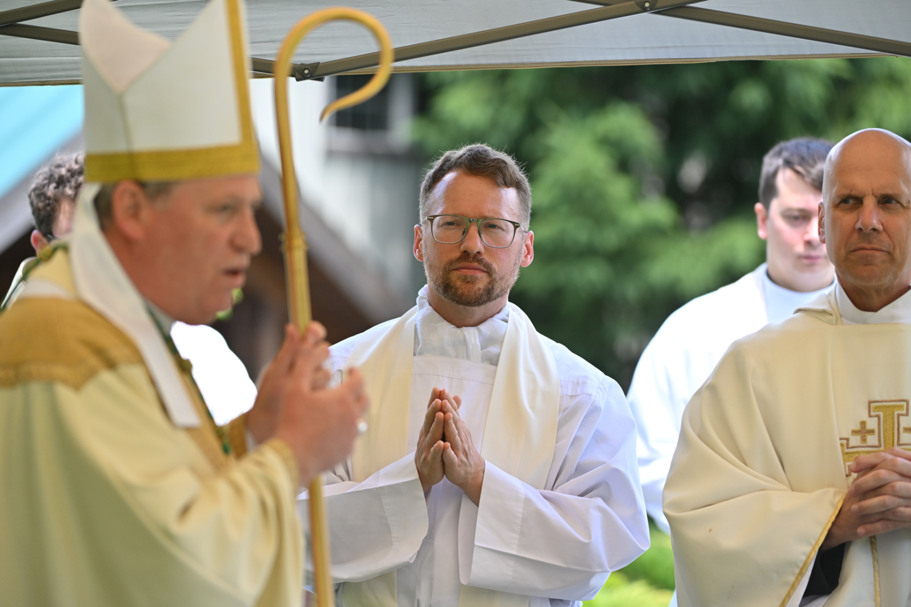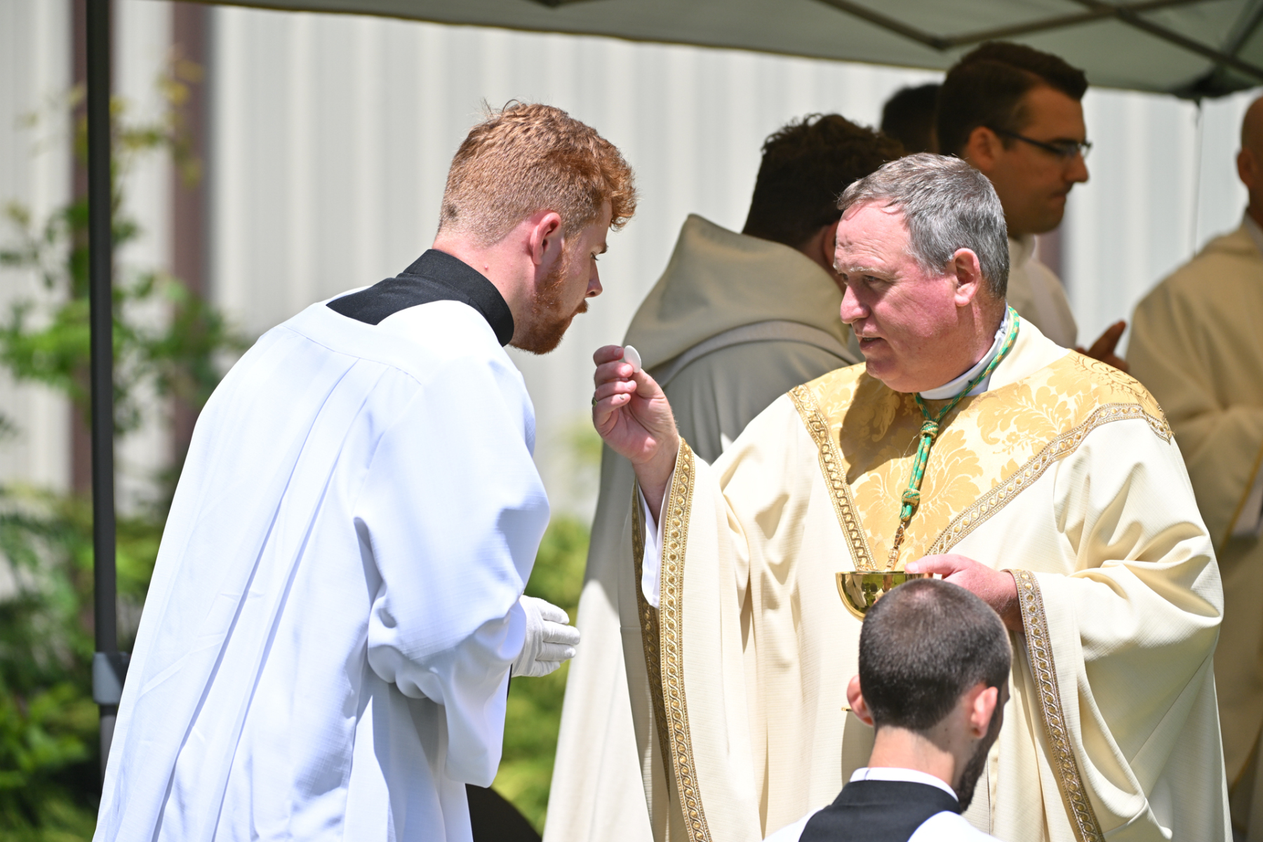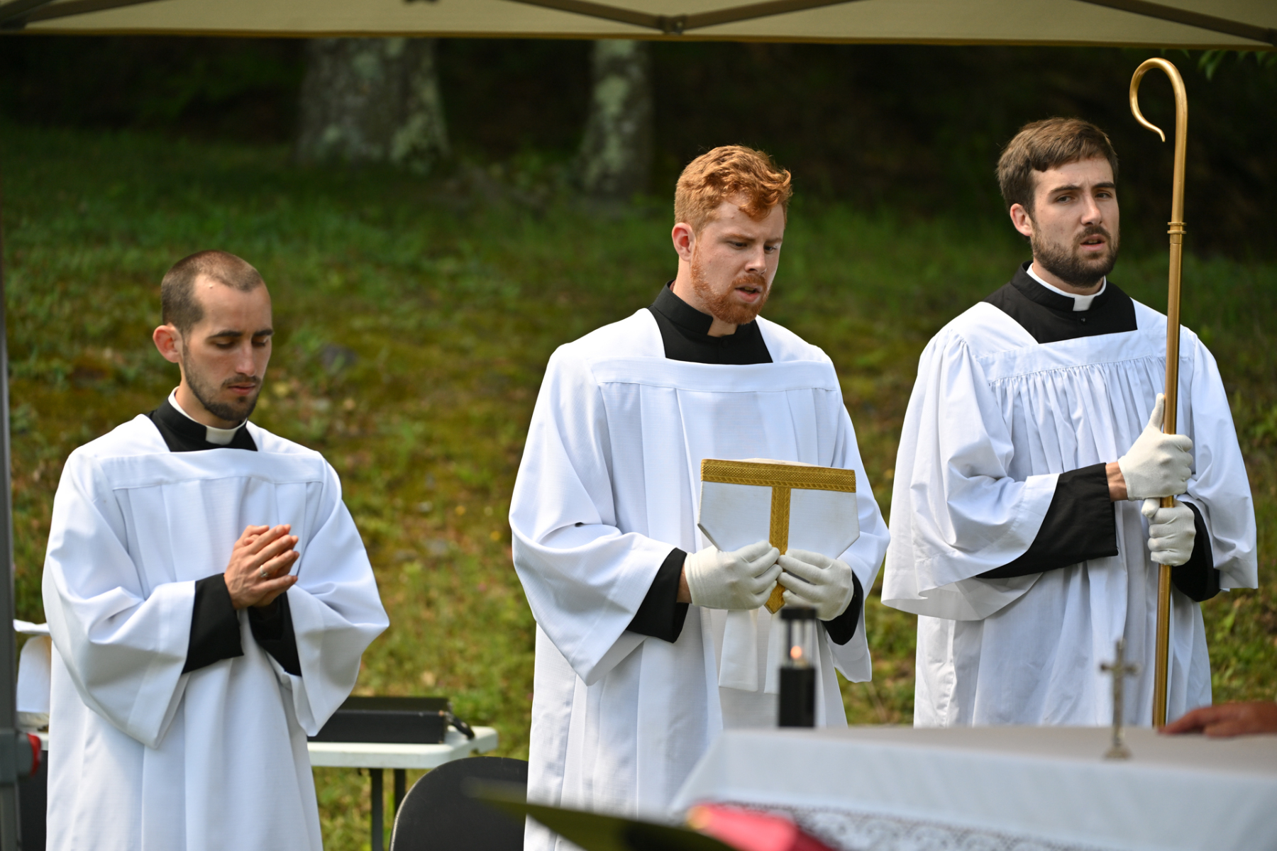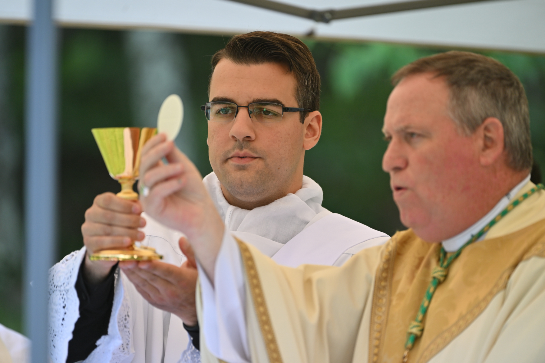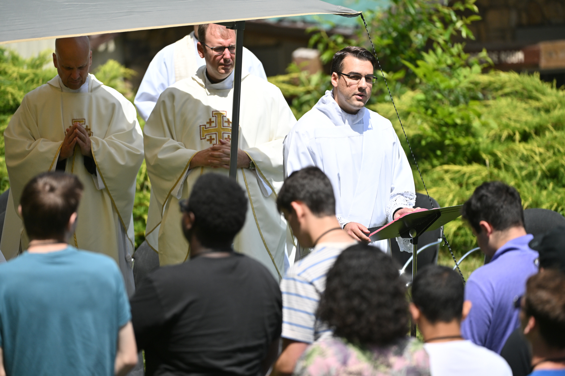 During the outdoor Mass, Bishop Sweeney urged retreatants to ask God about their call, maybe to the priesthood.